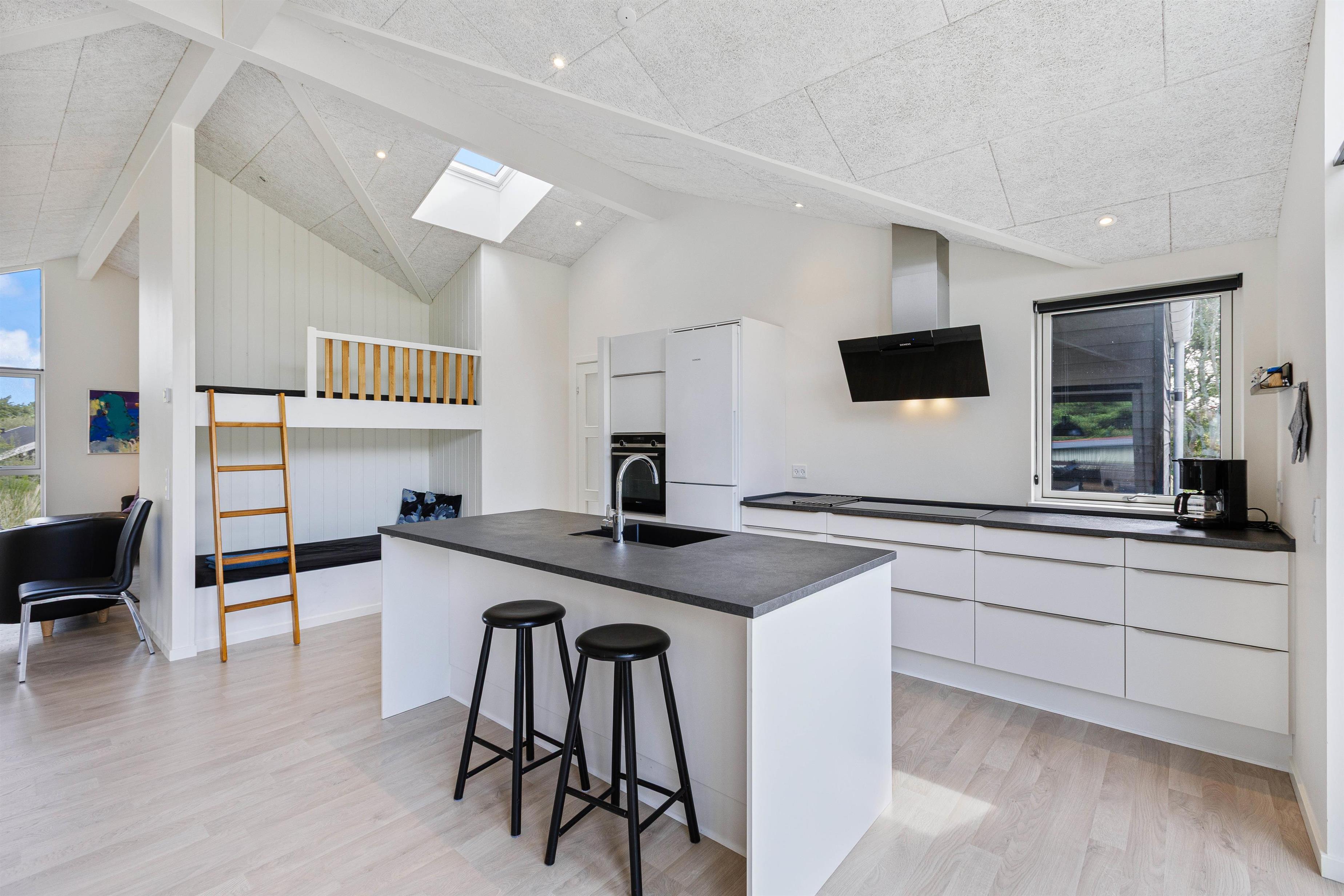 Sommerhusets på 130 m2 byder på råhygge for op til 6 gæster, som uden tvivl hurtigt vil kunne føle sig hjemme her. I sommerhuset er der kræset for detaljerne både hvad angår funktionalitet, afslapning og socialt samvær. Over det hele er der loft til kip og de store vinduespartier, som får rummene til at virke større, lyse og trækker naturen med helt ind i stuen.
