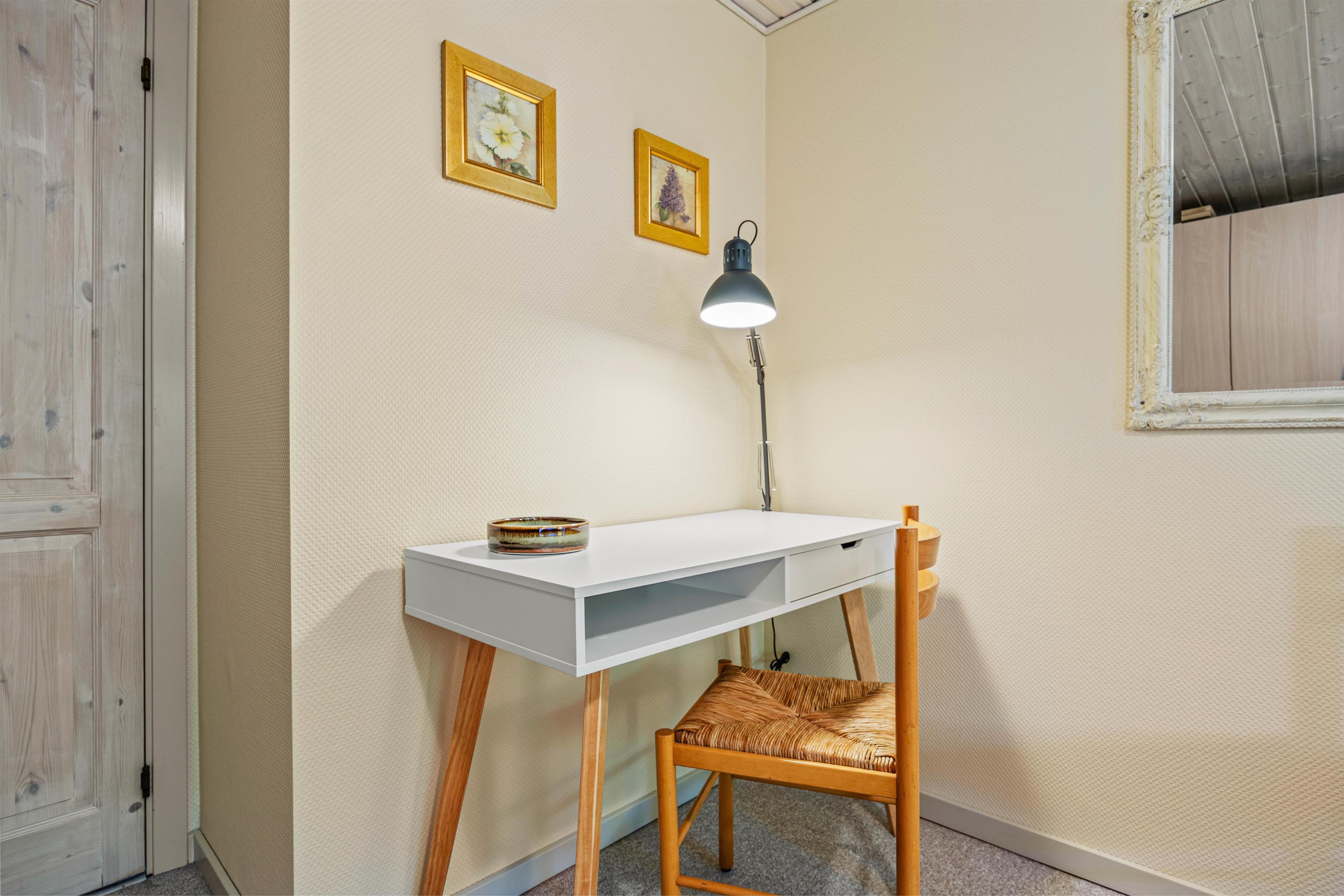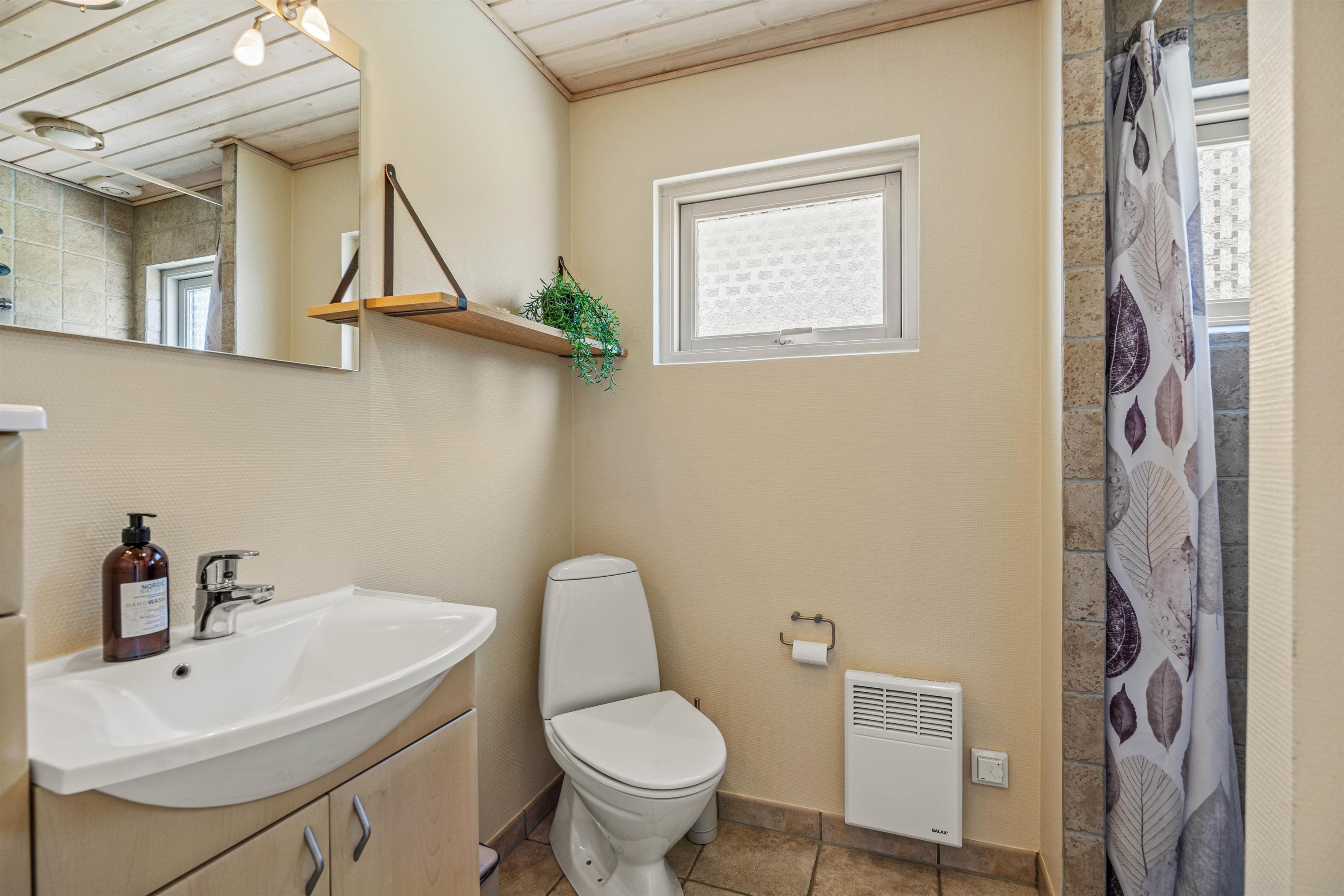 Oplev derefter stemningen ved brændeovnen på de køligere aftener, når mørket falder på, og find komfort i den moderne varmepumpe, der sikrer et behageligt indeklima i sommerhuset året rundt. Den åbne stue giver plads til afslapning for jer alle, mens gulvvarmen i badeværelset sikrer en lun start på dagen, når I står op næste dag til nye ferieoplevelser på Vejers Havvej 20.