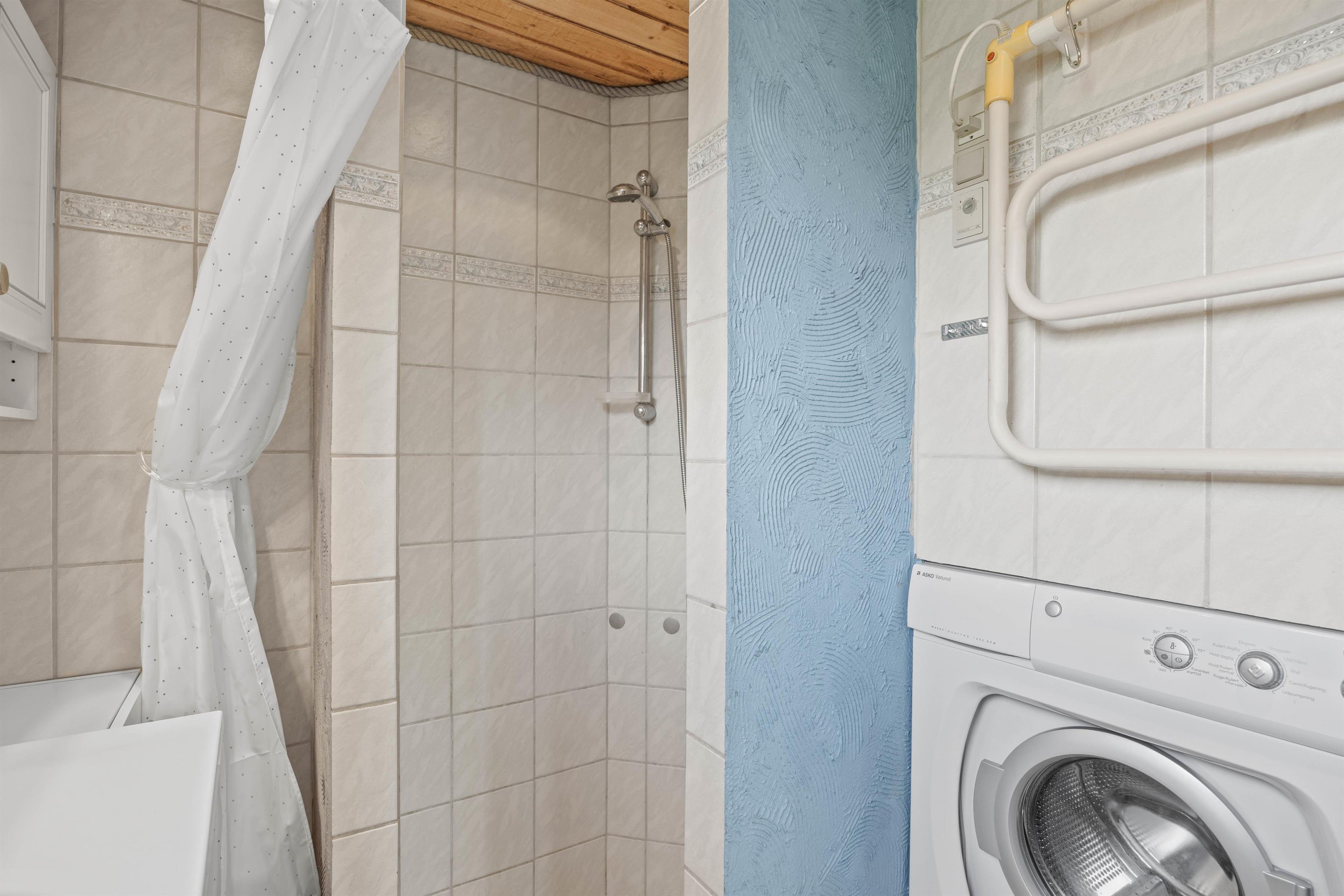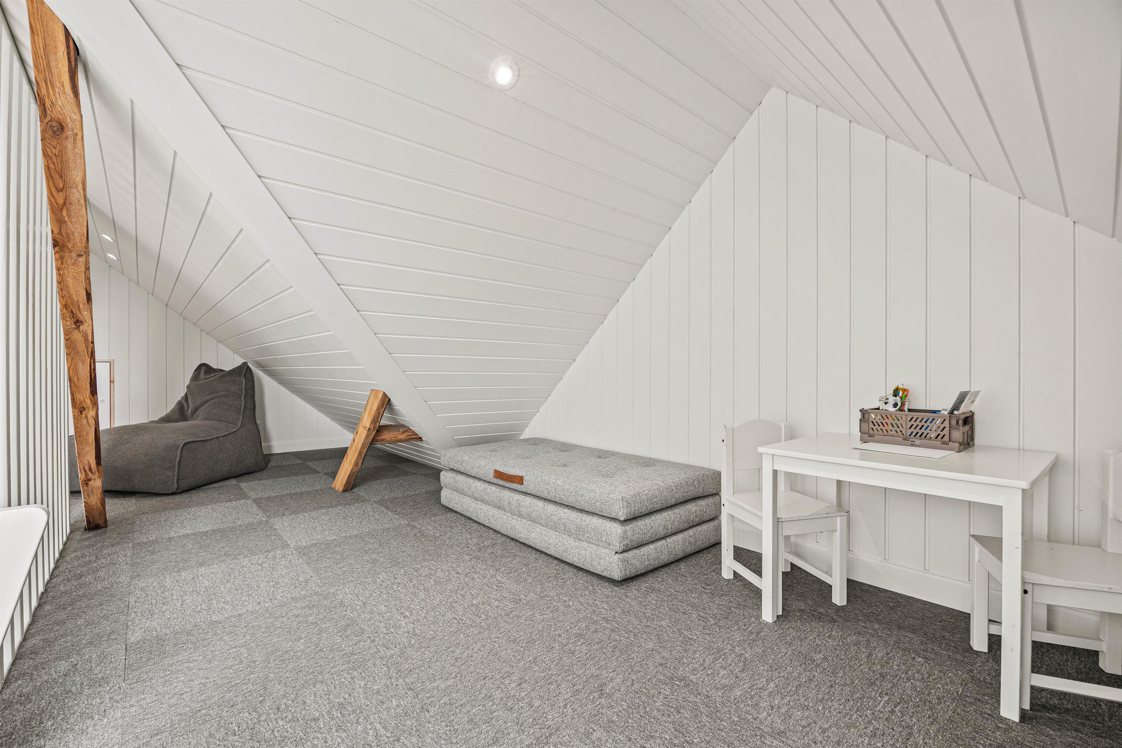 Indenfor bliver I mødt af en lys og venlig stemning. Opholdsrummet byder på en komfortabel sofa, en varmende brændeovn og et tv med danske kanaler – – perfekt til afslappende aftener med spil, film eller bare ro og nærvær. Udover brændeovnen sørger en energivenlig varmepumpe for behagelig varme, og på badeværelset giver gulvvarme ekstra komfort.