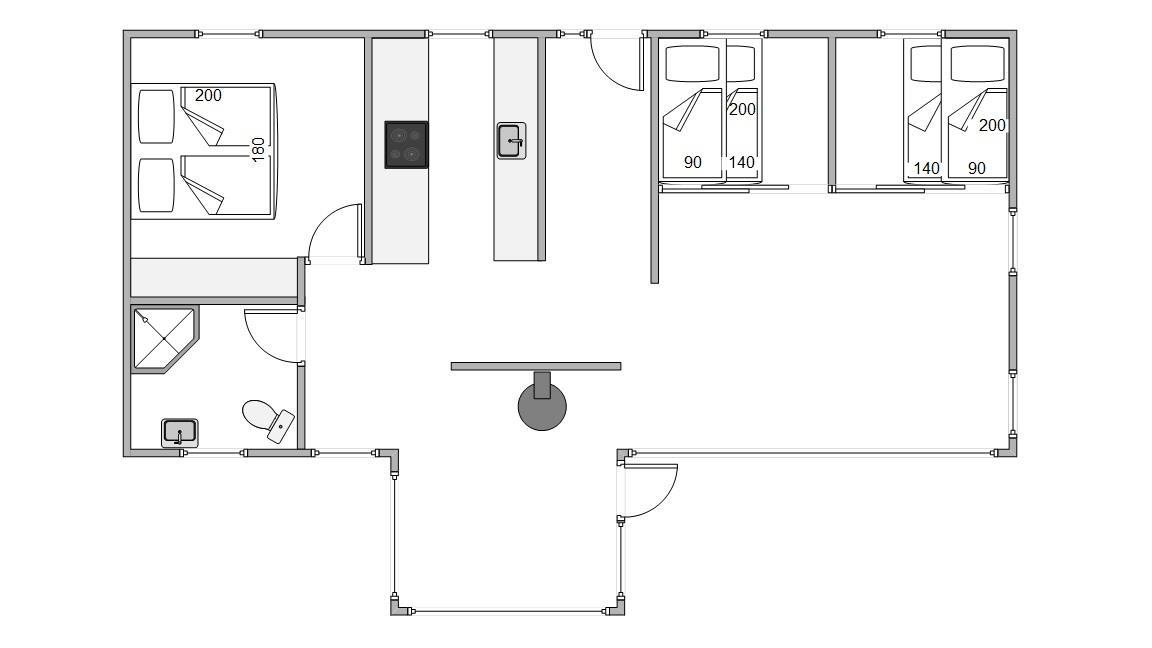 De 3 soveværelser er enkelt og funktionelt indrettede med gode sengepladser til i alt 6 personer; ét værelse har dobbeltseng, mens de 2 andre hver har en køjeseng med en underkøje på 120 cm og en overkøje på 70 cm.