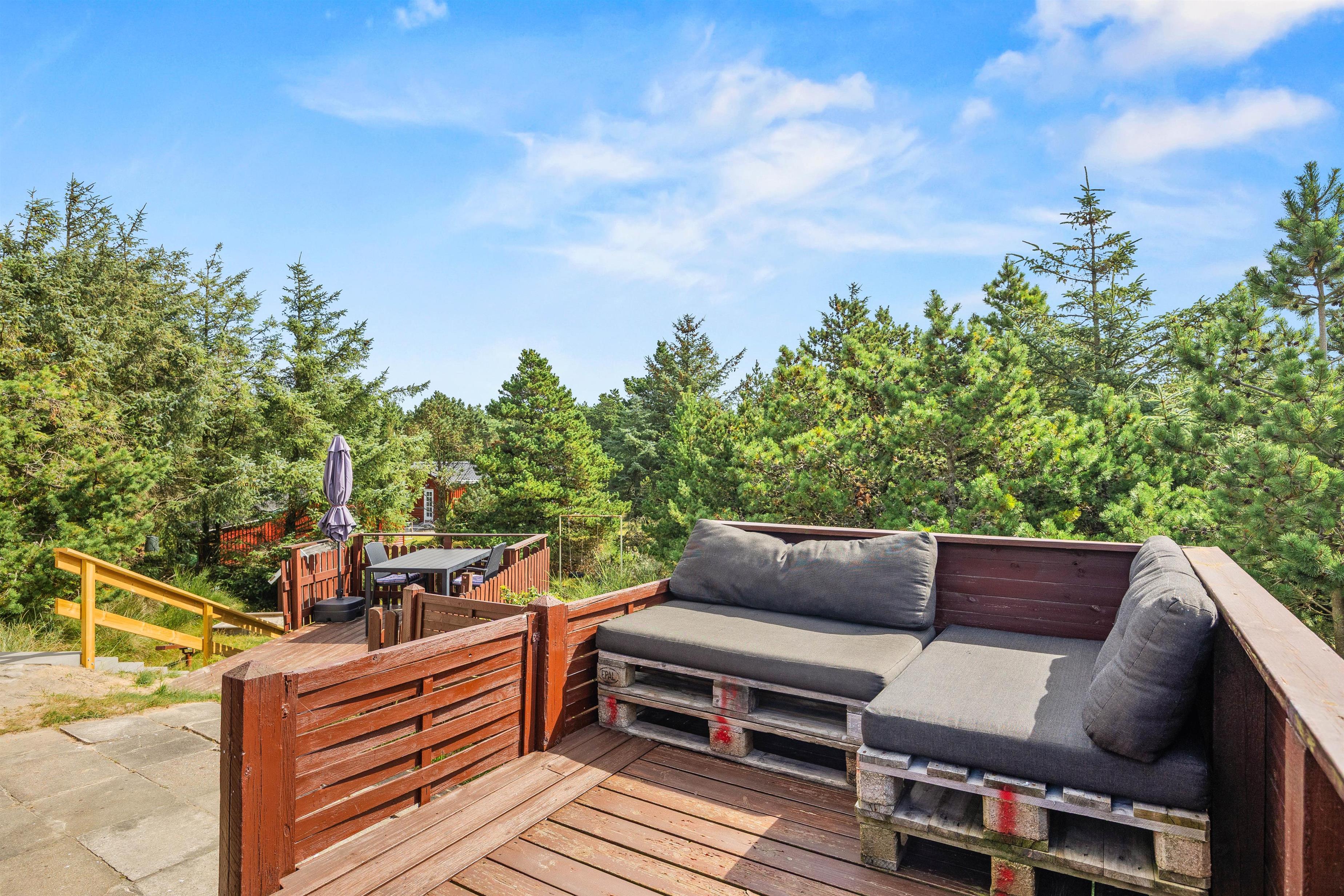 Sommerhuset ligger på en skøn naturgrund omgivet af klitter og marehalm. Den høje placering på klittoppen giver jer en særlig ro og en fin udsigt over det vestjyske landskab. På terrassen kan I nyde solen, drikke morgenkaffe i læ eller tænde op i grillen, mens aftenen falder på. Her er det nemt at lade tiden flyde og nyde den stille stemning.