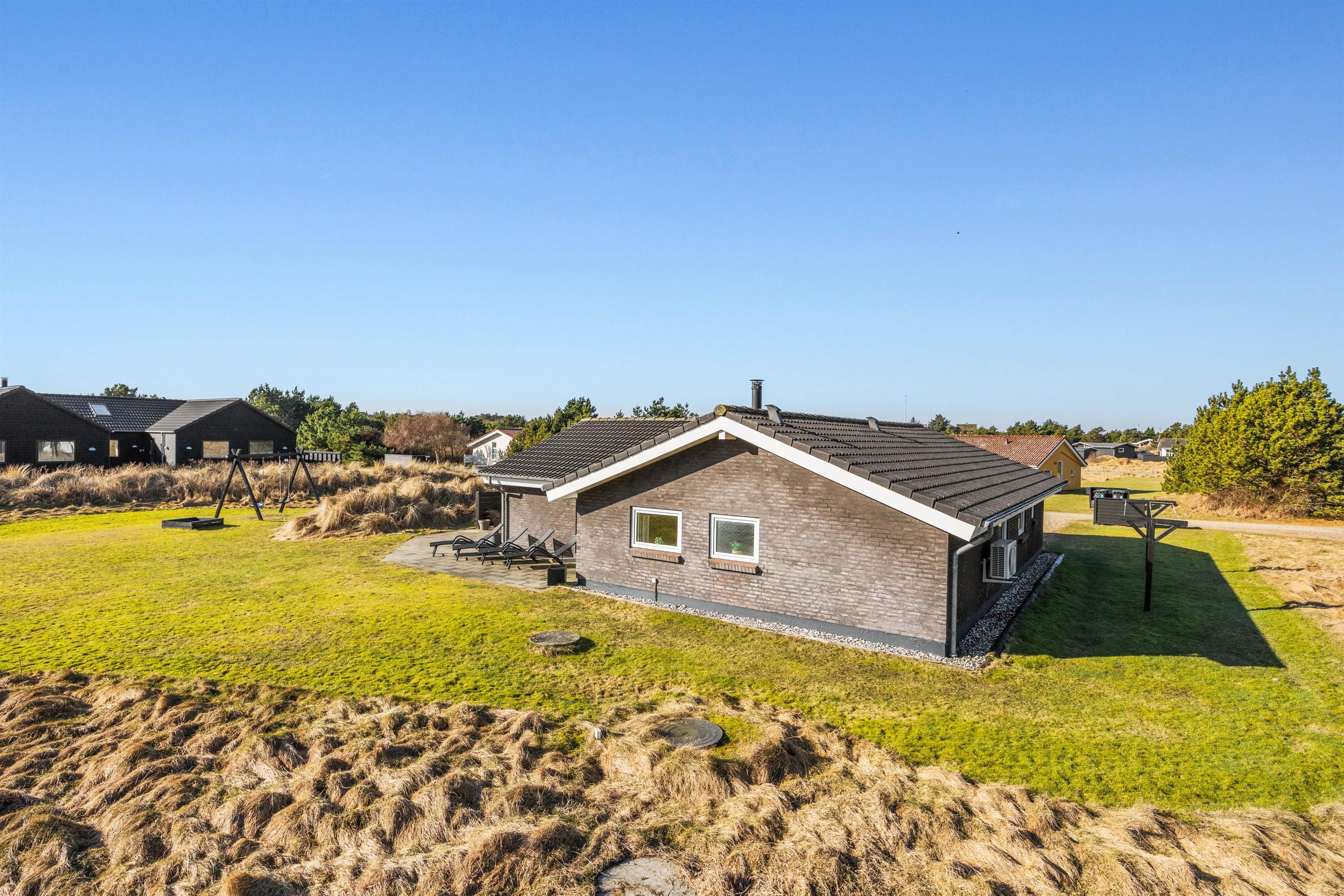 Du bor kun 1000 meter fra havet, så strandture kan blive en naturlig del af dagens program, og der er cirka 600 meter til indkøb, hvilket gør det nemt at hente frisk morgenbrød eller handle ind til aftensmaden. Udenfor venter en stor naturgrund på hele 2103 m2 med højt til himlen og en åben grund, der giver masser af luft og plads til leg og aktiviteter. Her kan børnene more sig med gynge og sandkasse, mens du tænder op i grillen og nyder aftenen på den åbne eller den overdækkede terrasse, alt efter sol og vind. Det er et sted, hvor udelivet får lov at fylde, og hvor pauserne føles lange på den gode måde.