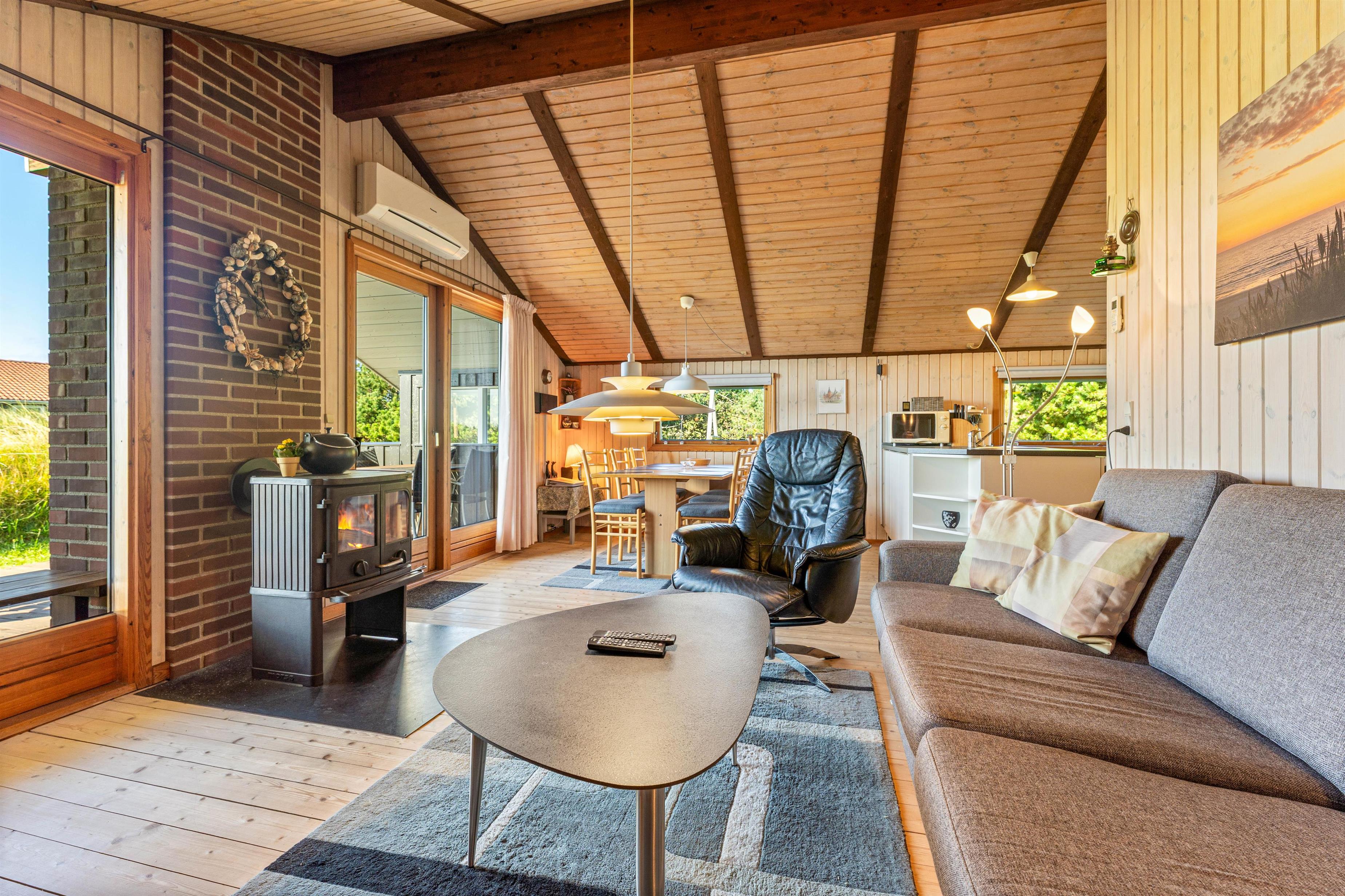 Køkkenet ligger i åben forbindelse med en hyggelig stue, som har både brændeovn og alkove. Alkoven er den perfekte hyggekrog på dage, hvor du gerne vil slappe af med en god bog eller måske tage en eftermiddagslur.