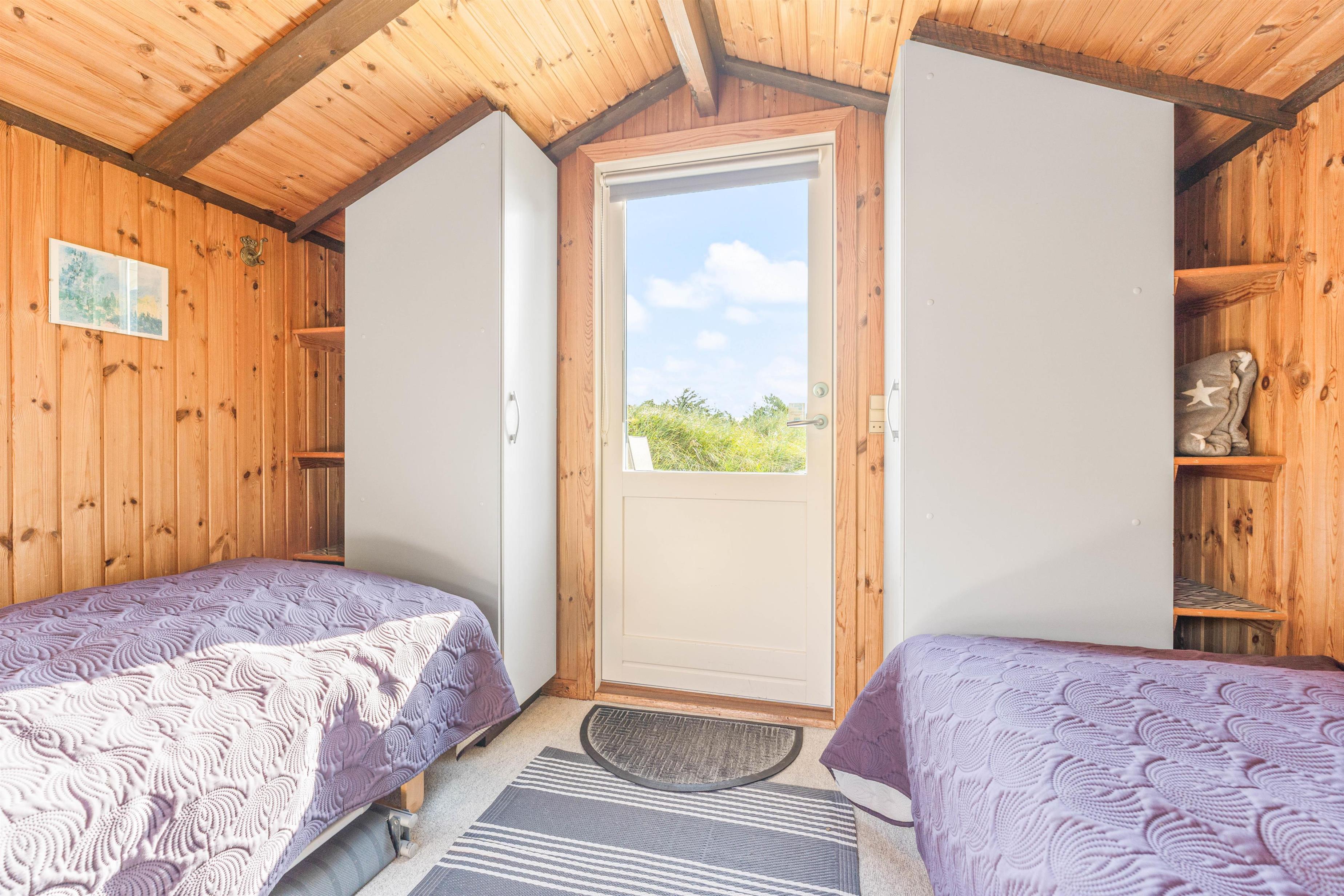 Selve sommerhuset er indrettet med to gode soverum og et hyggeligt gæstehus, som har to enkeltsenge. Badeværelset er lyst og dejligt indrettet. Her finder du også en vaskemaskine, som er med til at gøre ferien lidt lettere – særligt for dig, der har børn.