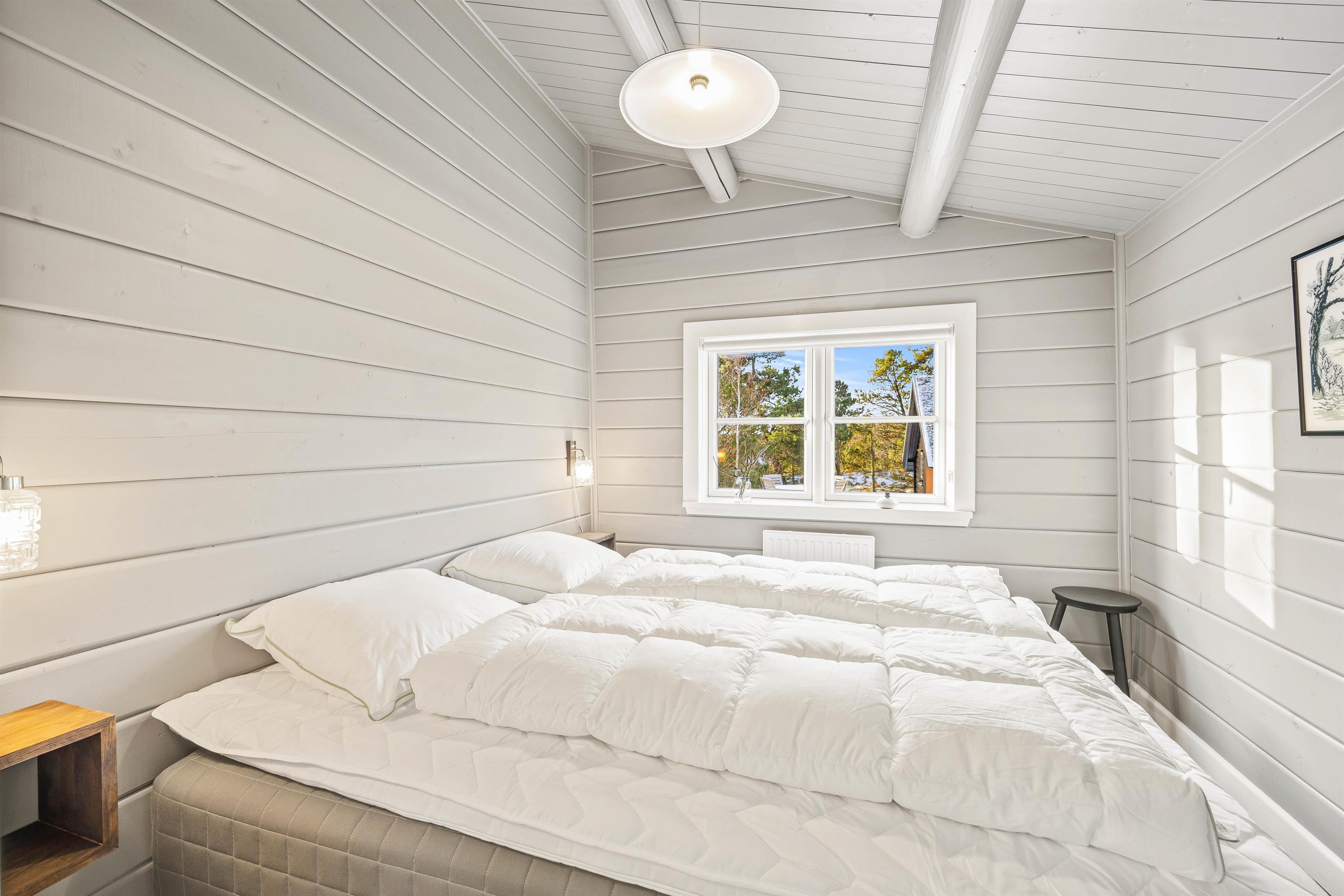 Feriehuset har i alt tre smukke soveværelser, som alle er indrettet med dobbeltsenge. Her er der garanti for en god nats søvn i den smukke atmosfære. Badeværelset og gæstetoilettet er også blevet stilfuldt renoveret og skiller sig ud med deres moderne vintagestil. Feriehuset har også vaskemaskine og tørretumbler til jeres rådighed.