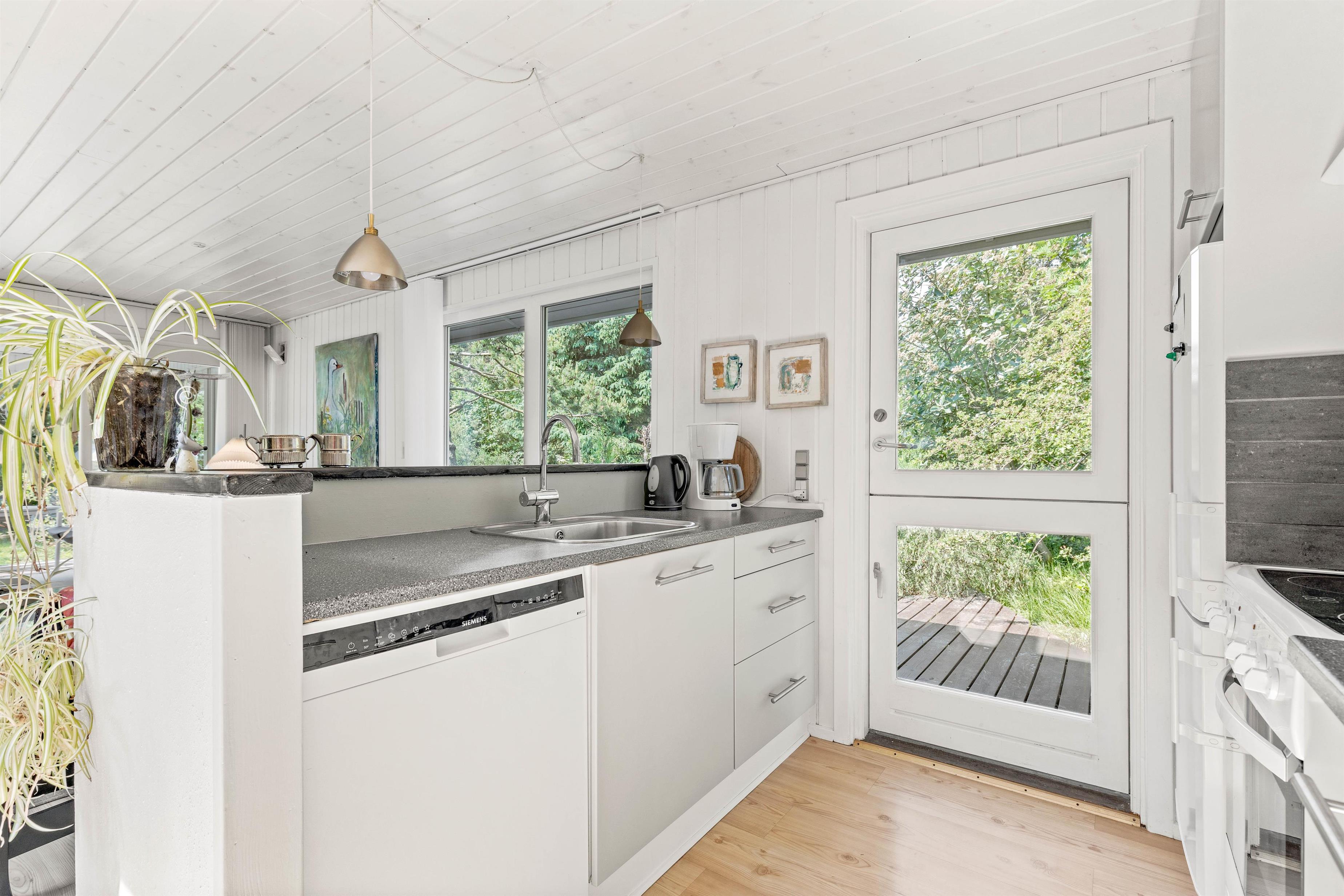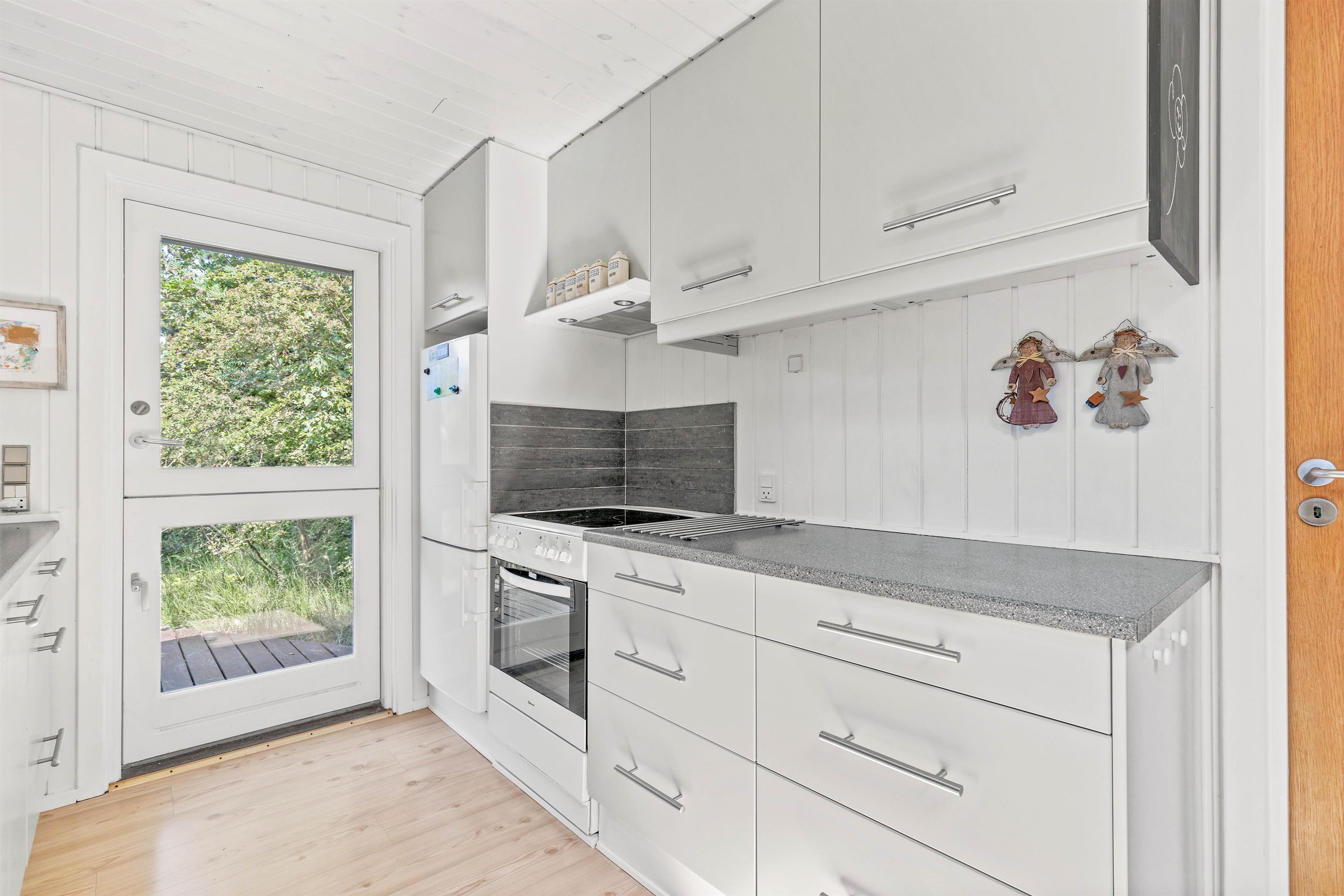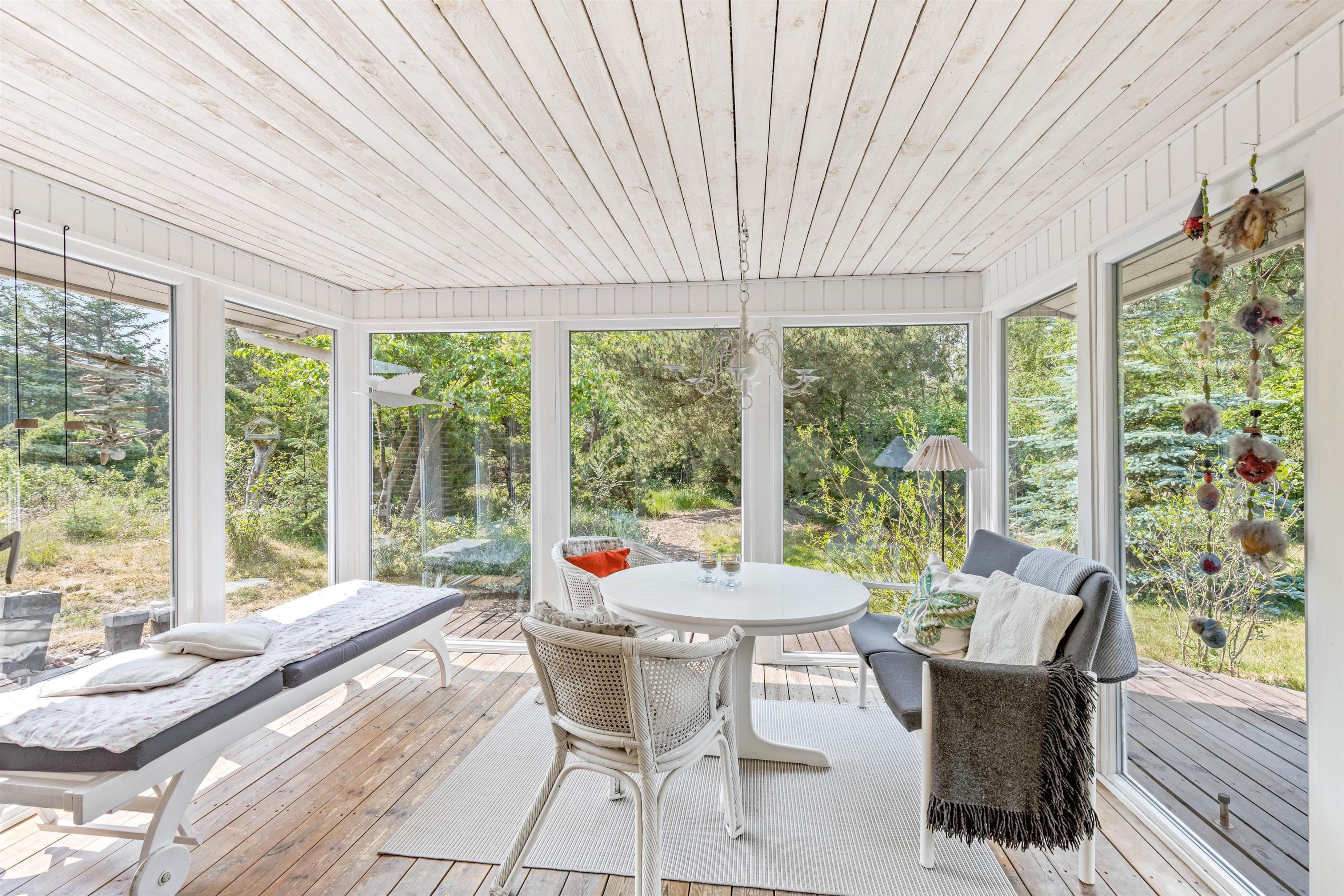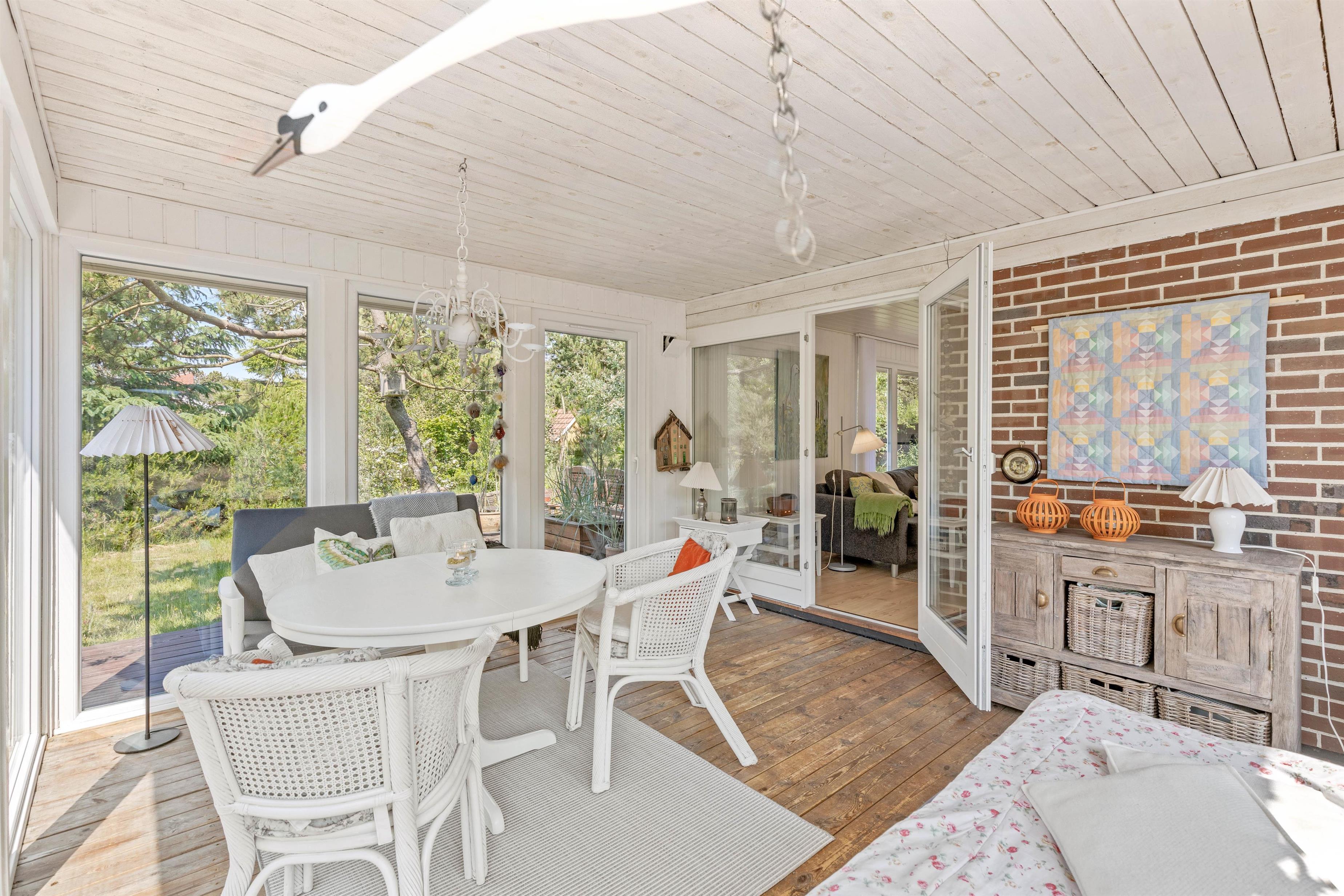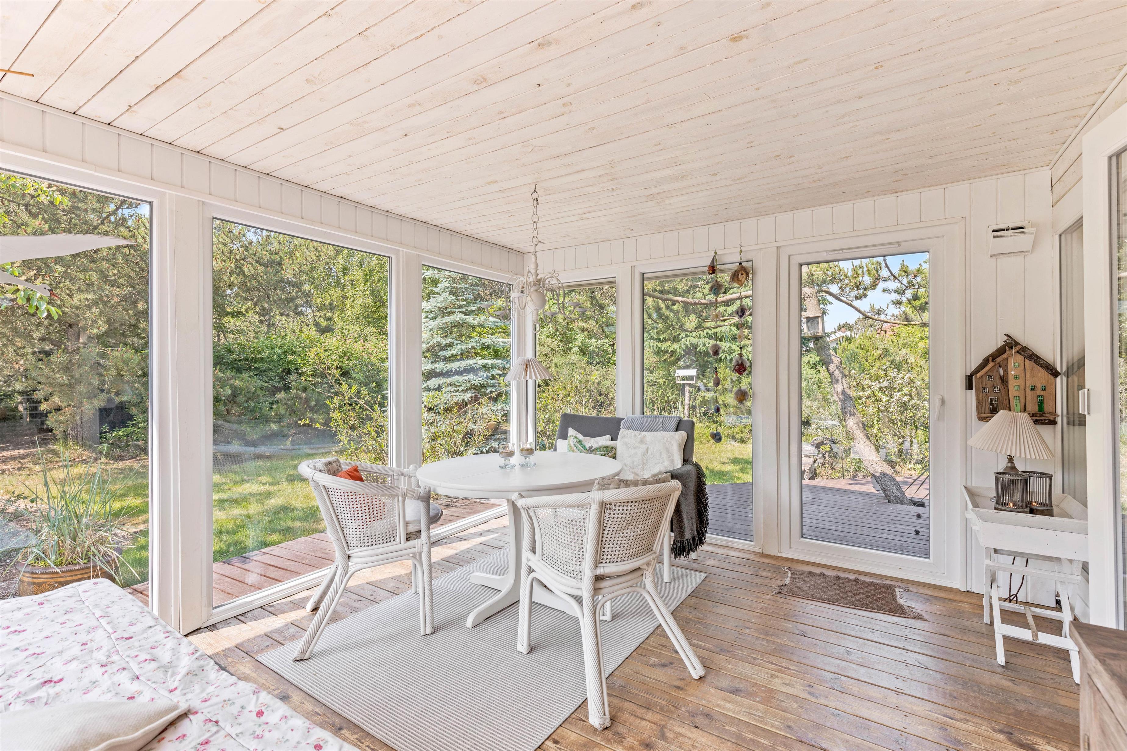 Ekstra fin er den dejlige udestue med trægulvet – det perfekte sted at tanke lys og slappe af i læ og varme hele året rundt, imens man har udsigt til den skønne naturgrund. Skal man have en lille morfar eller vil ikke forstyrres midt i en spændende krimi, så er der mulighed for at trække sig tilbage til gæsteværelset med sovesofaen eller et af de to lyse soveværelser med dobbeltseng.