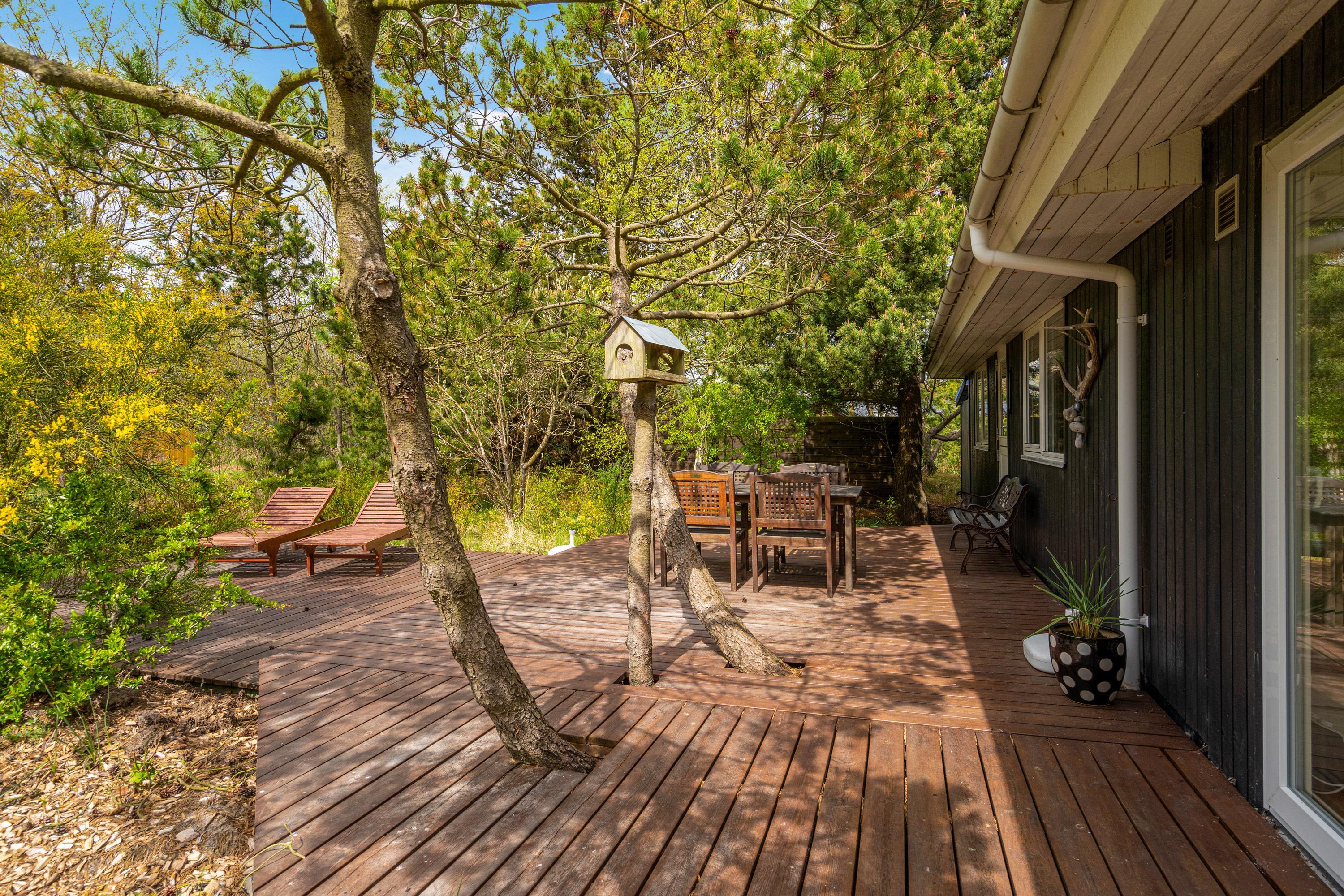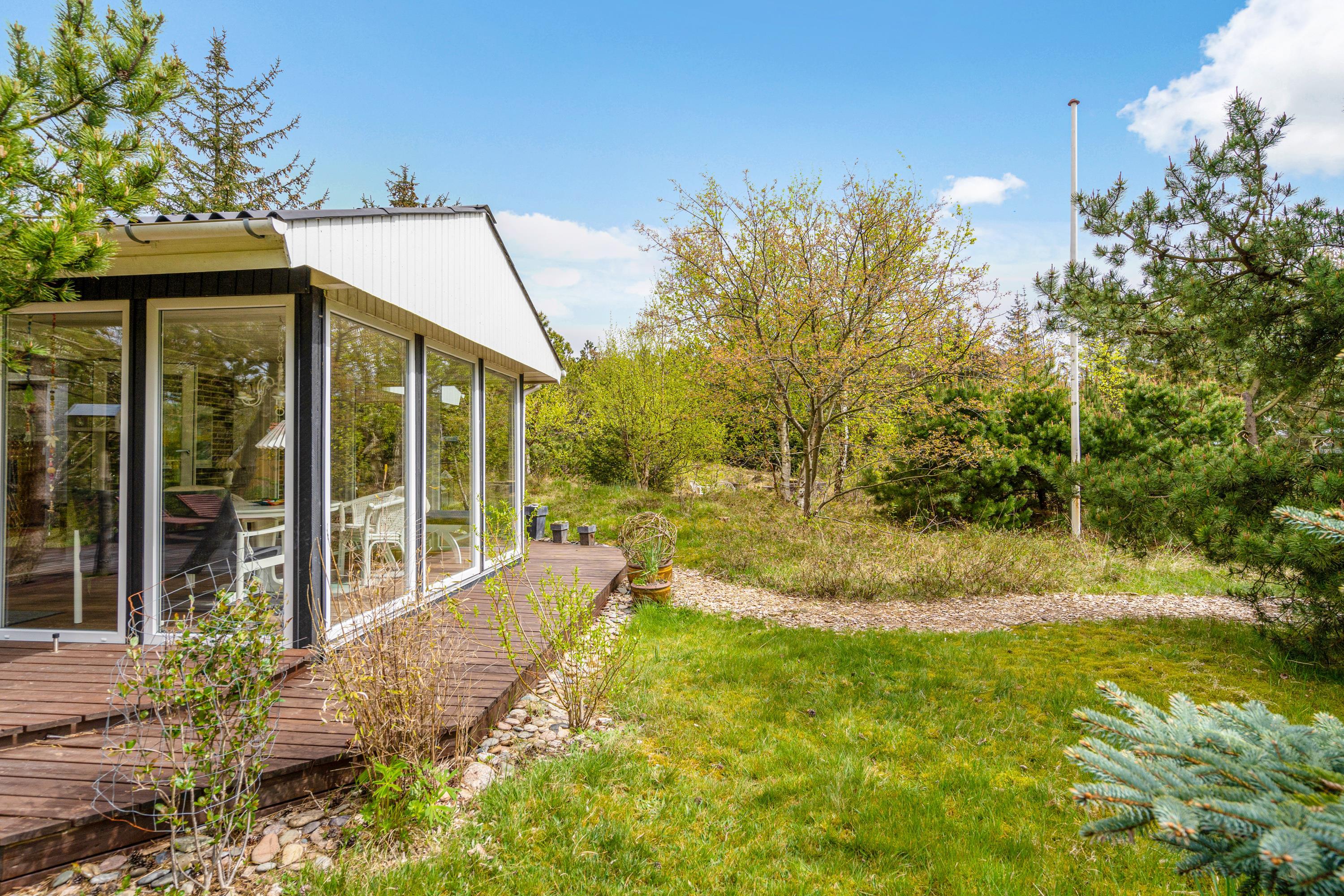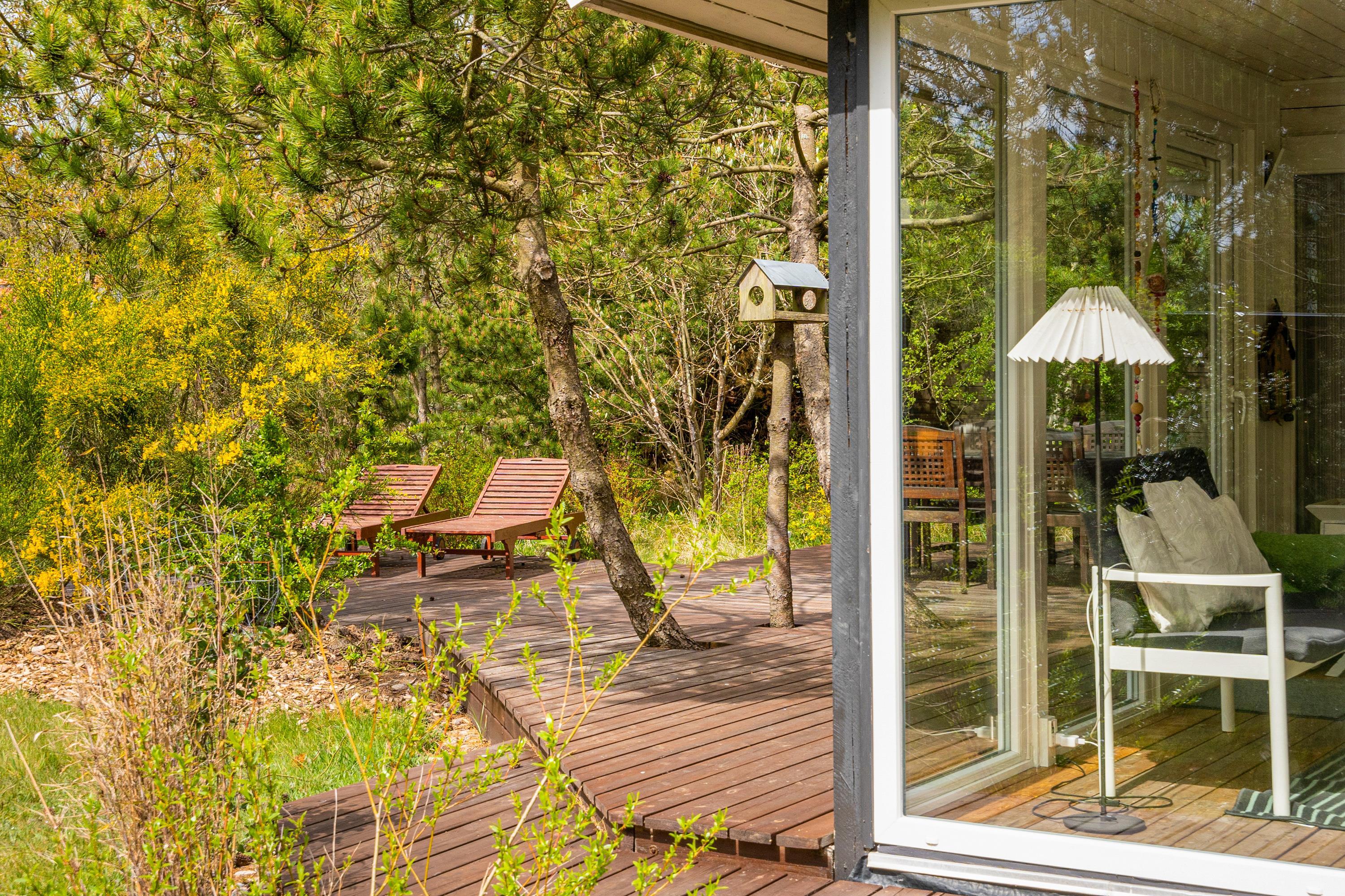 Både morgen og aften, - på Torskevej 22 kan du altid finde et godt sol- og læhjørne da huset har 3 delvist overdækkede terrasser. Lad børnene gå på opdagelse på den 2.400 m2 store naturgrund imens i hygger på terrasse og måske tænder op i grillen til en dejlig grillaften, men rødvin og snak.