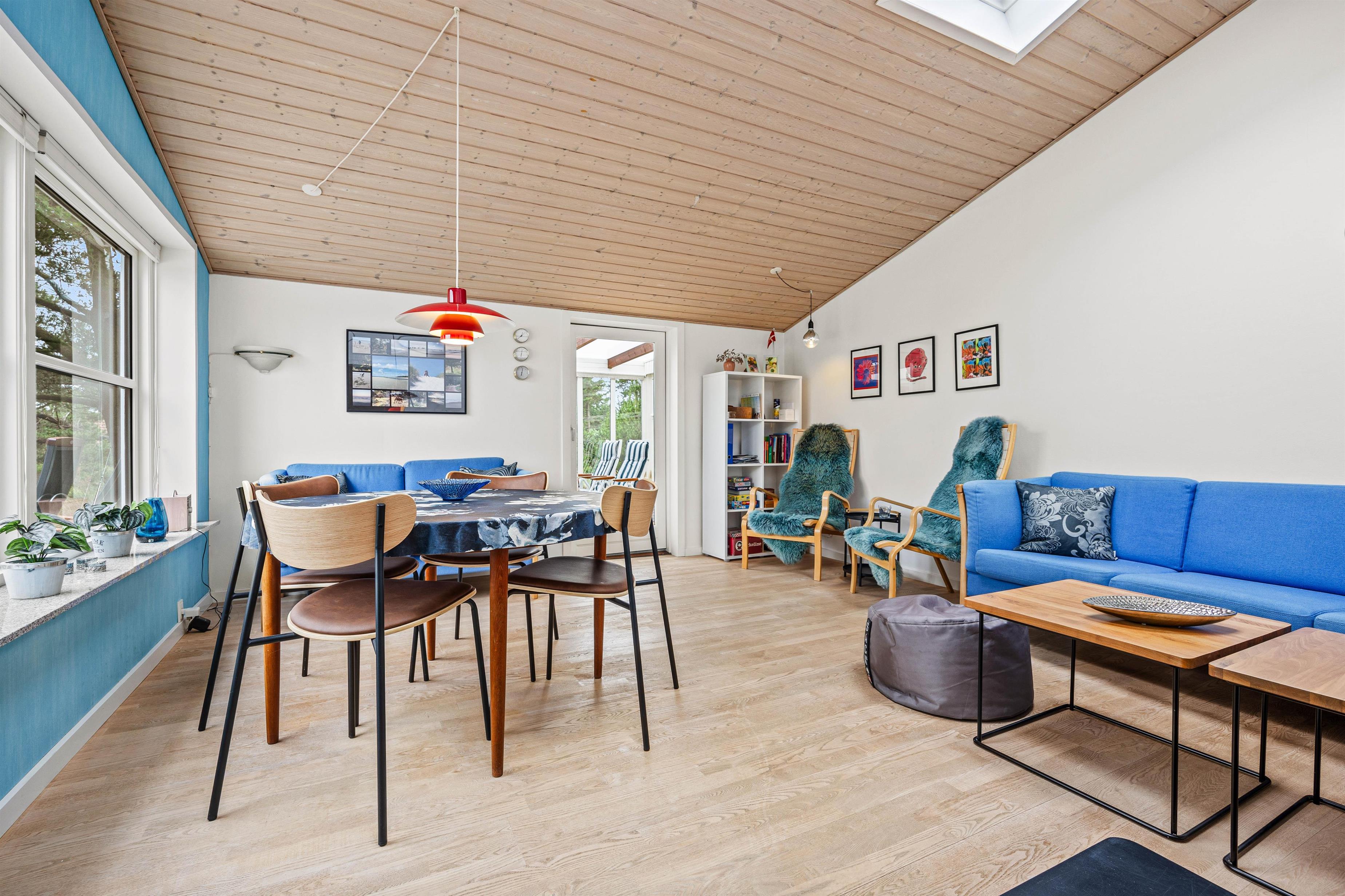 Ovenlysvinduet i stuen sørger for et rigtig fint lysindfald, og derudover er der en brændeovn, som med sine knitrende flammer skaber en rigtig hyggelig atmosfære på de kolde dage. Huset bliver desuden hele året rundt hurtigt opvarmet med den energibesparende varmepumpe.