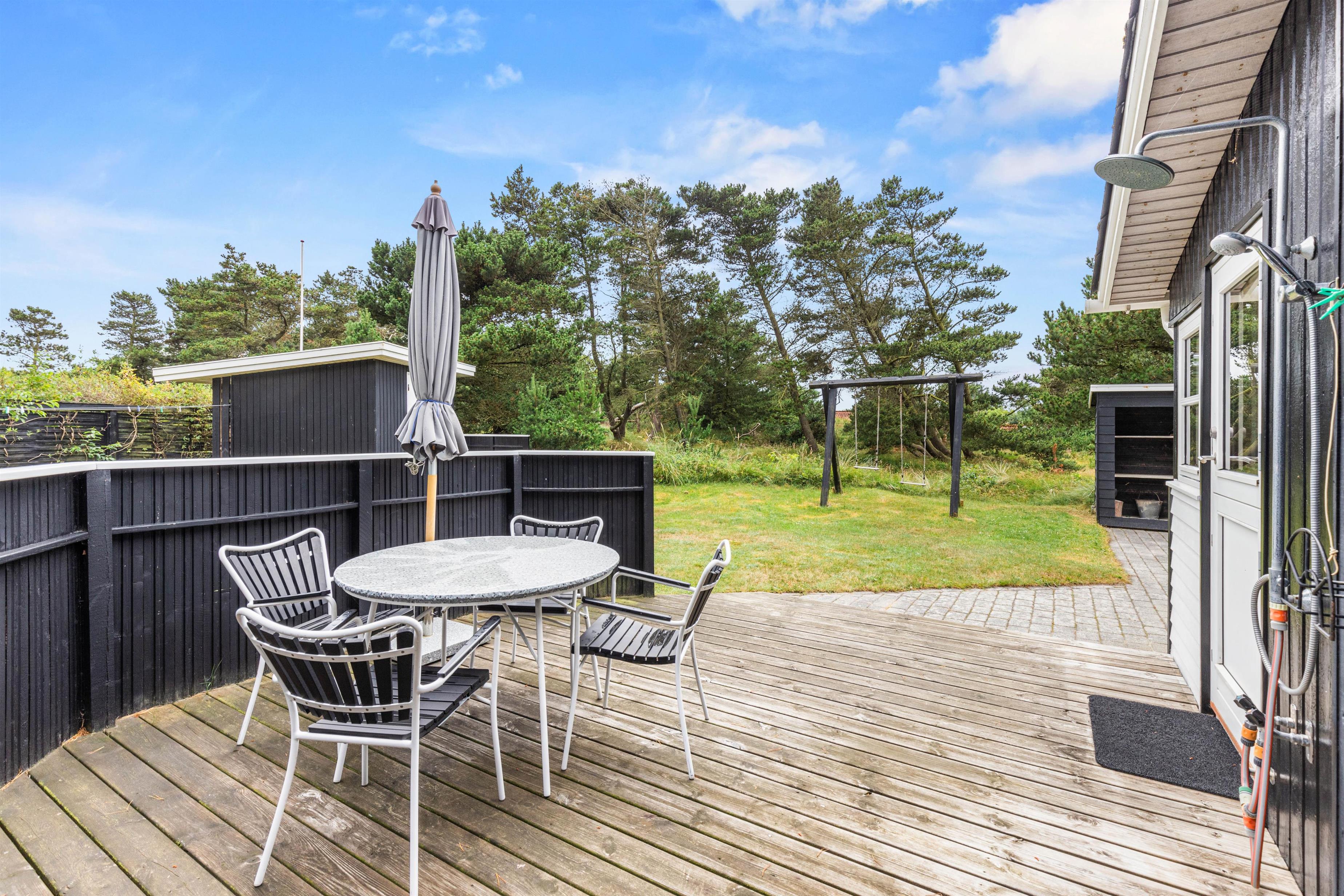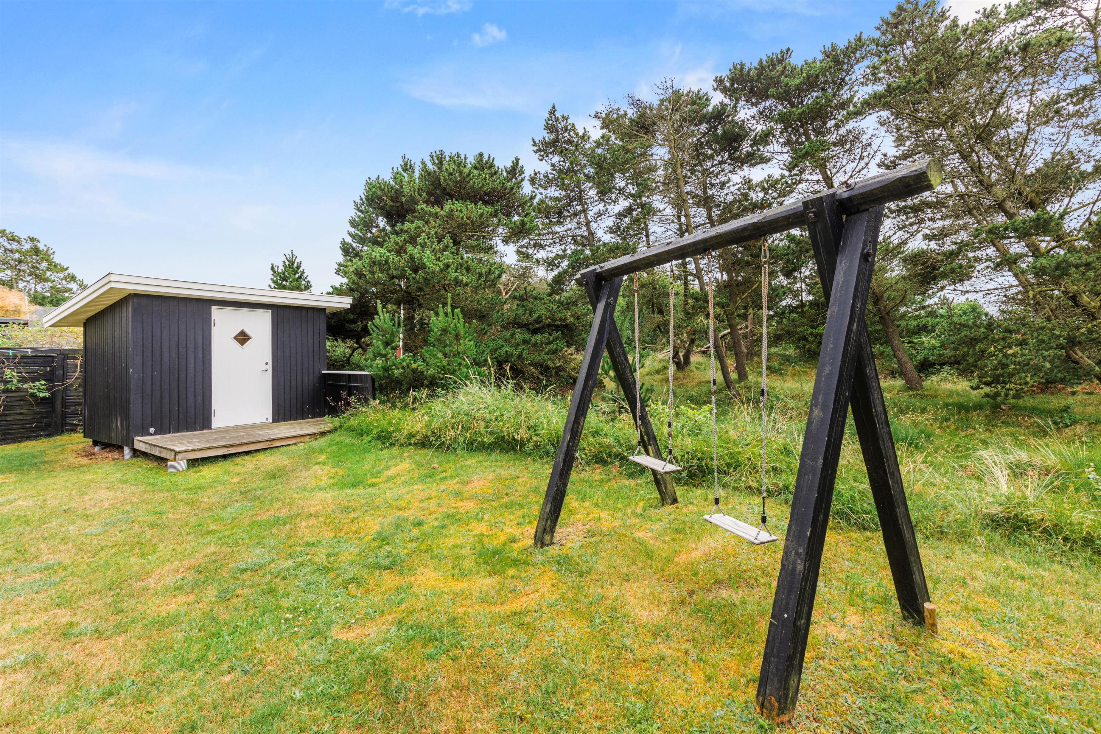 På den store og godt afskærmede grund står et gyngestativ til glæde for de yngste feriegæster. Den brede sandstrand 800 meter fra huset bliver helt sikkert et hit blandt både store og små.