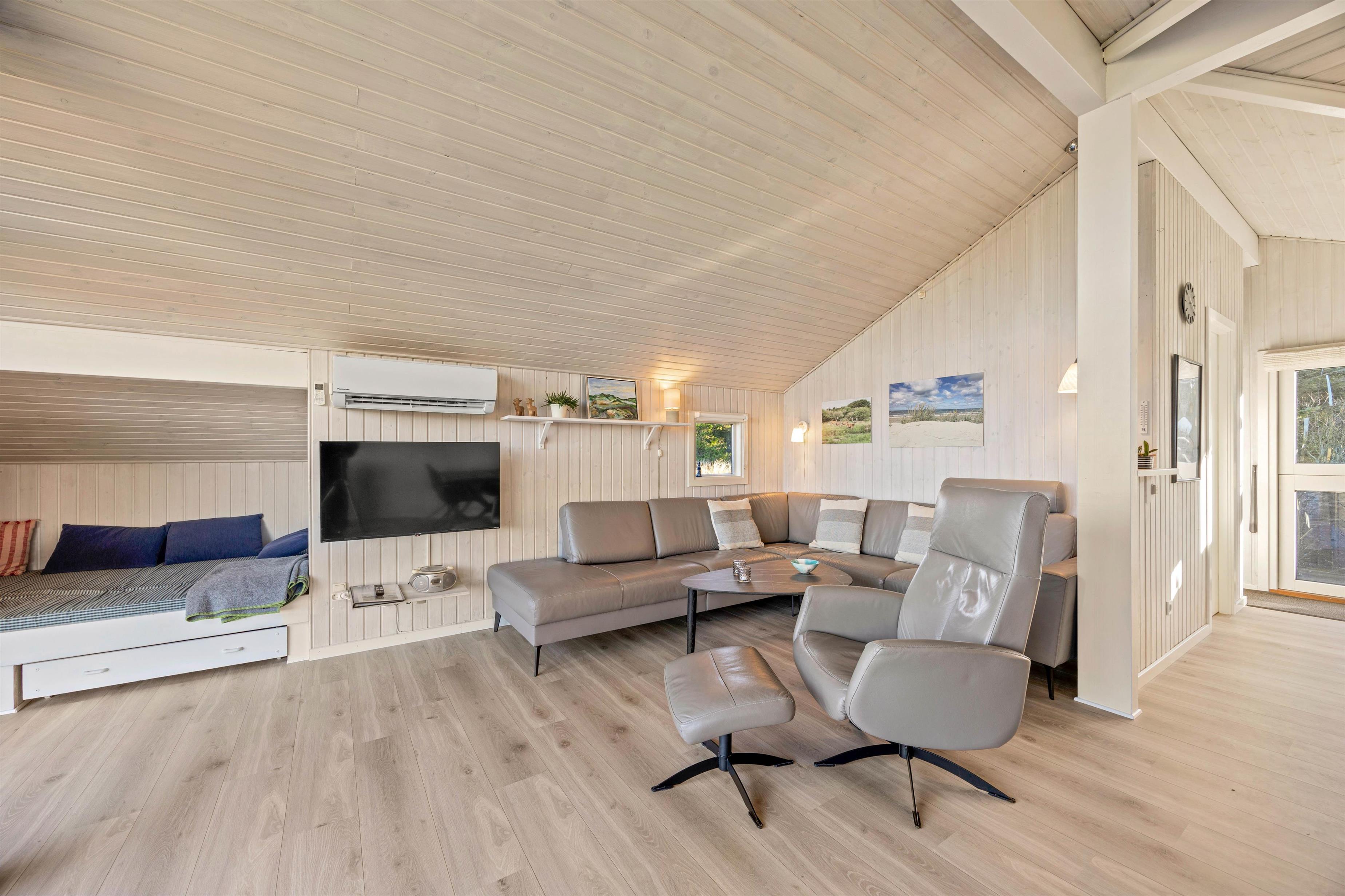 Hjerterummet er det lyse alrum, hvor der er masser af plads til familielivet. Mens der laves mad i køkkenet, kan børnene spille eller tegne omkring spisebordet – på den måde kan I stadigvæk grine sammen på tværs af rummet. Saml familie i sofaarrangementet med en god film, et spil eller slap af med en god bog. For at gøre det ekstra hyggeligt, kan I tænde op i brændeovnen og nyde den knitrende ild. I stuen findes også en hyggelig sovealkove, ideel til en eftermiddagslur eller som legehule for børnene.