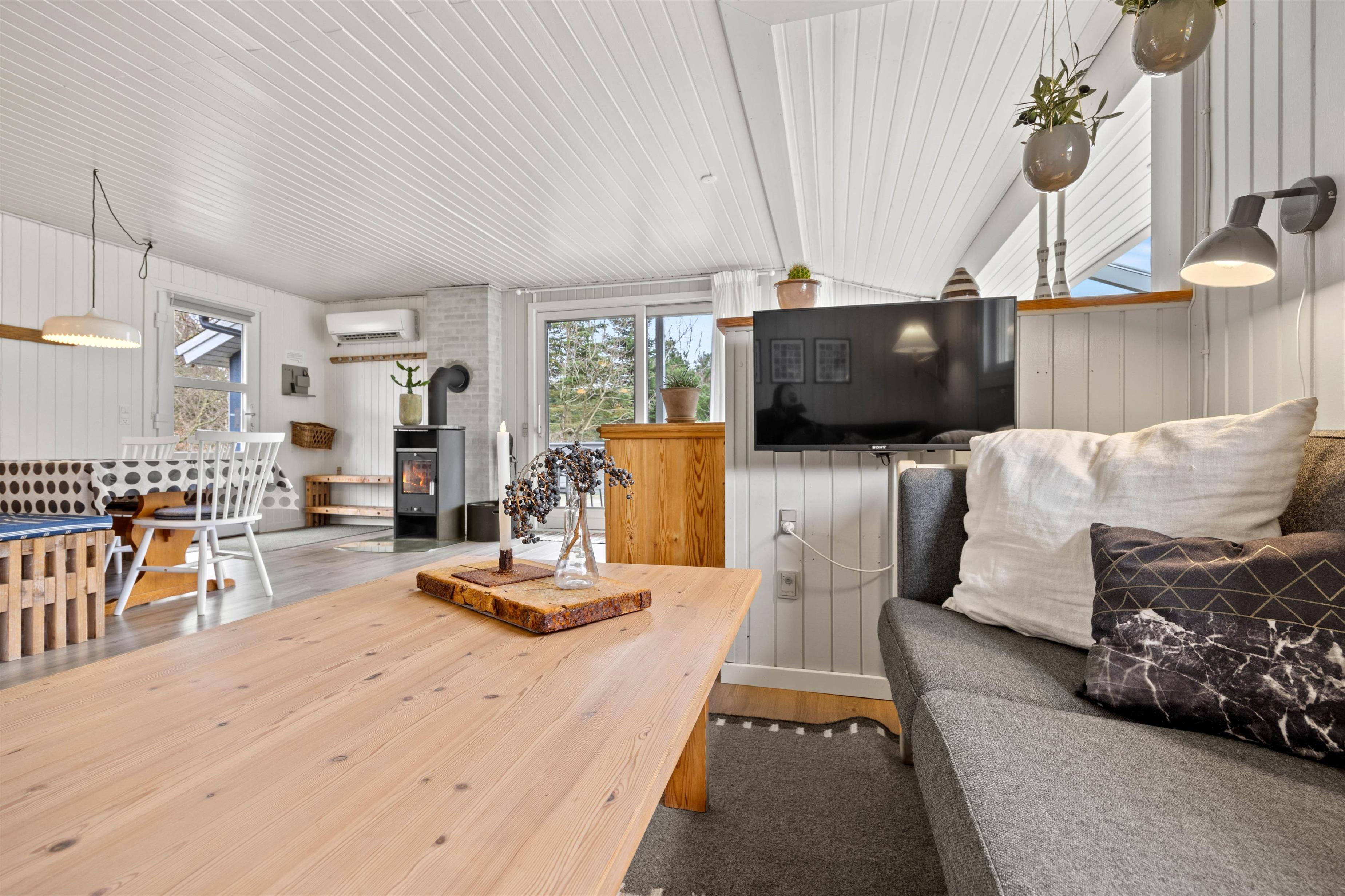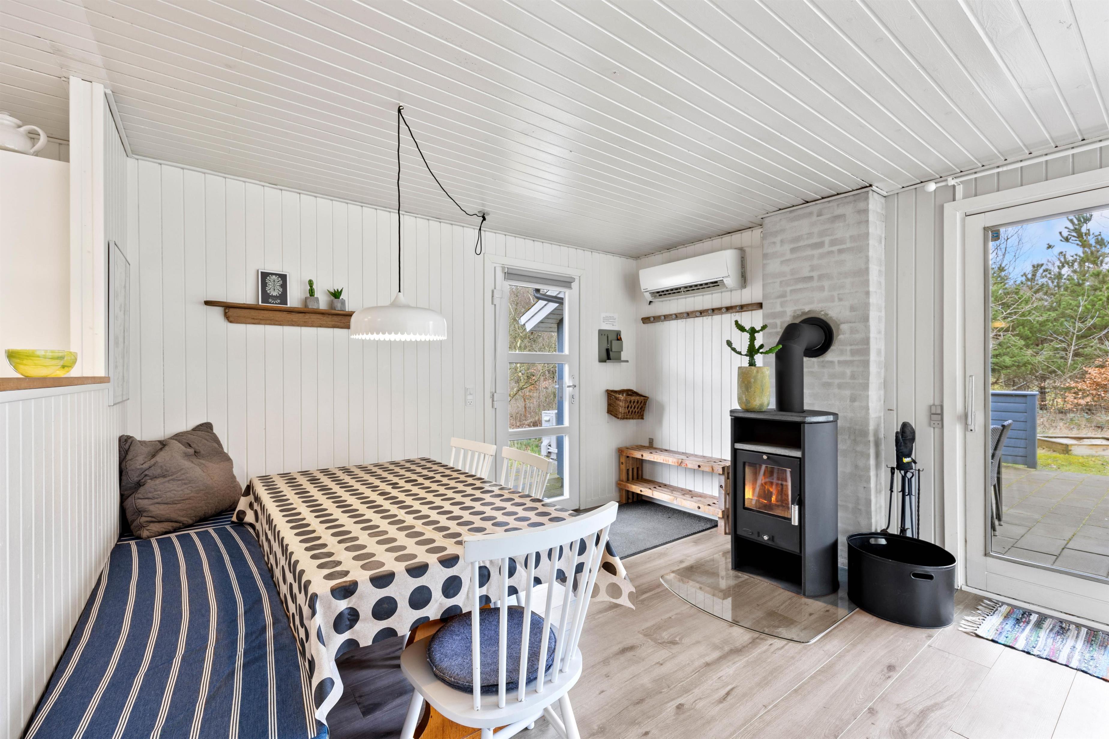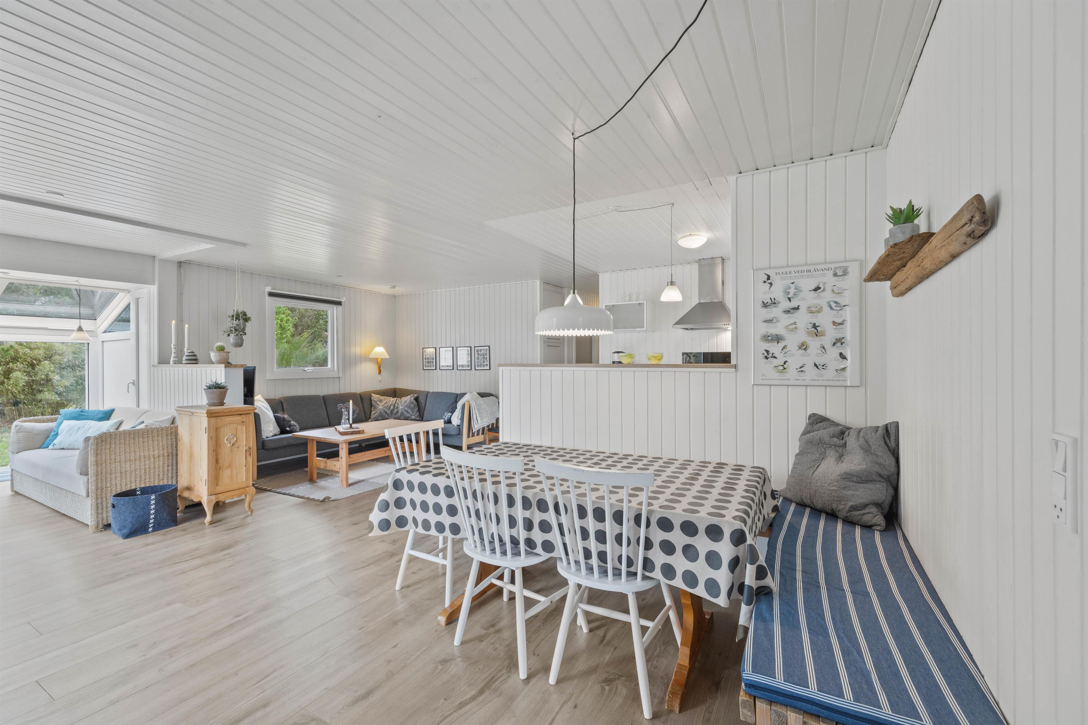 Med kun en frisk gåtur til stranden er dette sommerhus ideelt til en familie eller venner, som holder ferie sammen. Man føler sig straks hjemme i den lyse og venlige indretning, og her er alle fornødenheder, som en moderne familie har brug for. Udestuen forlænger naturoplevelsen, da I her kan slappe af og nyde landskabet i al slags vejr. Brændeovnen i stuen sætter prikken over i’et på feriestemningen.