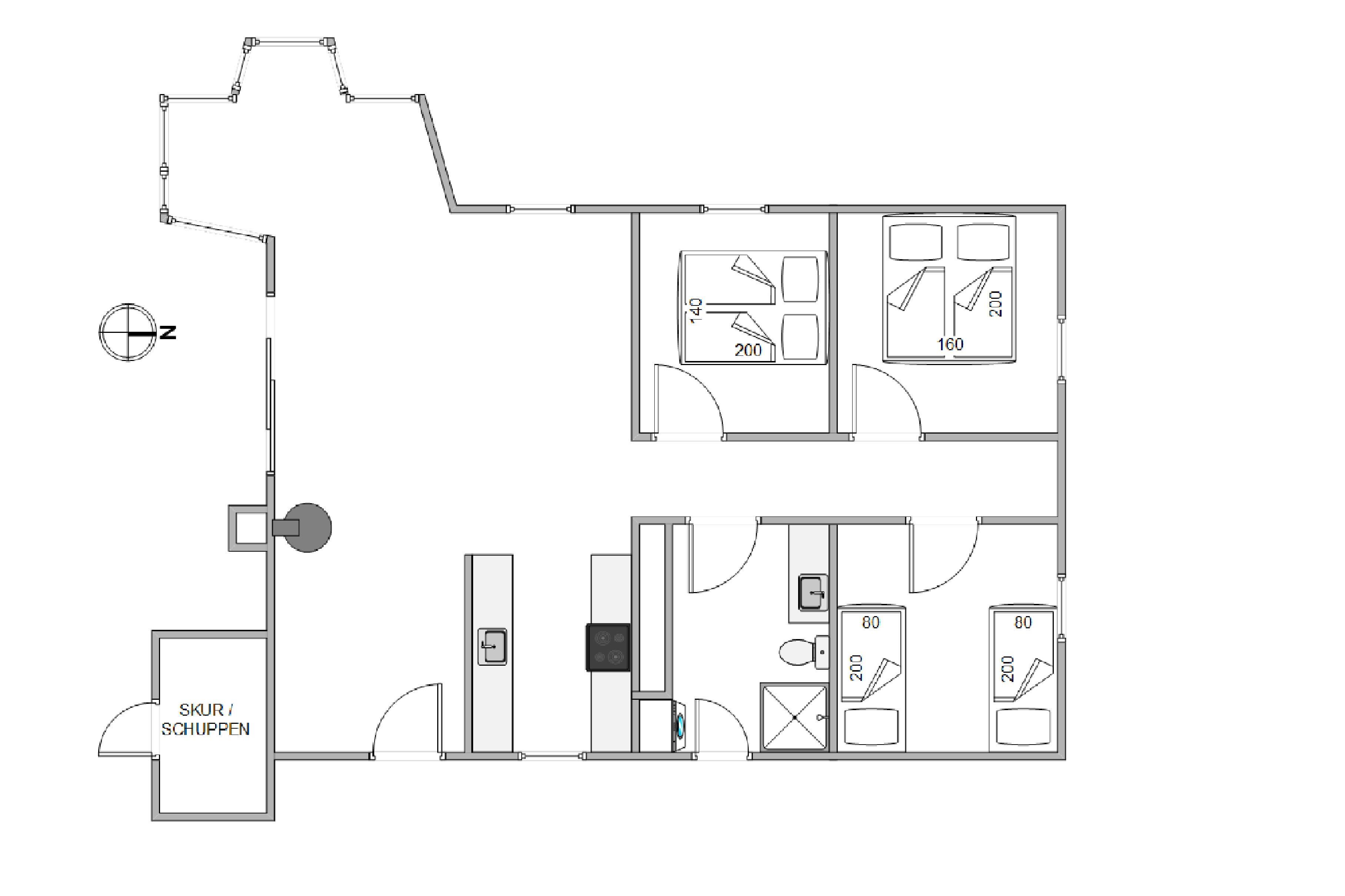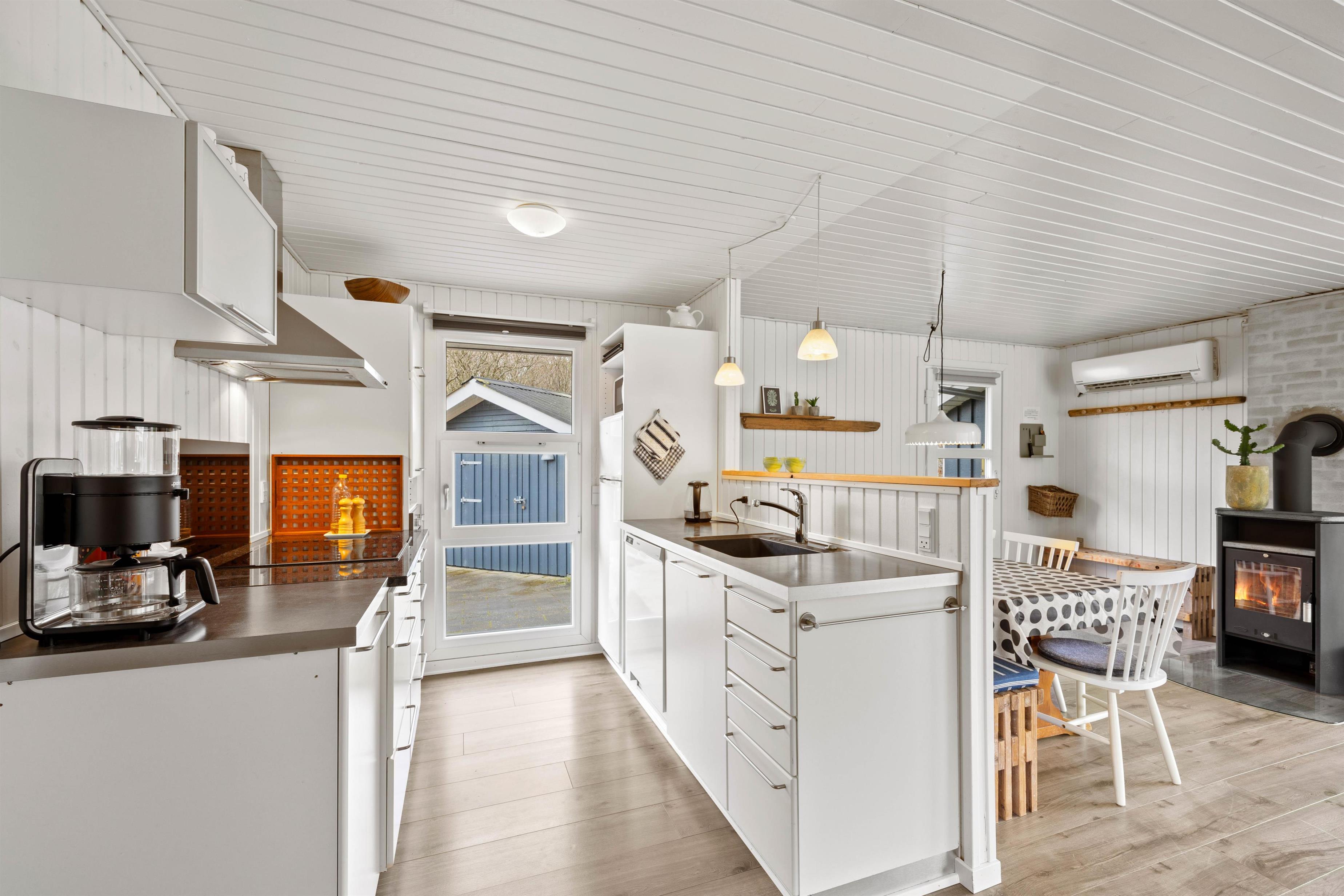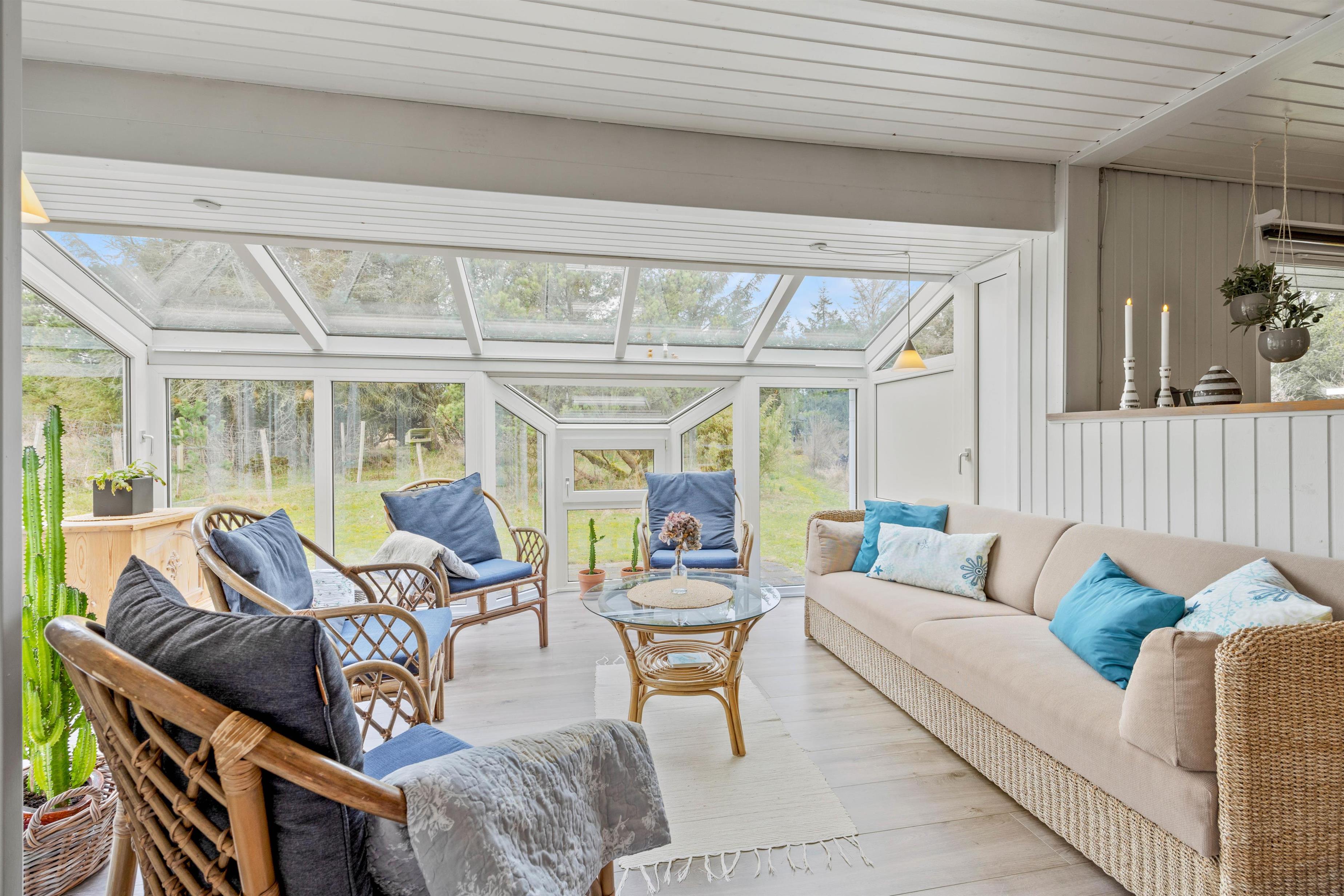 Med kun en frisk gåtur til stranden er dette sommerhus ideelt til en familie eller venner, som holder ferie sammen. Man føler sig straks hjemme i den lyse og venlige indretning, og her er alle fornødenheder, som en moderne familie har brug for. Udestuen forlænger naturoplevelsen, da I her kan slappe af og nyde landskabet i al slags vejr. Brændeovnen i stuen sætter prikken over i’et på feriestemningen.