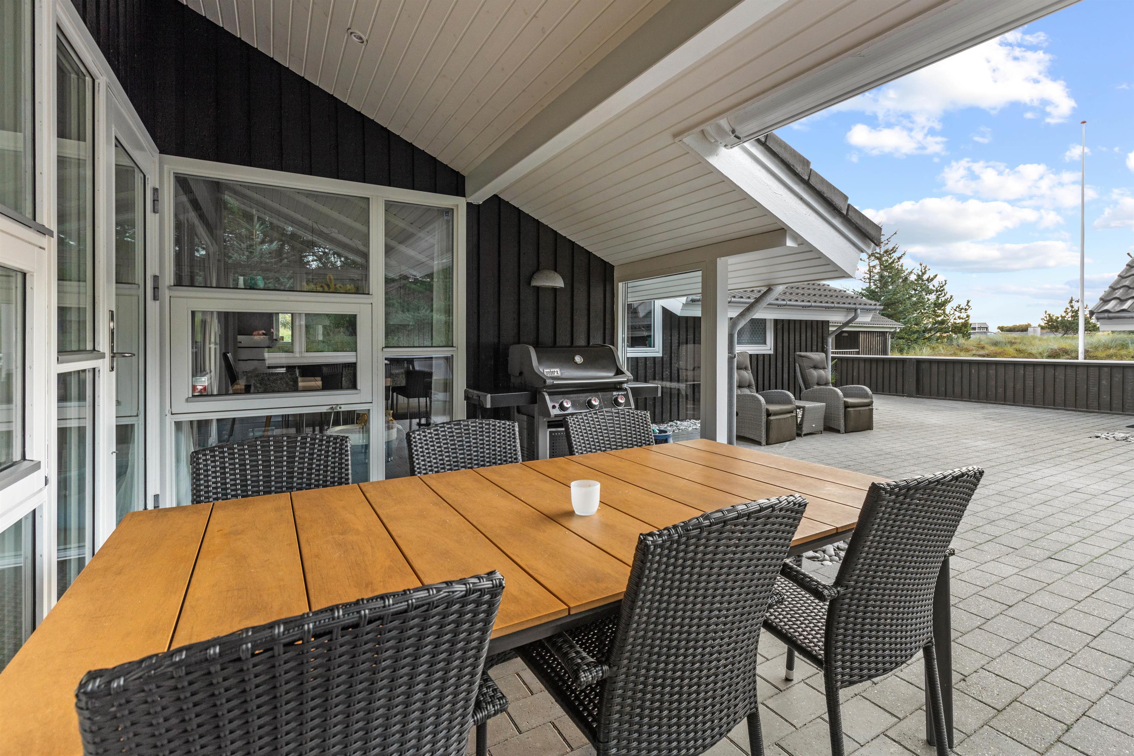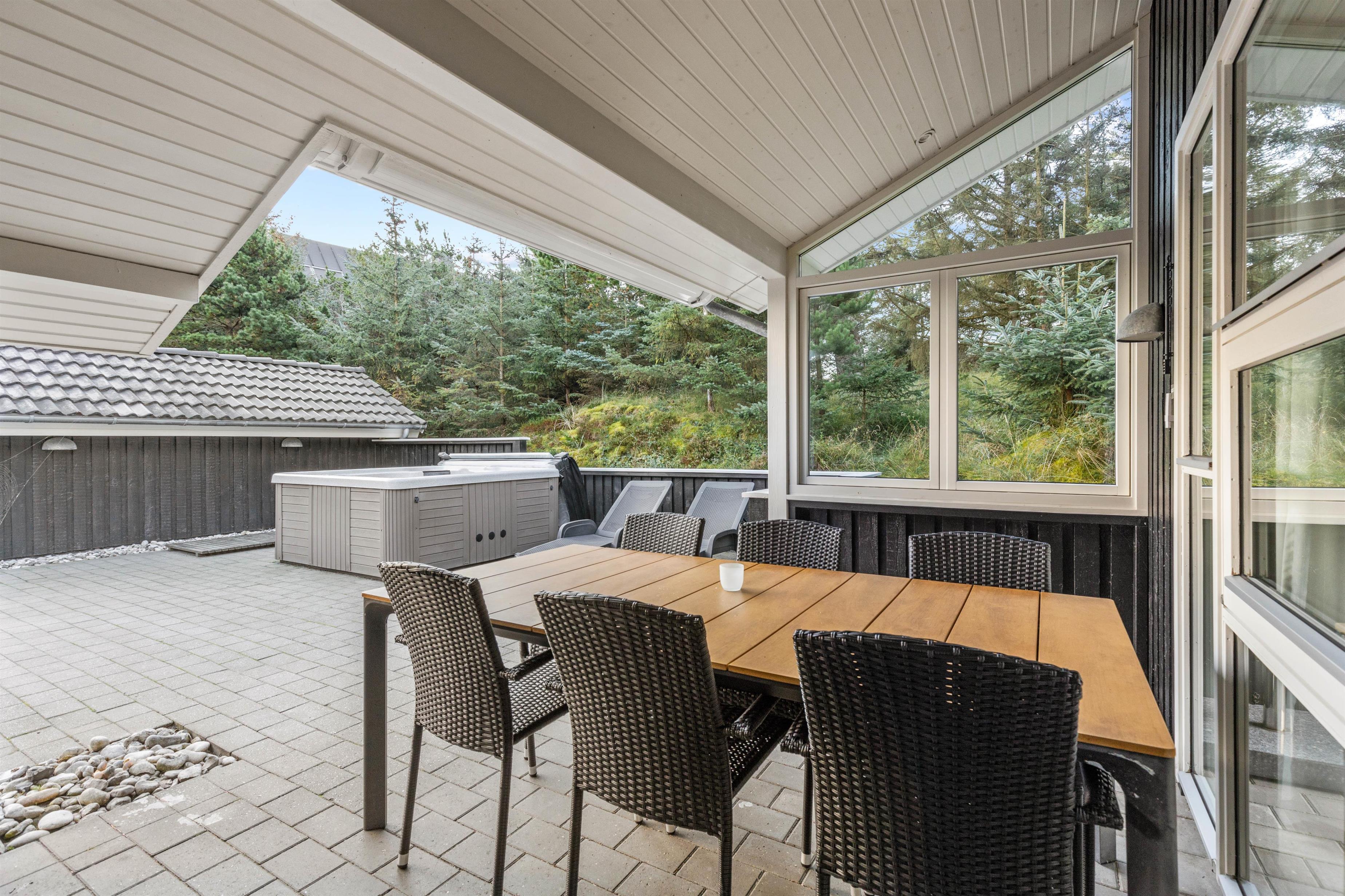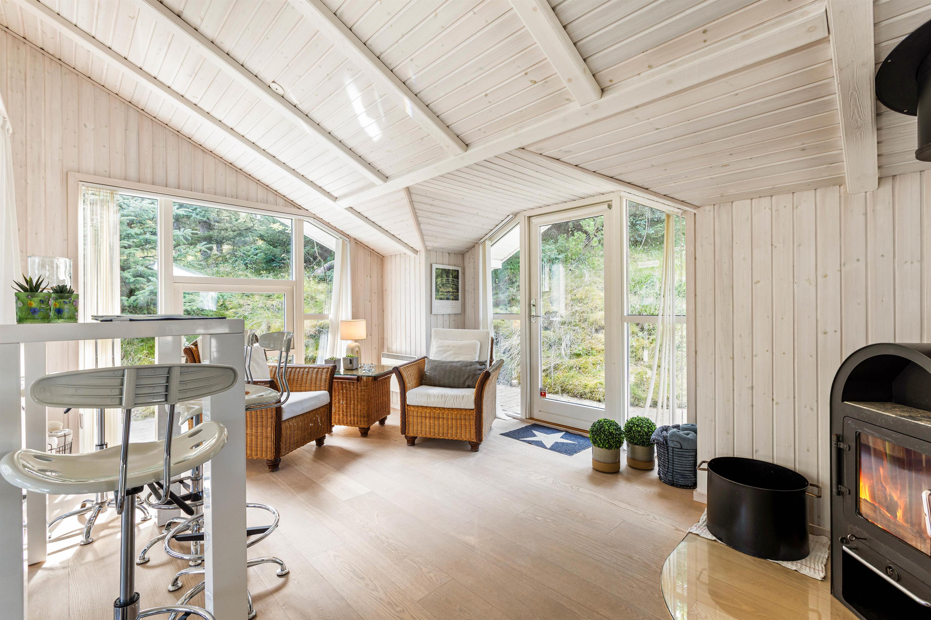 Med til feriehuset hører et skønt udeareal. Den lukkede terrasse går hele vejen rundt om huset, og der er mere end god plads til at hive havemøblerne og liggestolene frem på en varm sommerdag. Den grønne natur omgiver huset og tilsætter ferien ekstra idyl.