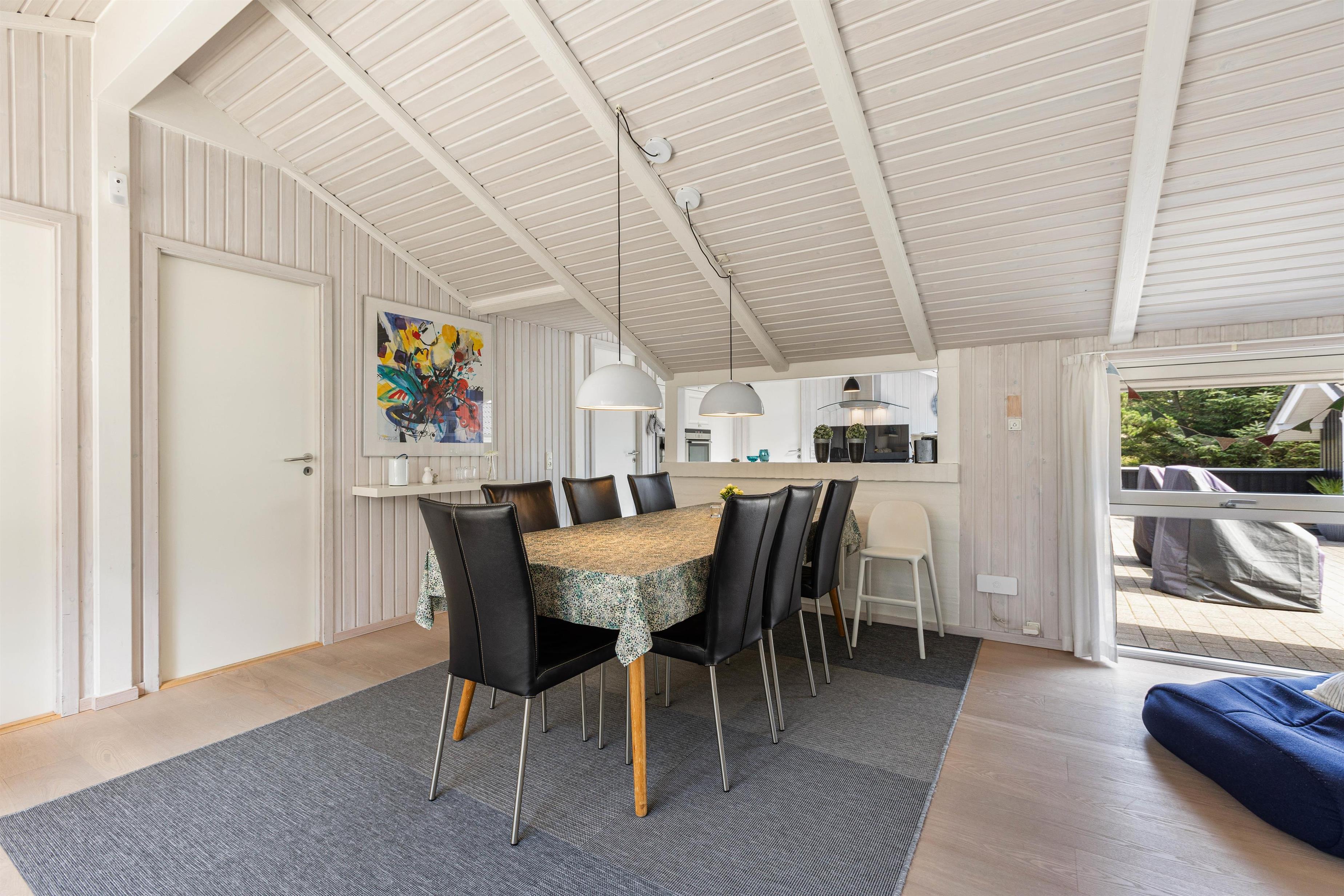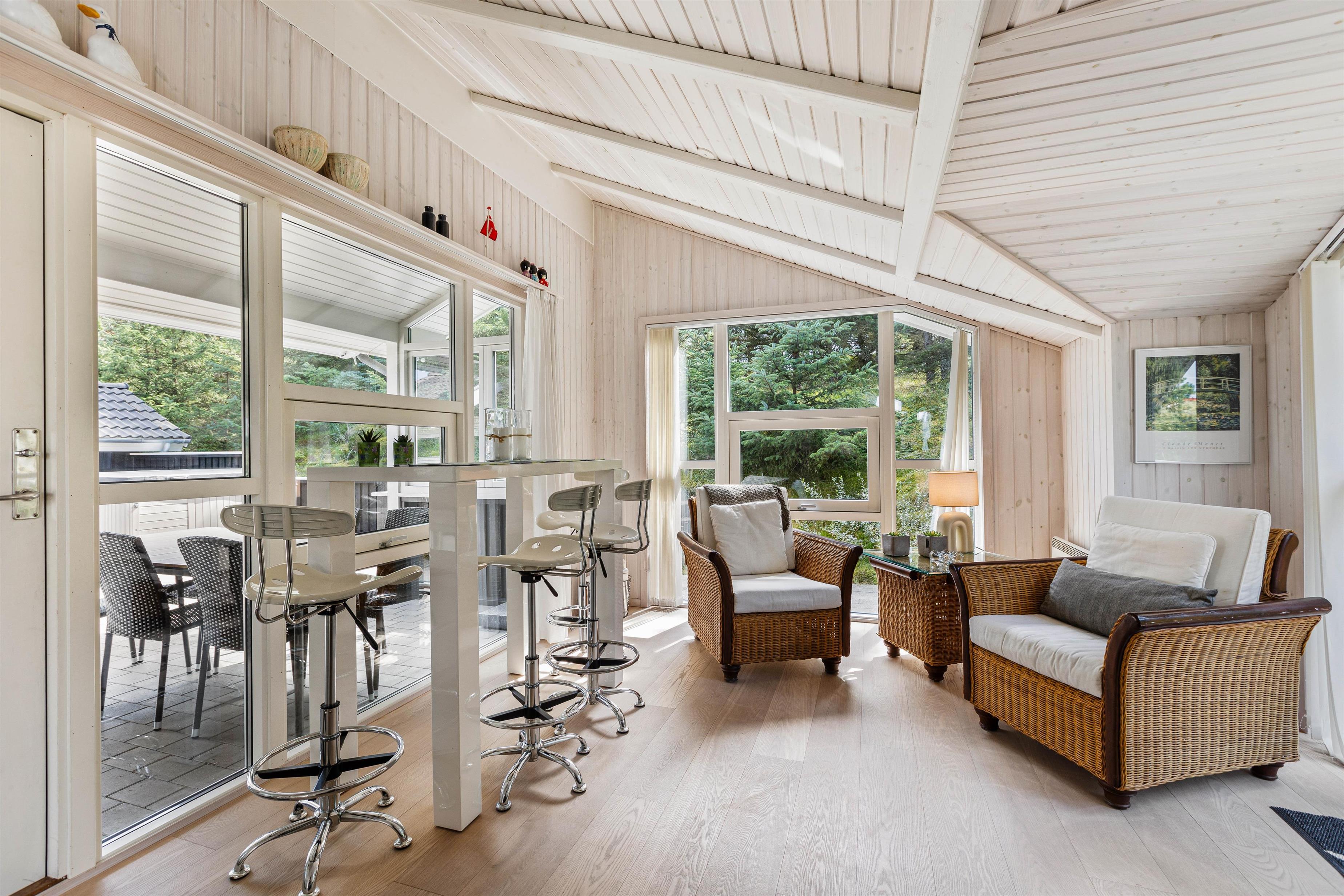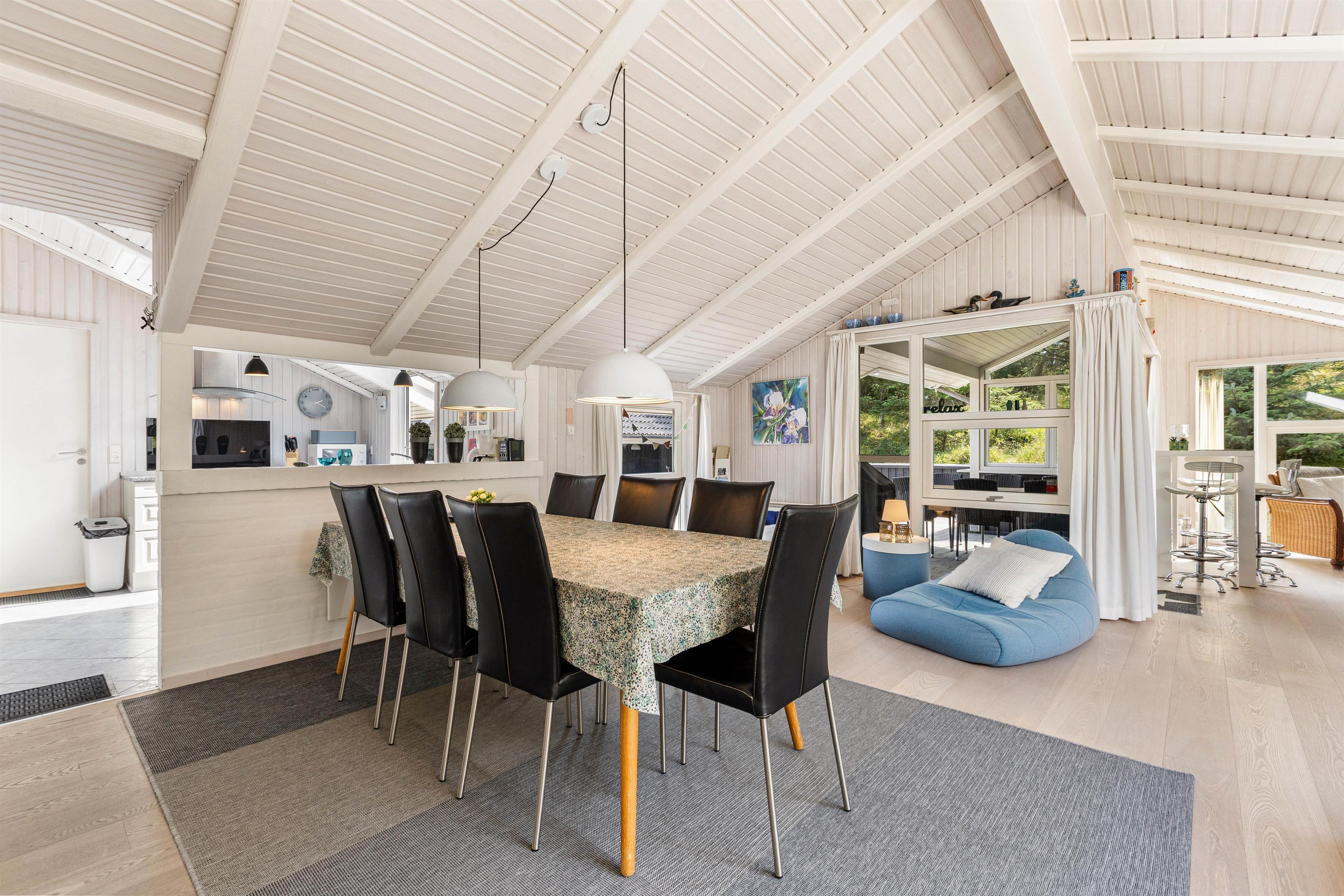 Med til feriehuset hører et skønt udeareal. Den lukkede terrasse går hele vejen rundt om huset, og der er mere end god plads til at hive havemøblerne og liggestolene frem på en varm sommerdag. Den grønne natur omgiver huset og tilsætter ferien ekstra idyl.