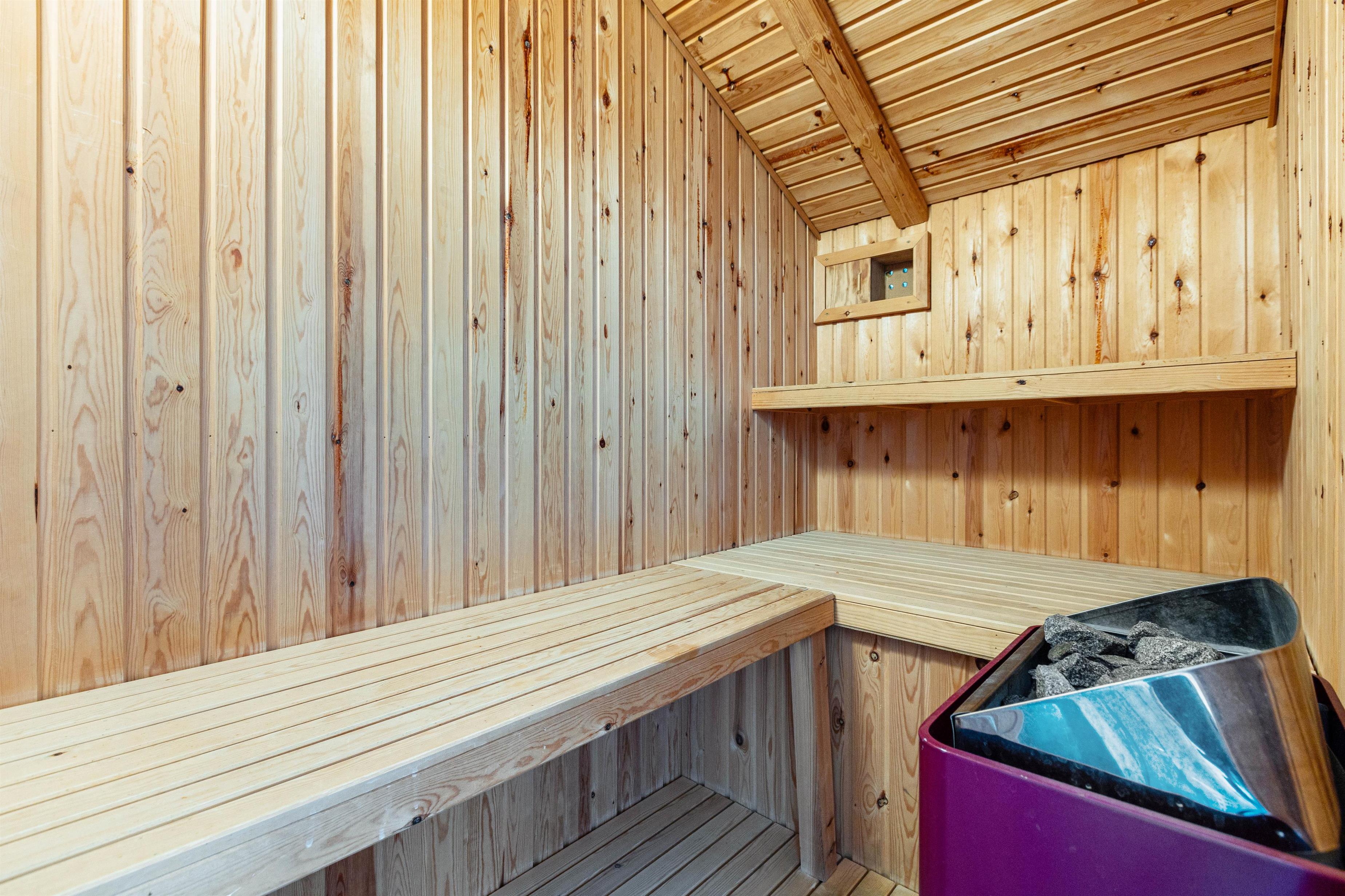 I får et stort badeværelse og yderligere et gæstetoilet, begge med gulvvarme. Fra badeværelset er der desuden adgang til husets skønne sauna, som helt sikkert vil blive et hit blandt de wellnessglade gæster.