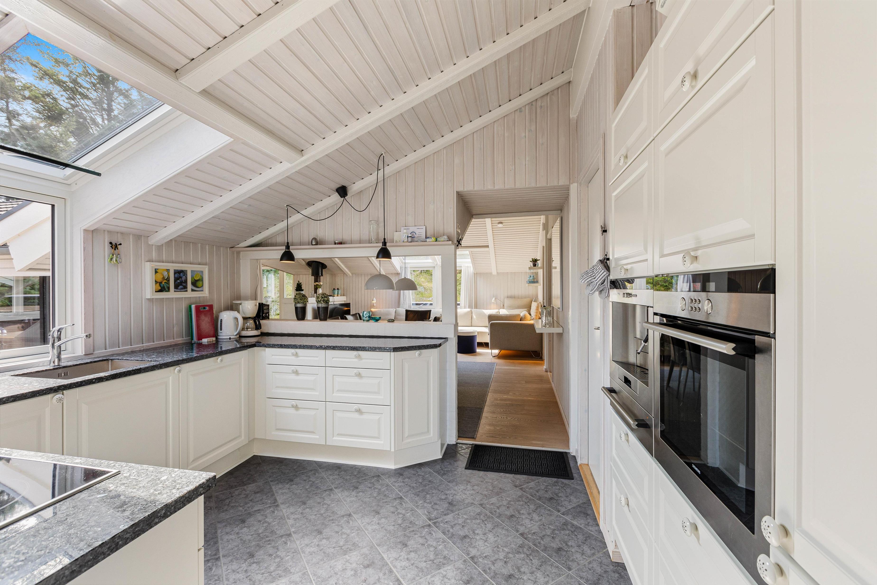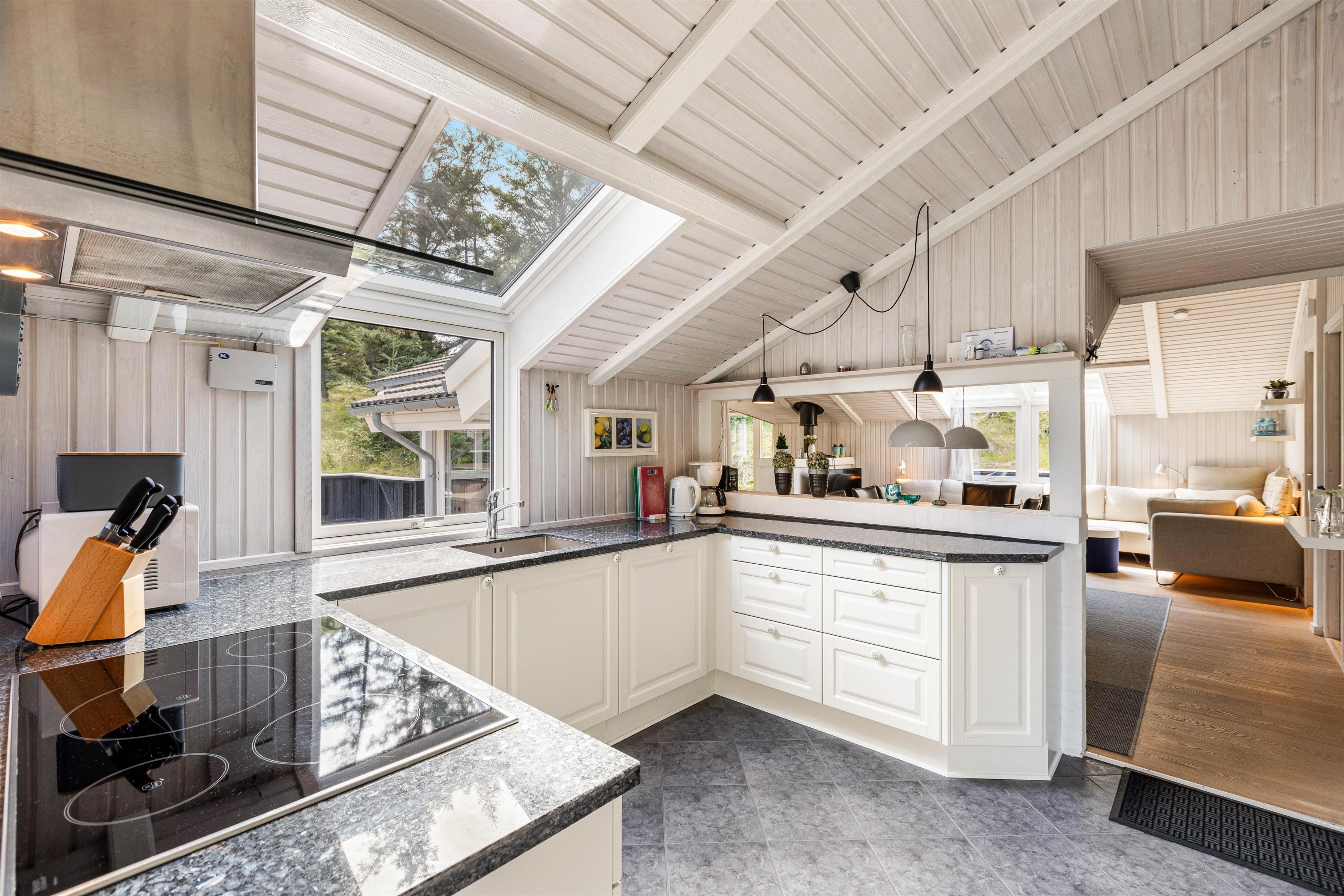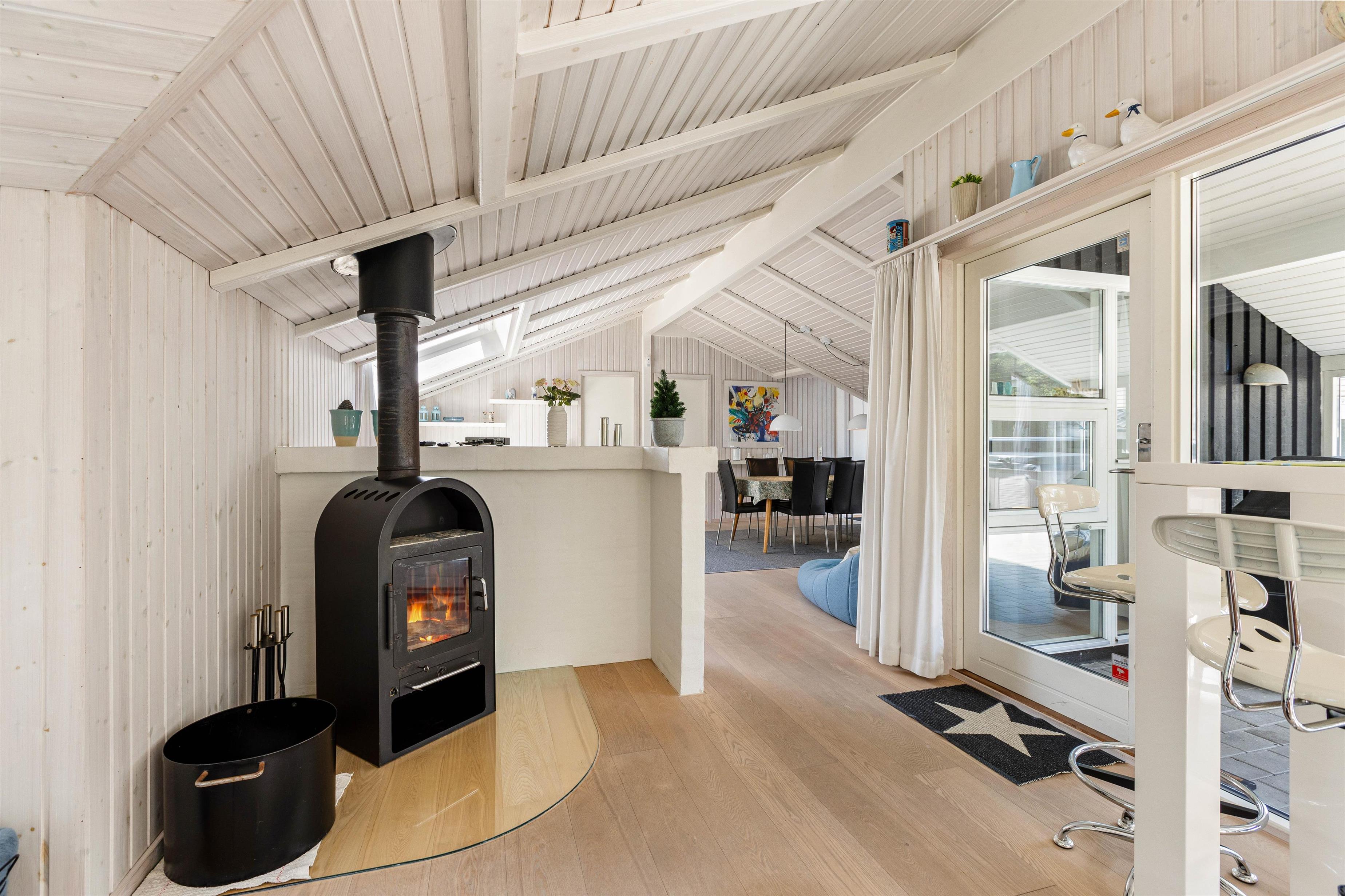 Det skønne feriehus på Risvej 45 byder på 108 stilrene og rummelige kvadratmeter til den næste familieferie. Der er stort fokus på åbenhed og hygge med lyse farver, lækre møbler og store vinduer, der giver et herligt lysindfald og udsyn til Vejers' grønne natur.