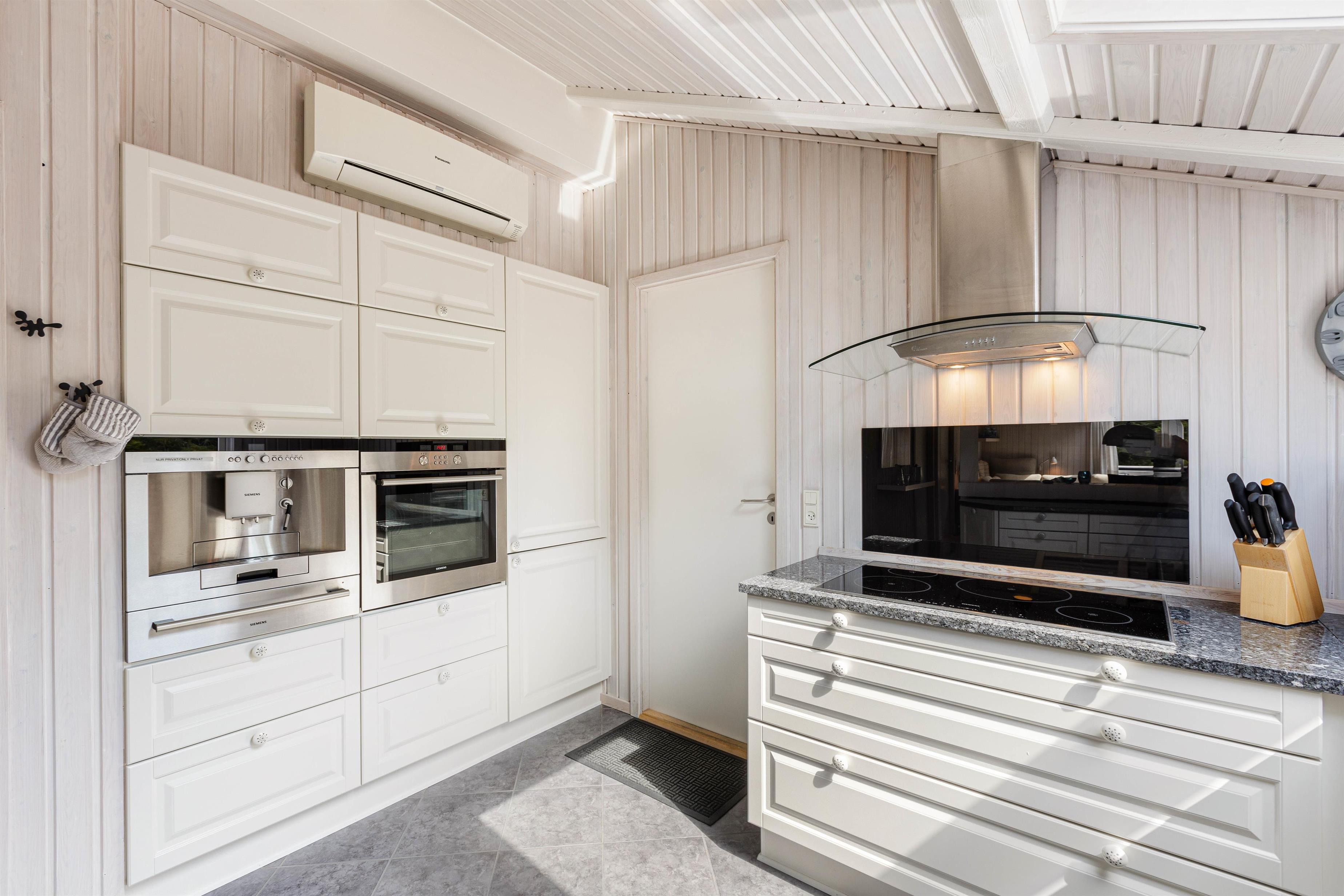 Der er god grund til at pakke badetøjet med, ligegyldigt hvornår på året I holder ferie. På den store terrasse står nemlig et lækkert udendørs spa og en gasgrill.