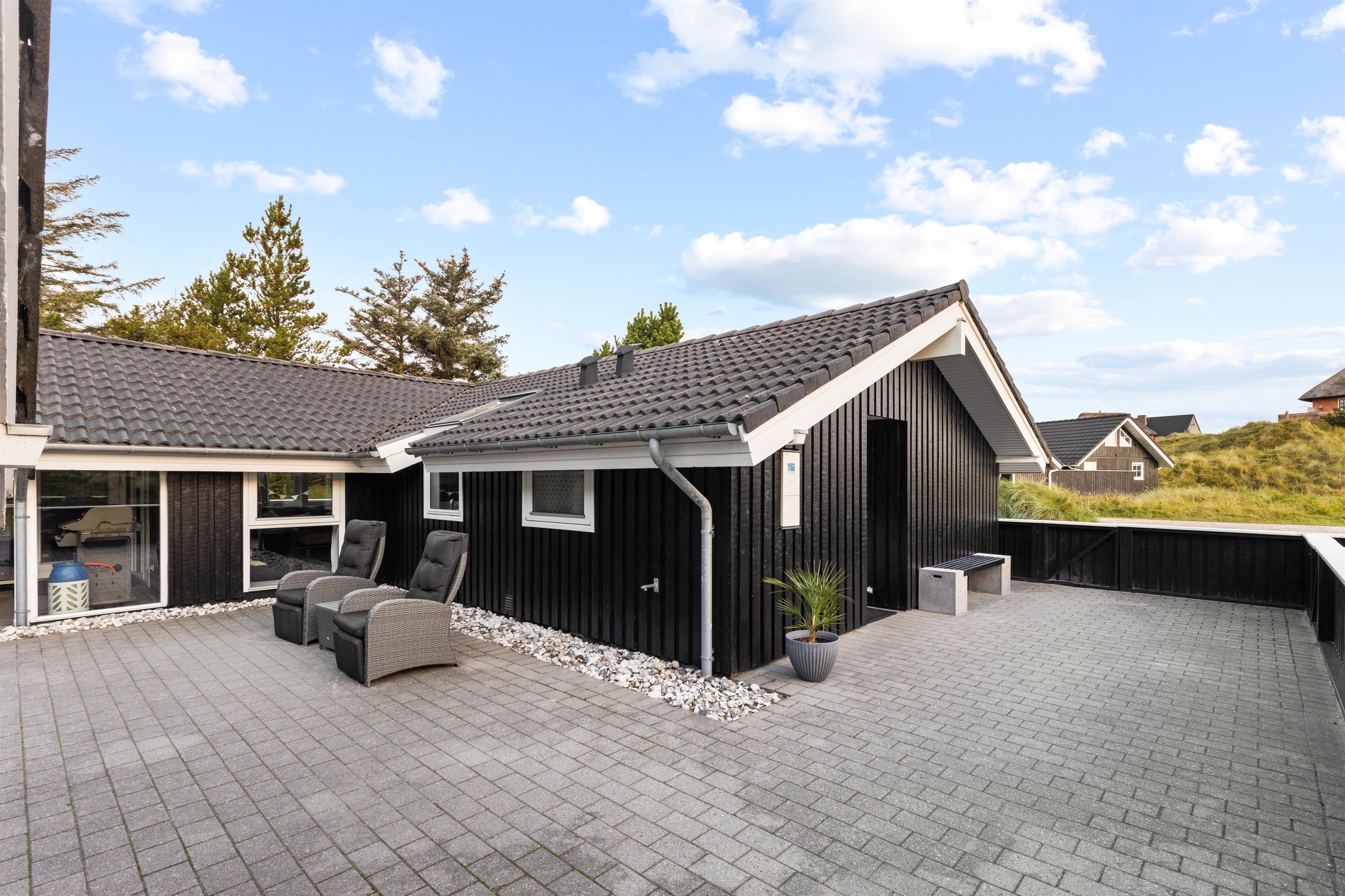 Dette fantastiske feriehus til 6 personer er helt ideelt til en familieferie lidt ud over det sædvanlige. Det rummelige feriehjem er lyst og åbent indrettet med stor vægt på 'hyggen', og luksuriøse faciliteter i form af sauna og udendørs spabad er prikken over i'et. Beliggenheden i Vejers Strand er både naturskøn og kort vej fra havet, og huset byder på god plads både udendørs og indendørs.