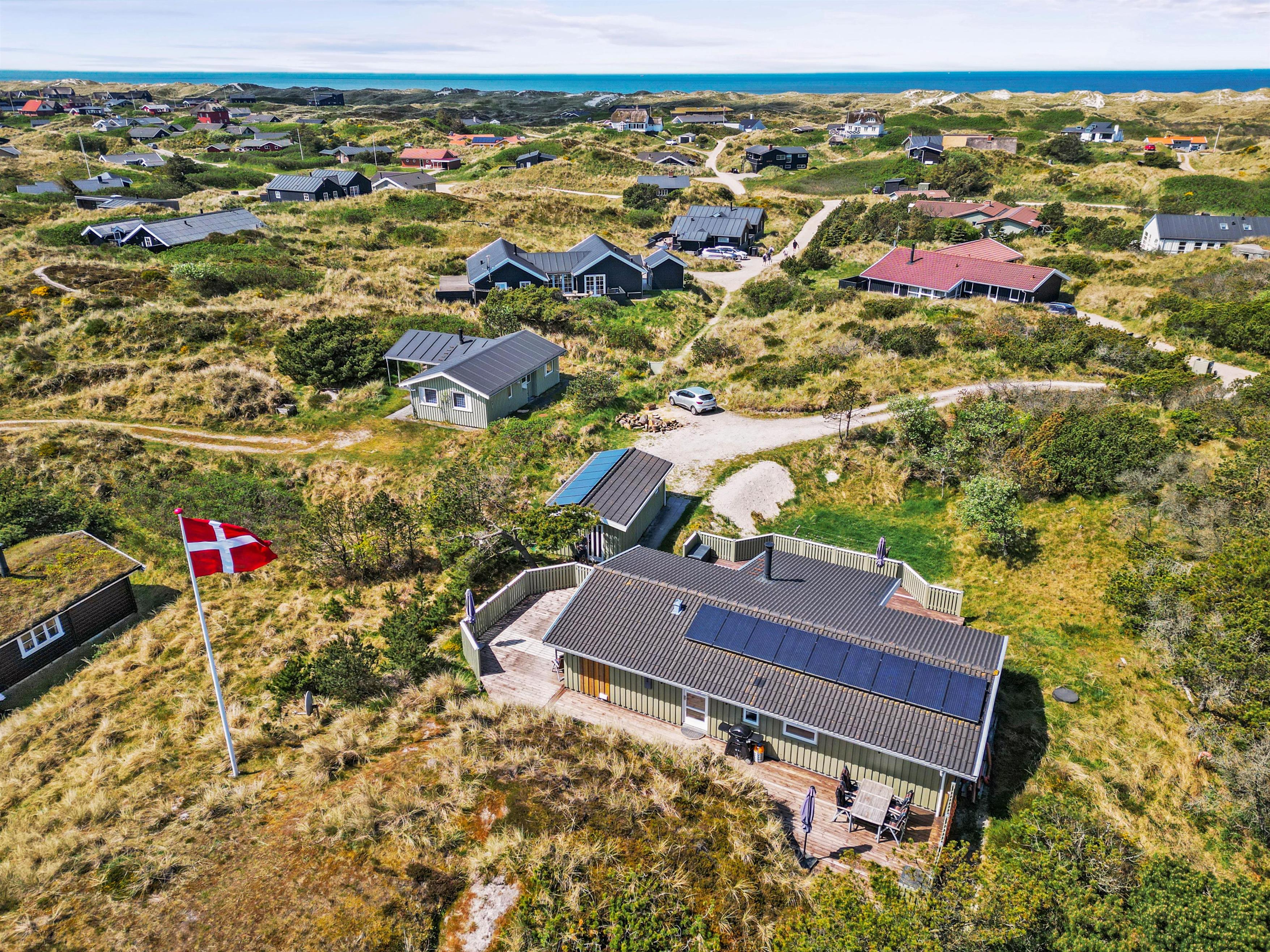 Midt i det vestjyske klitlandskab i Vejers Strand ligger dette hyggelige feriehus og venter på jer. Det fine træhus rummer plads til 6 gæster og byder på en venlig indretning. Den store terrasse gemmer på flere små kroge, hvor I kan nyde solen i fred og ro - og så er strømforbruget helt gratis!
