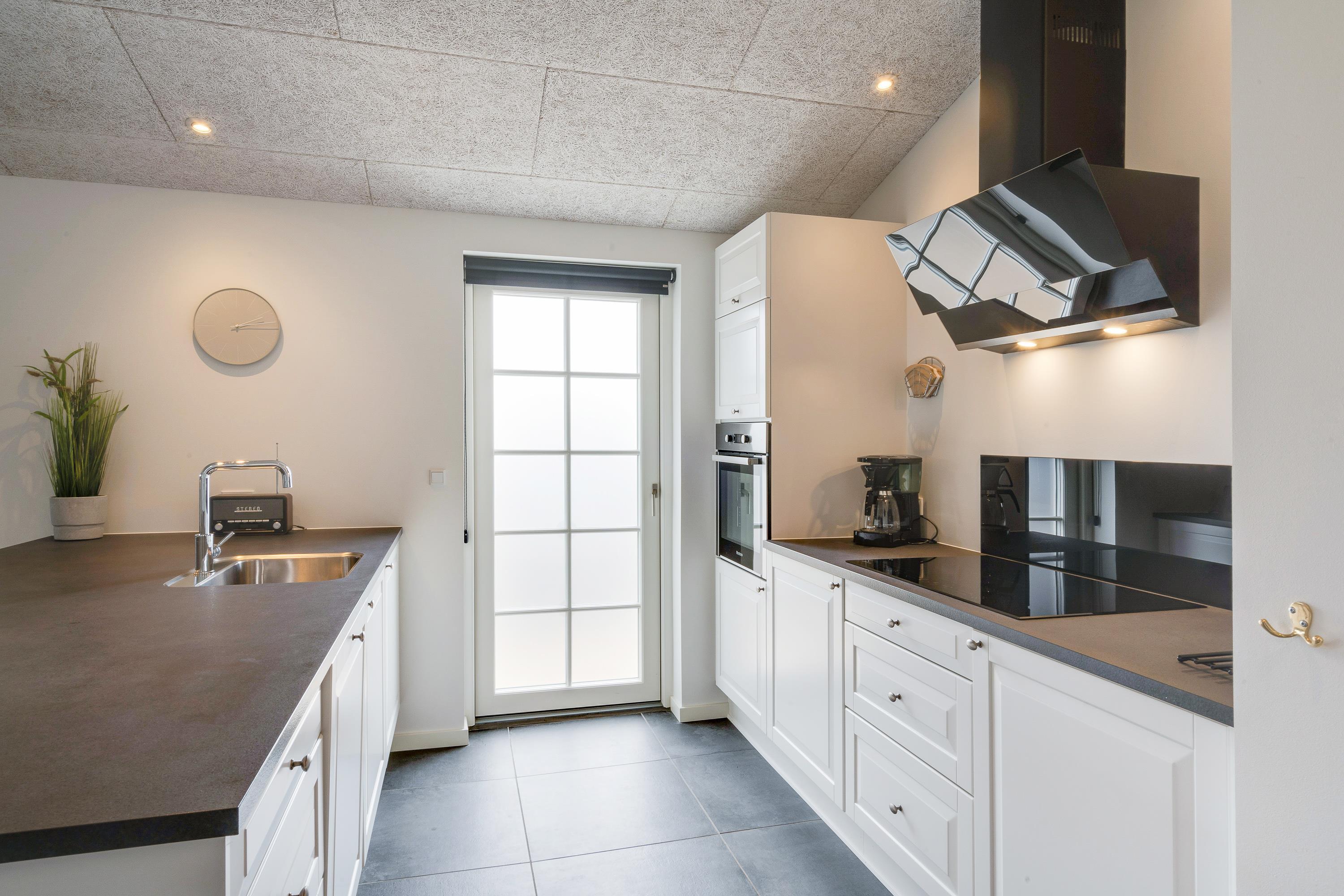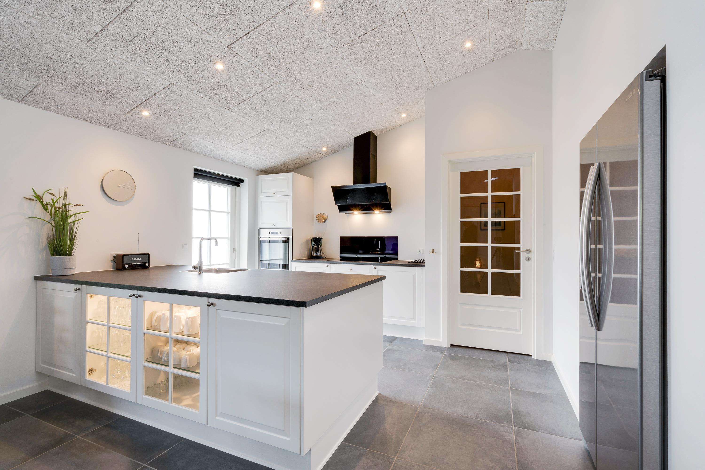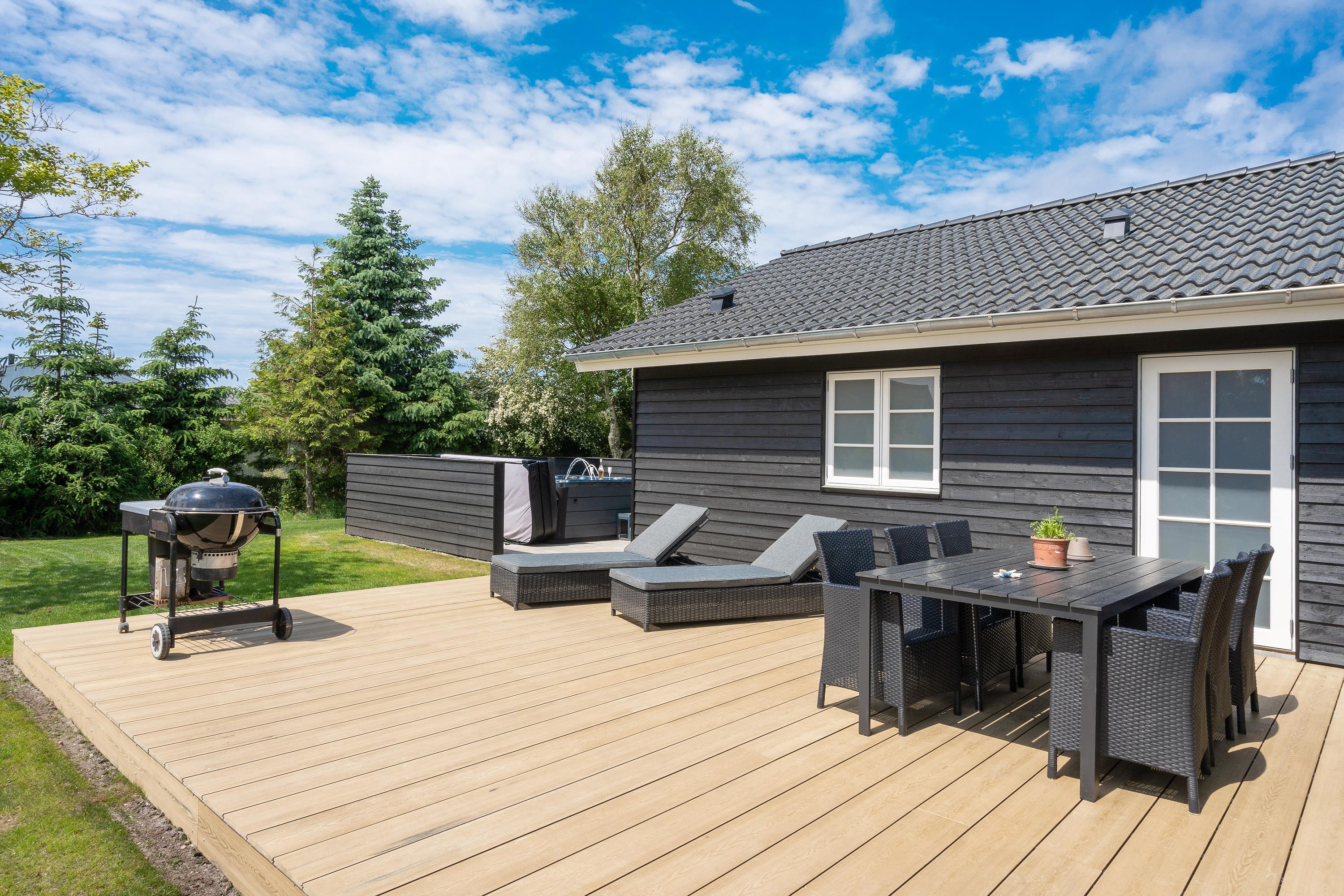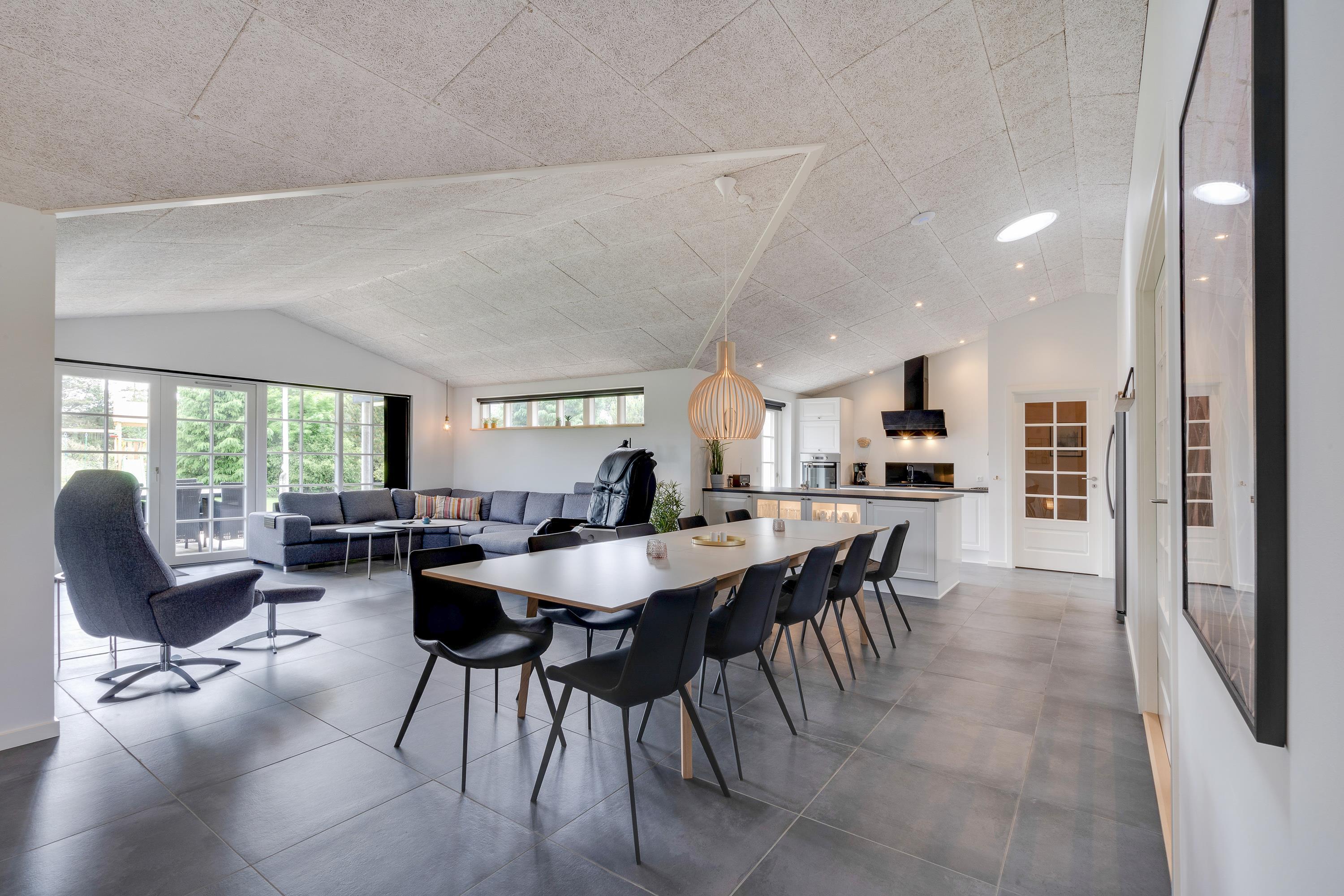 På den store terrasse står der havemøbler klar, så I kan hygge med hele flokken. Imens de mindste leger på feriehusets gynger, og de mellemste er på opdagelse med fiskestængerne ved Strib Sø, kan de voksne slappe af på liggestolene eller måske forberede lidt lækkert til grillen til aftensmaden. Da en del af terrassen er overdækket, behøver I ikke lade vejret diktere, om det er tid til udeliv eller ej.