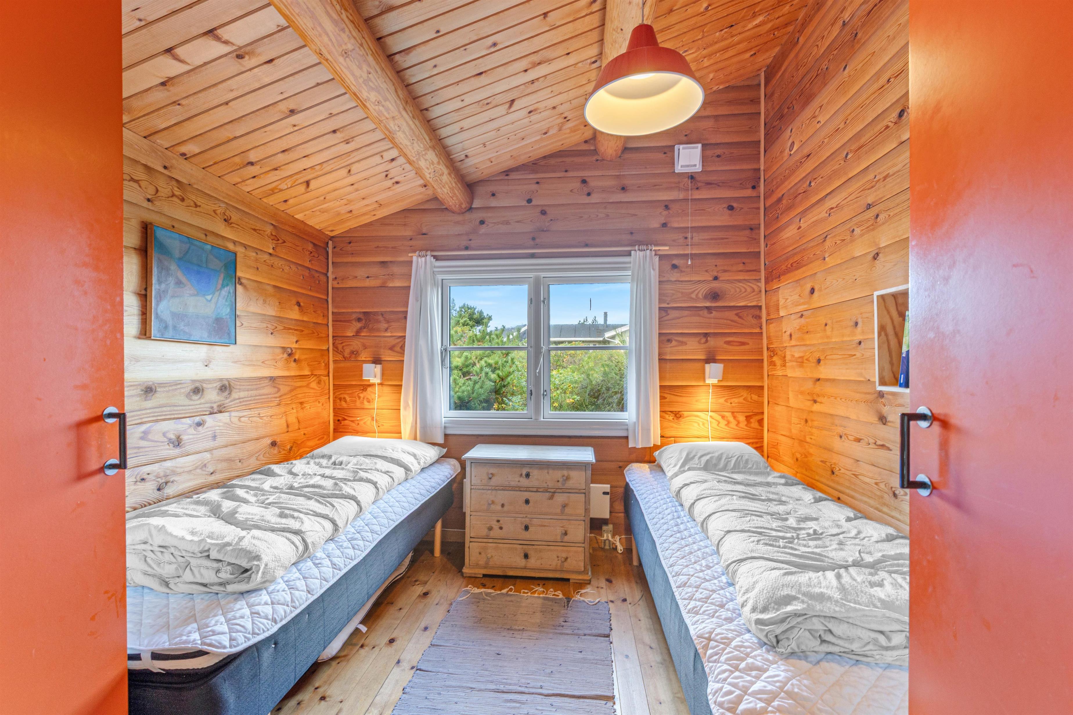 Drømmer I om at holde ferie ved Vesterhavet i et hus, der emmer af autentisk sommerhusstemning? Tæt på stranden og skoven ved Vejers Strand ligger denne klassiske, norskinspirerede bjælkehytte. Bjælkehytten ligger på en smuk klitgrund, omkranset af marehalm og lyng. Her får I de perfekte rammer til en afslappende ferie ved Vesterhavet - uanset hvilken årstid, I besøger området på.