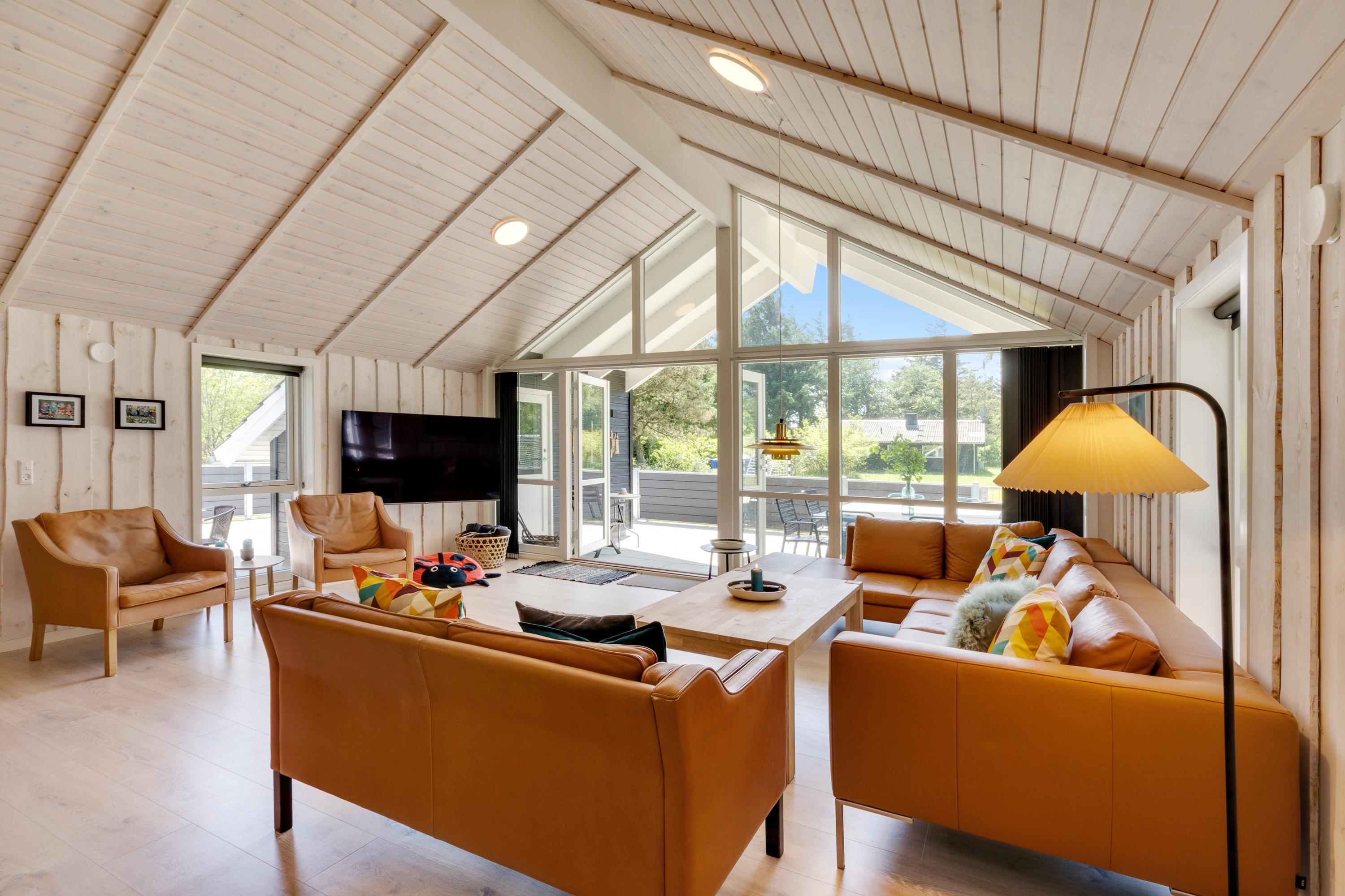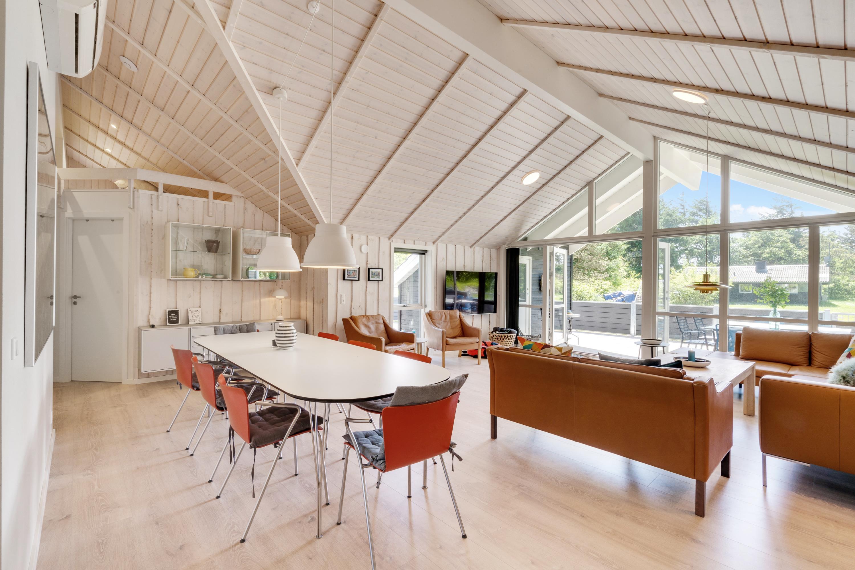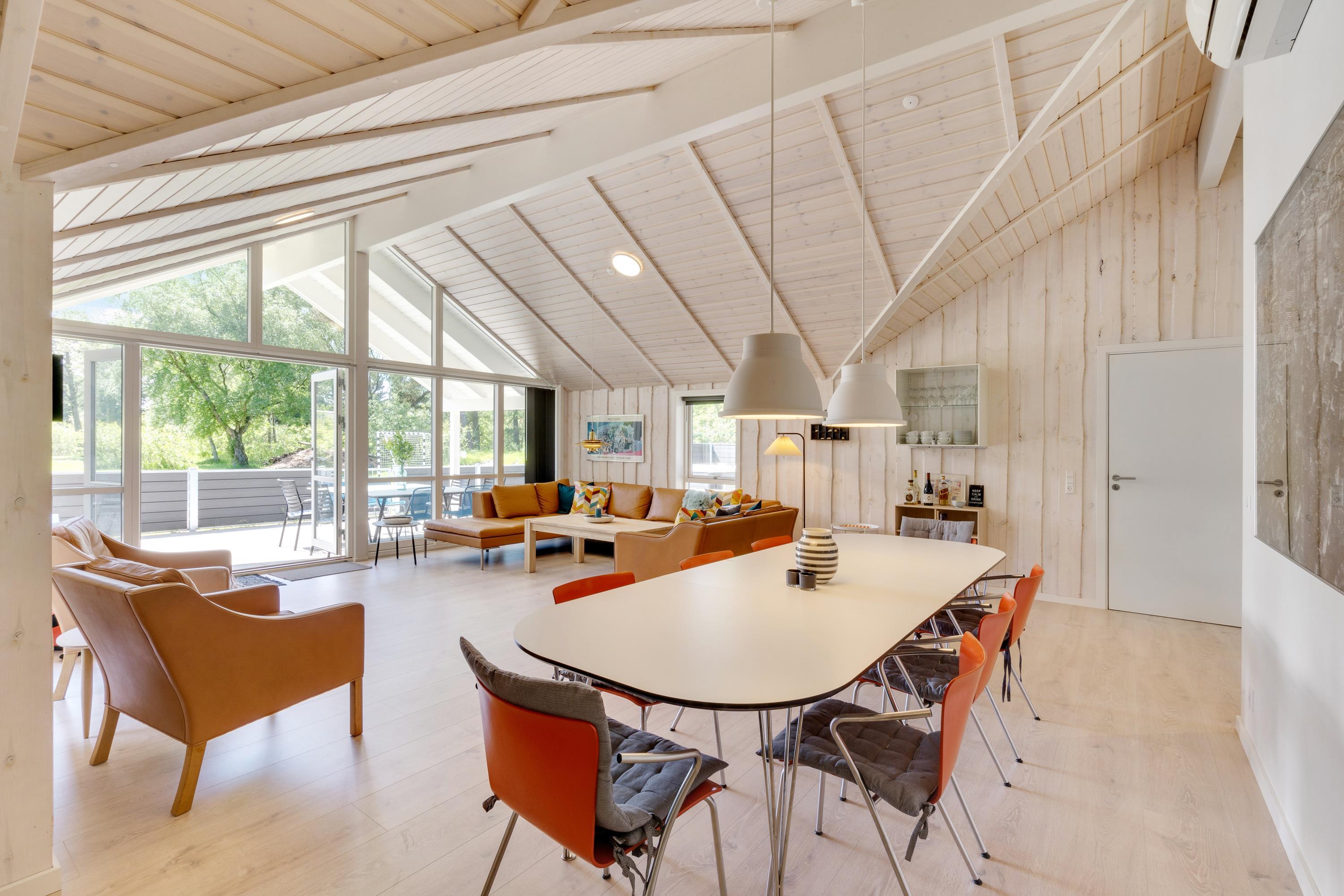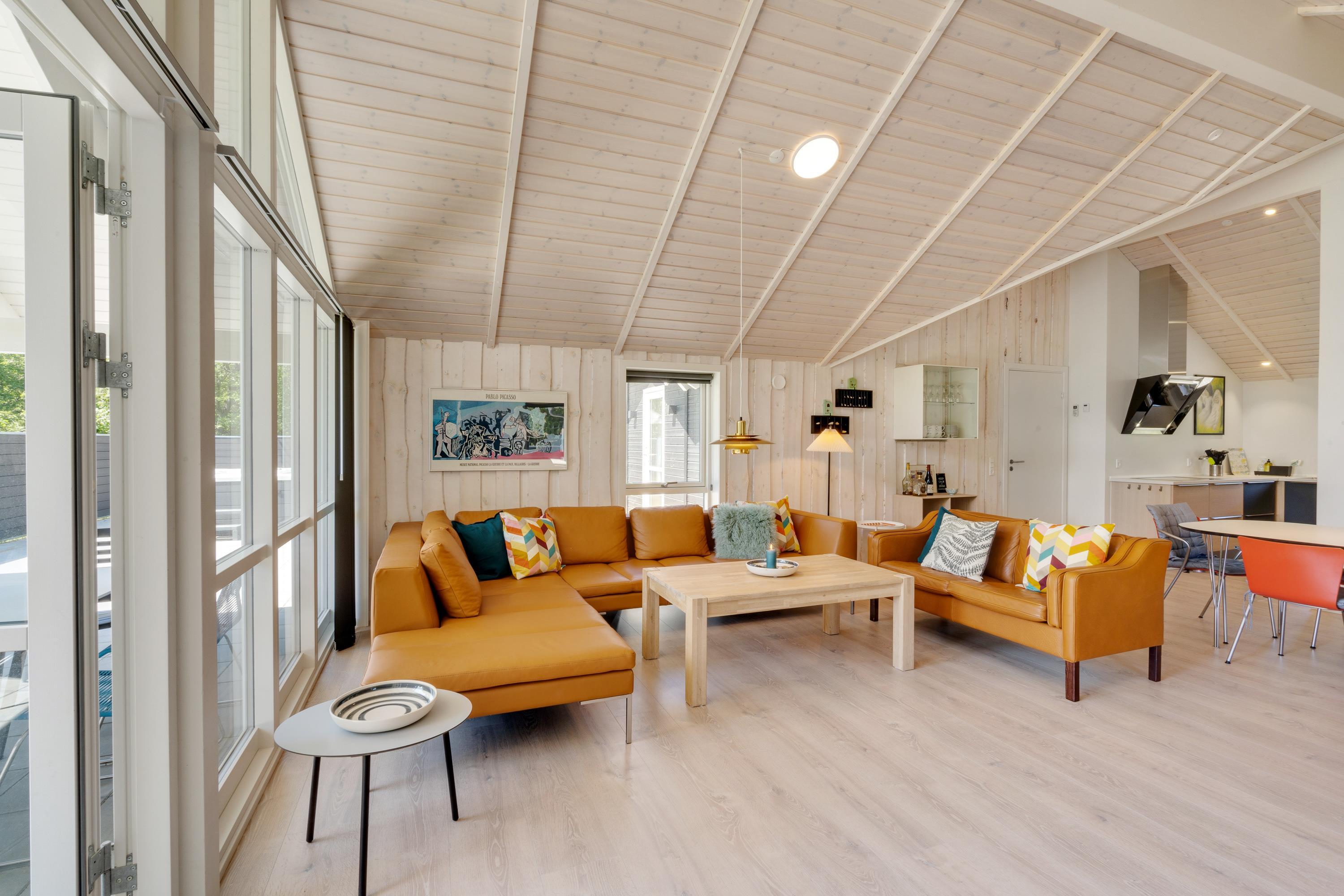 I kan også samles til hyggelige feriestunder i feriehusets alrum. I det store lyse rum med loft til kip kan I samles i sofaerne og se en god film eller gå sammen om madlavningen i køkkenet.