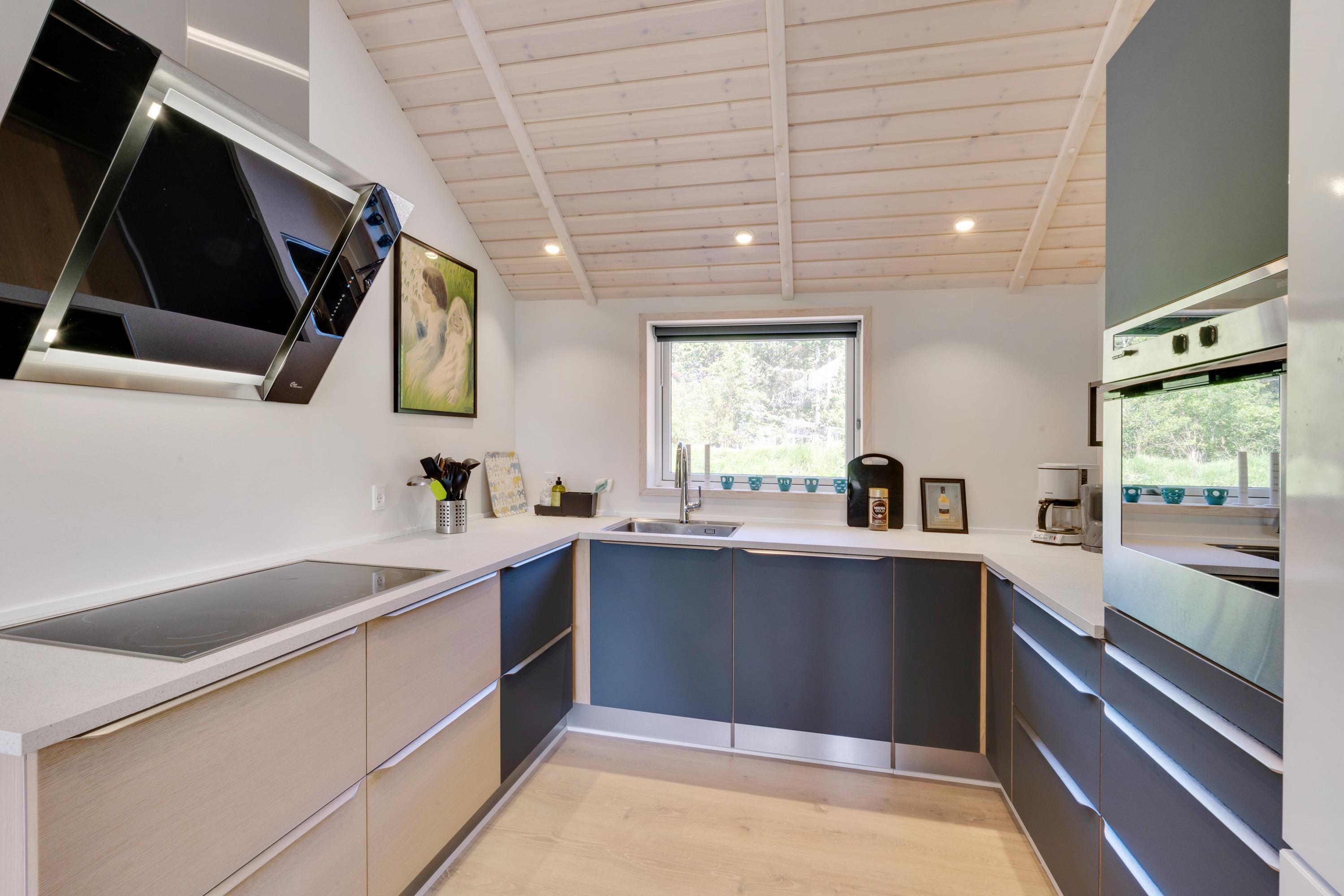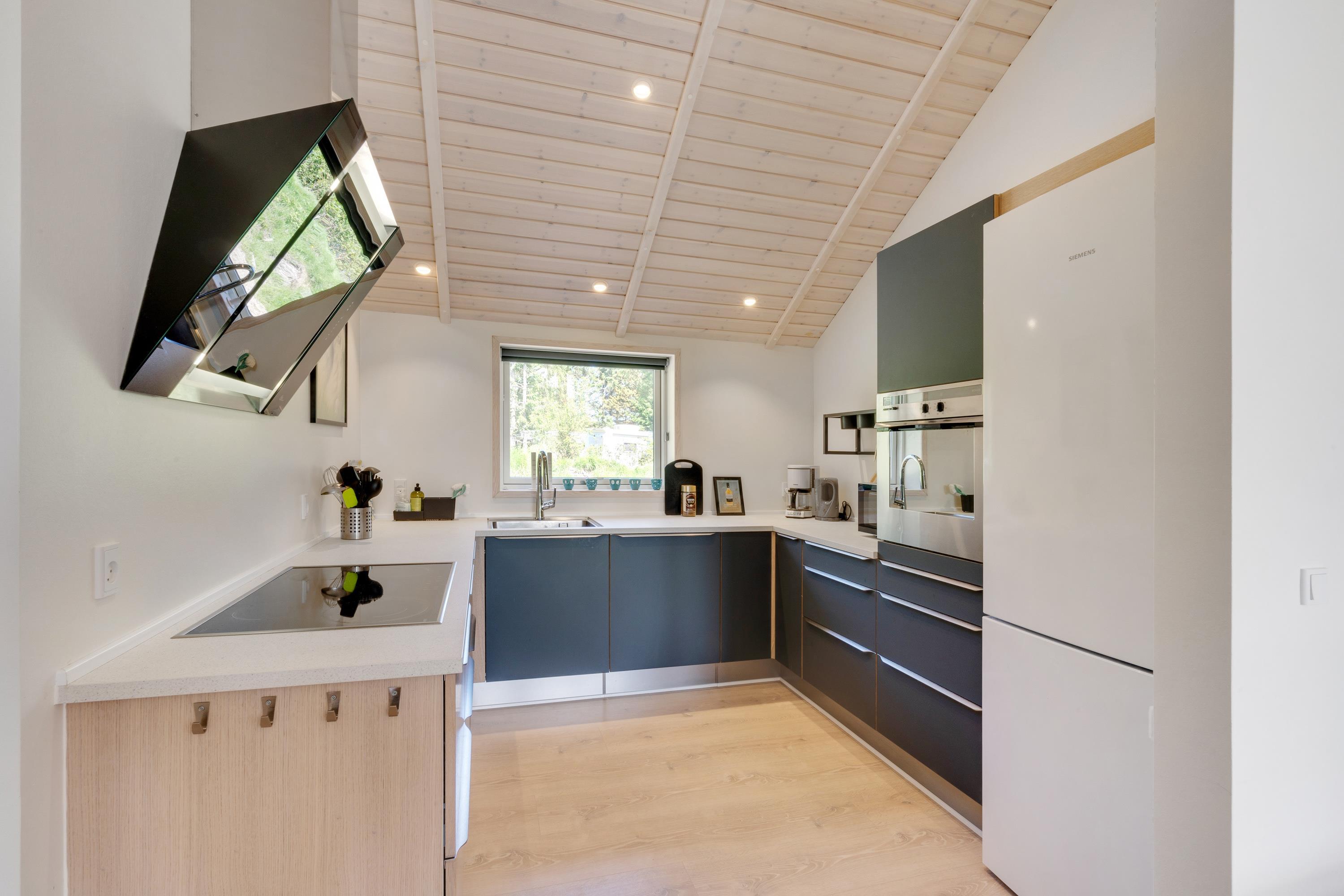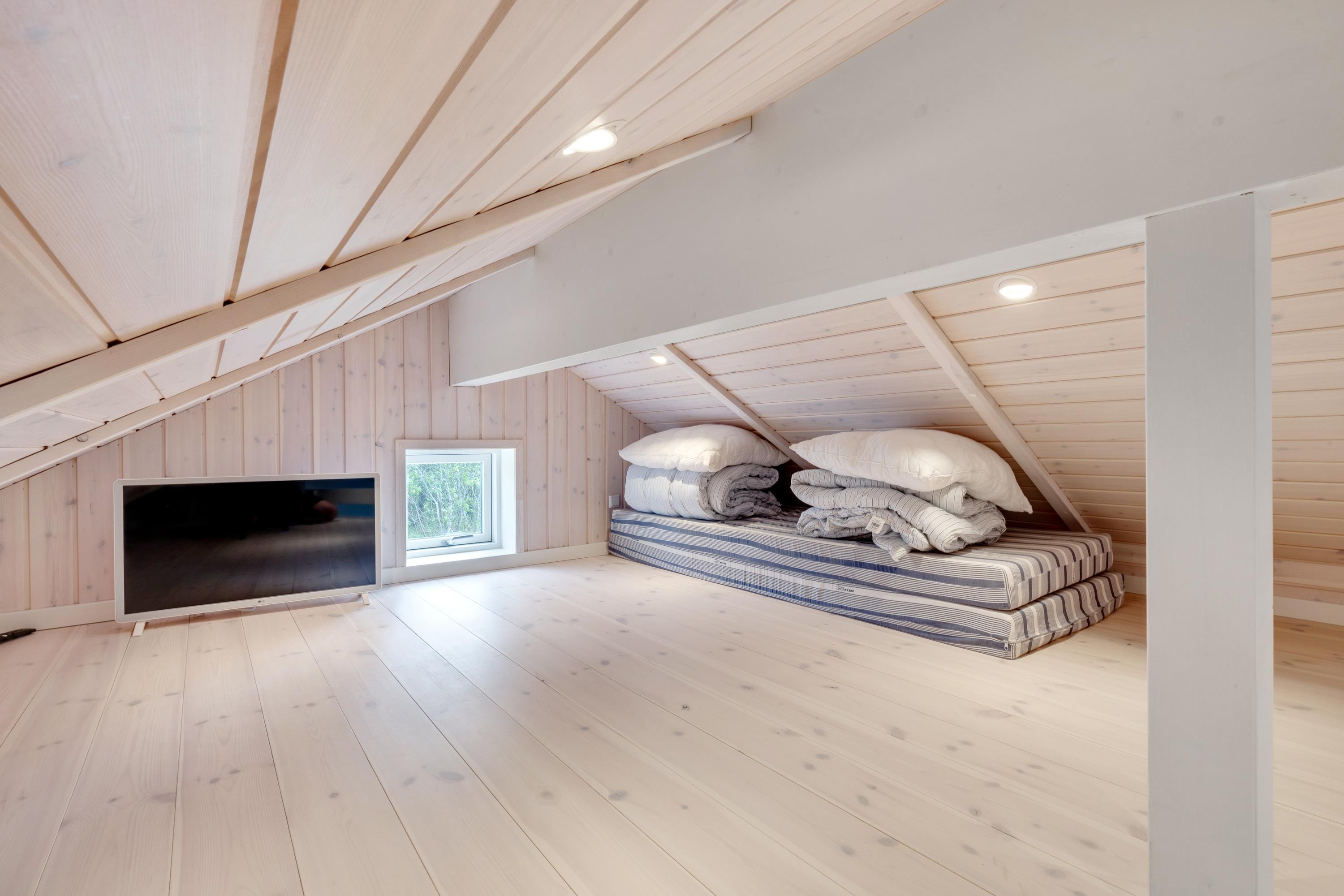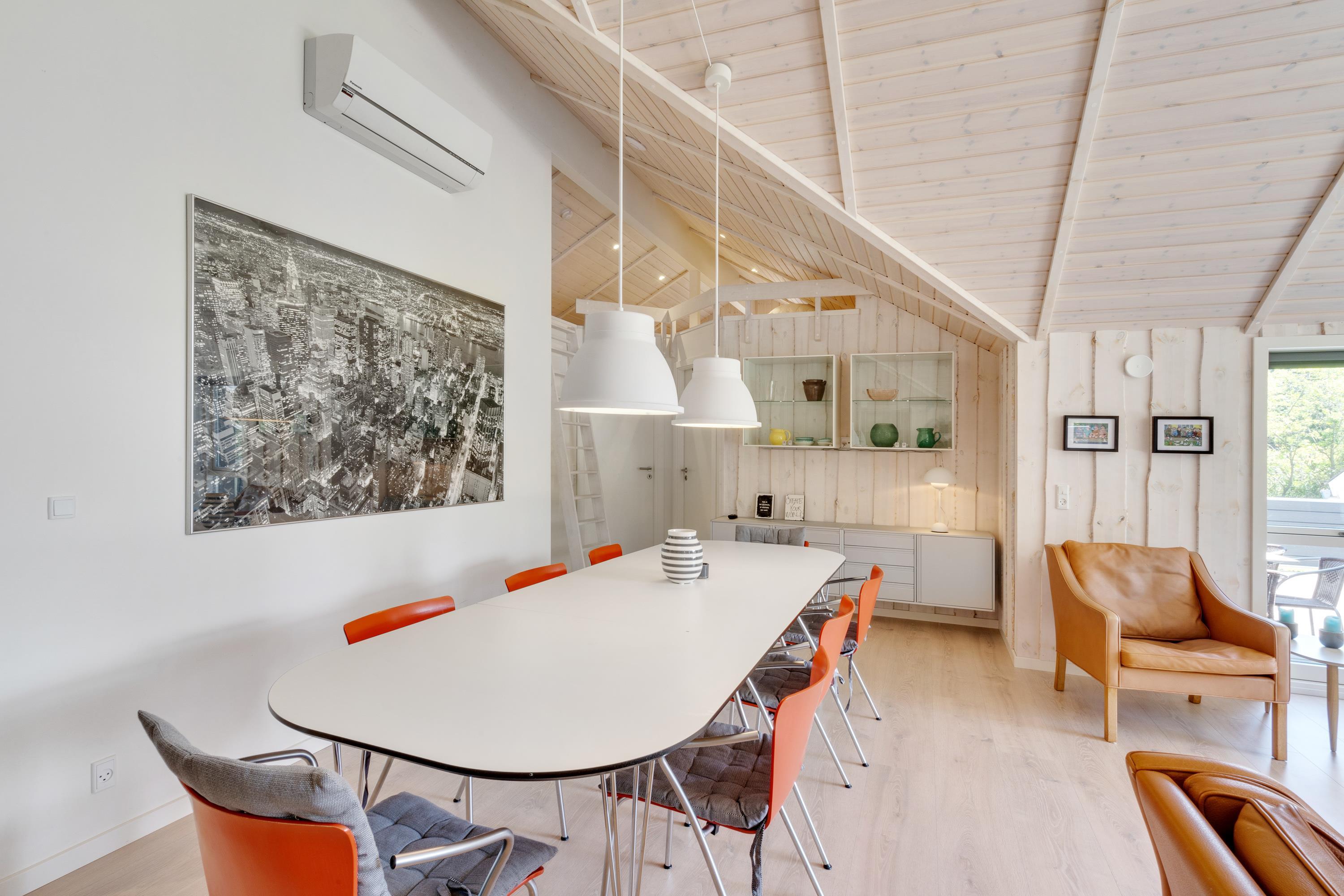 I kan også samles til hyggelige feriestunder i feriehusets alrum. I det store lyse rum med loft til kip kan I samles i sofaerne og se en god film eller gå sammen om madlavningen i køkkenet.