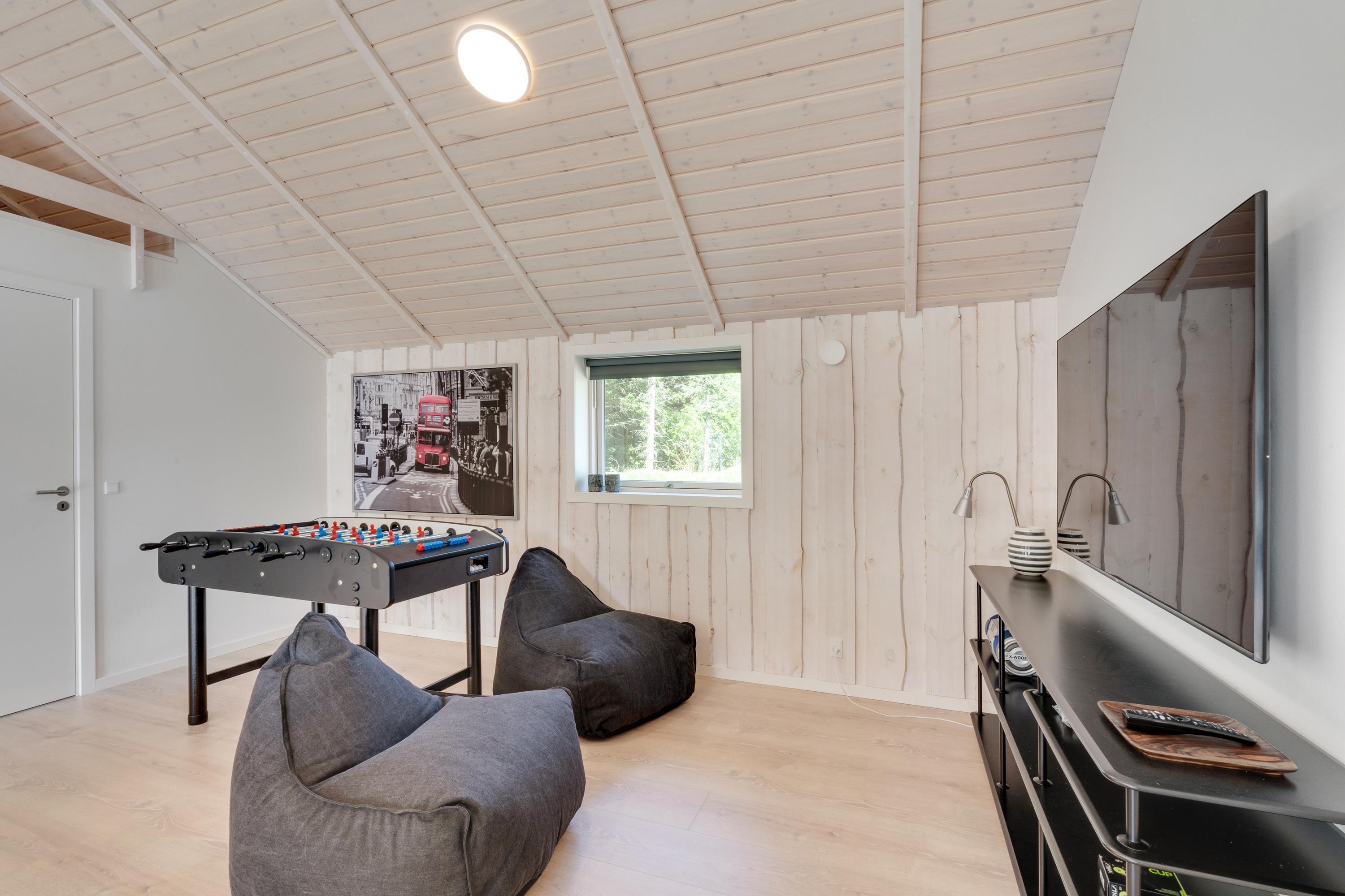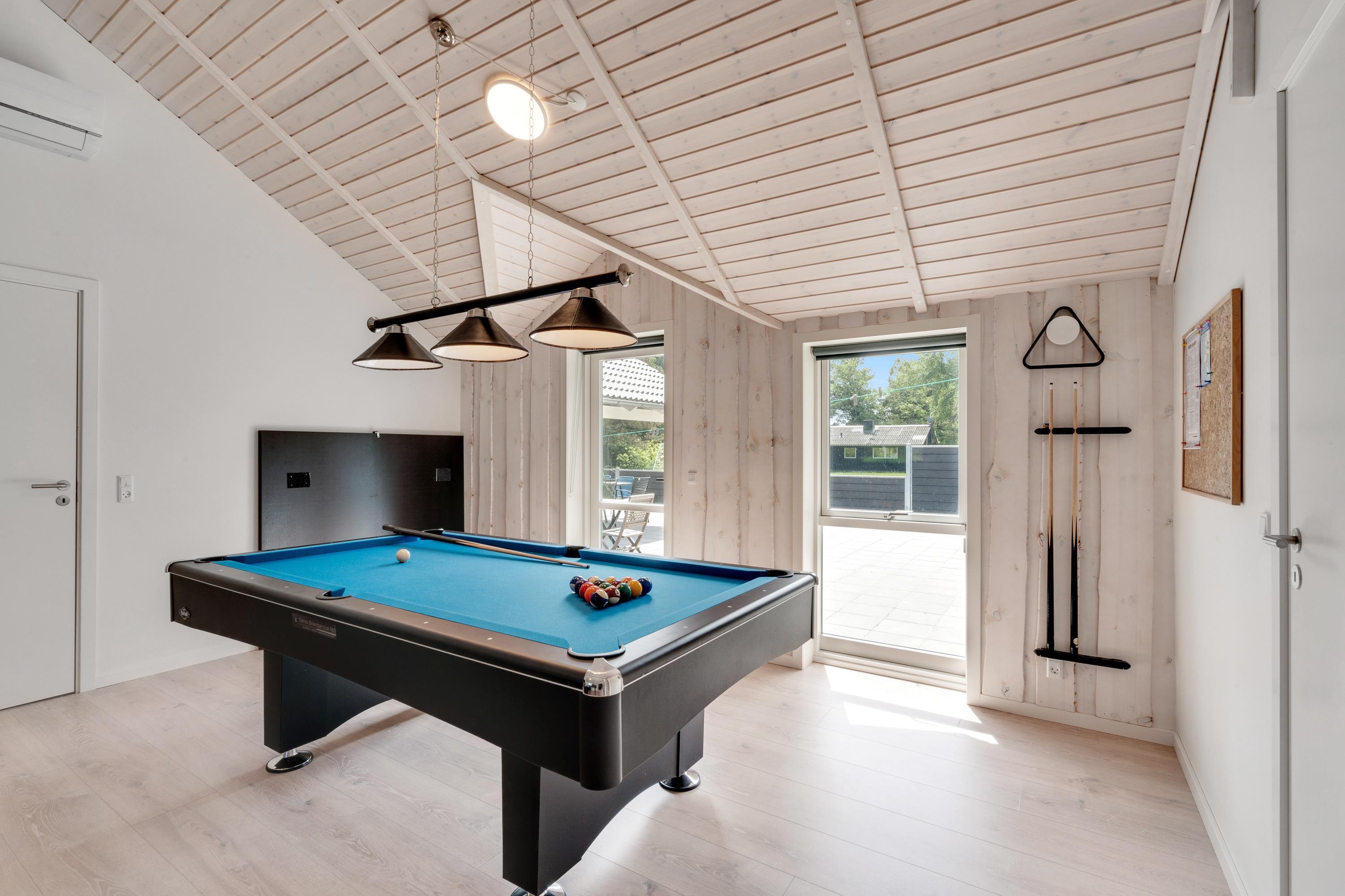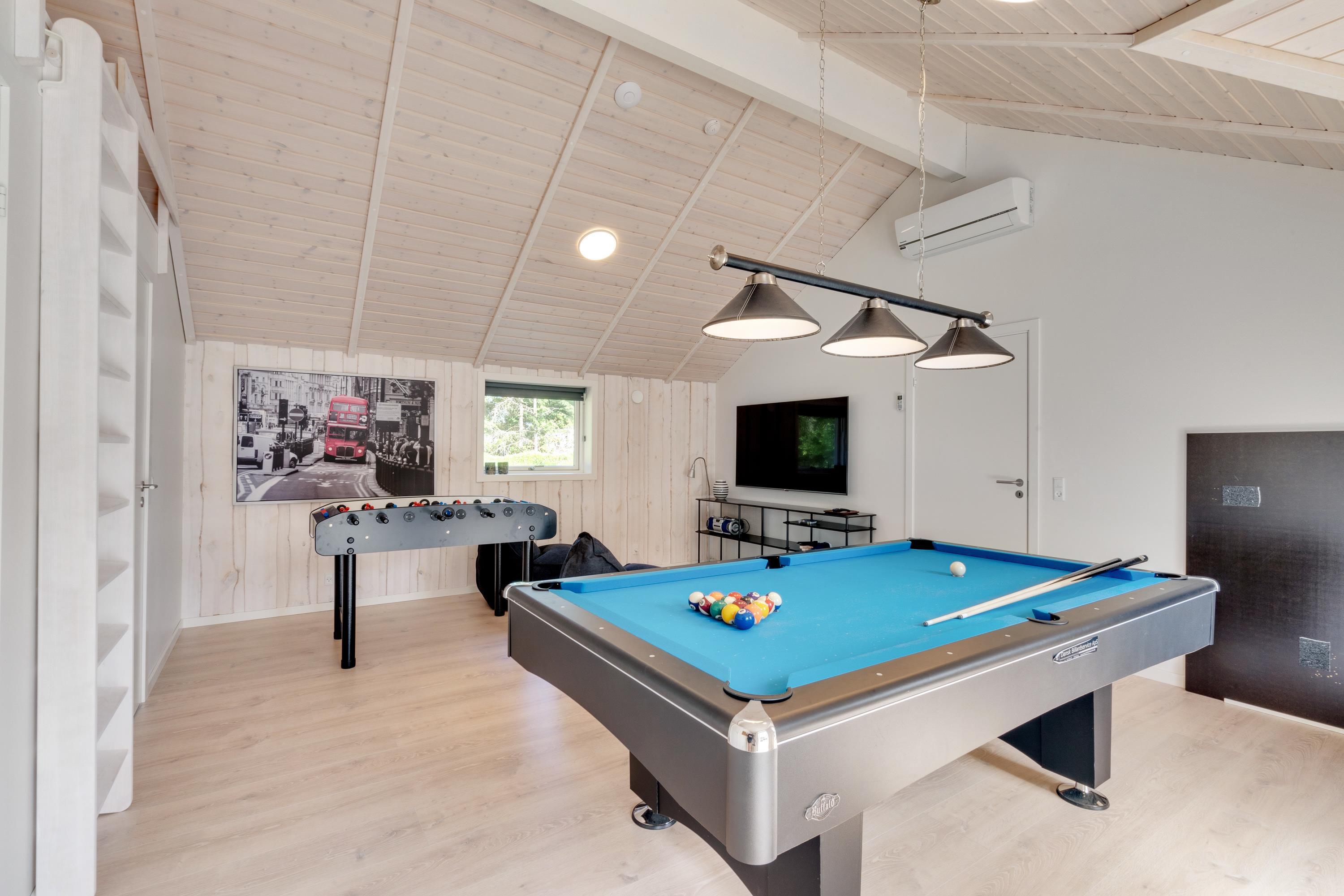 Det er ikke kun afslapning, der er i højsædet i sommerhuset. Her kan I nemlig også tilbringe mange sjove og underholdende stunder sammen i aktivitetsrummet, hvor I kan spille billard, bordtennis og bordfodbold – hvorfor ikke arrangere en aften med turneringer, snacks og kolde drikkevarer?