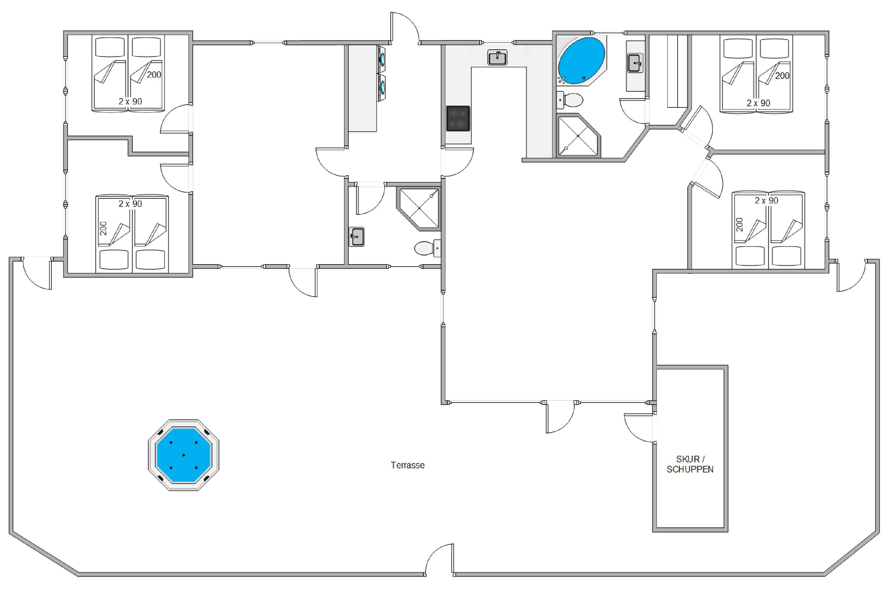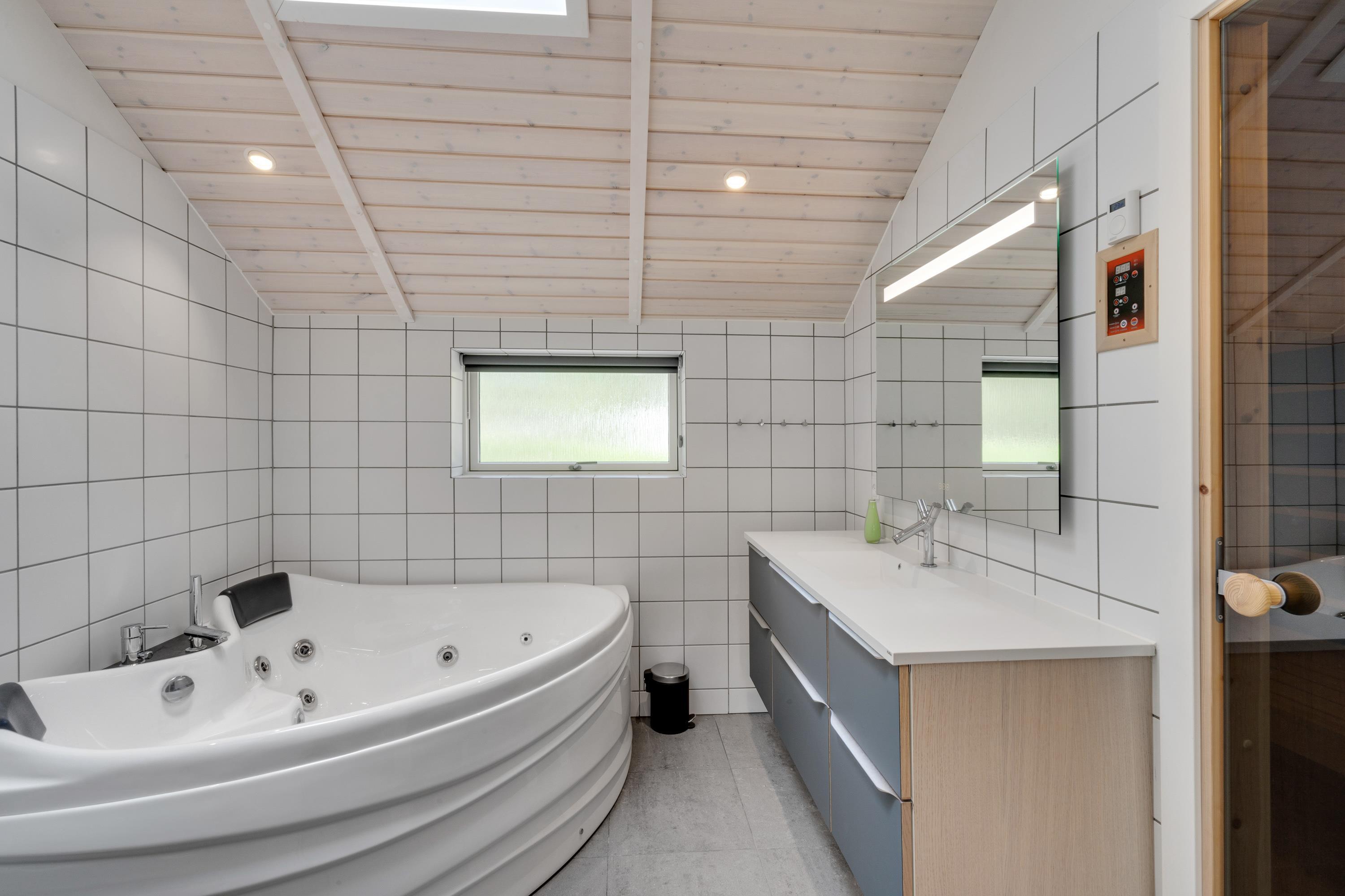 På jeres ferie skal I selvfølgelig kunne slappe af – og det har I virkelig mulighed for i dette skønne sommerhus. På det ene af sommerhusets badeværelser er der både spa og sauna, som I kan sætte jer til rette i, slappe fuldstændig af og få ladt batterierne op igen.