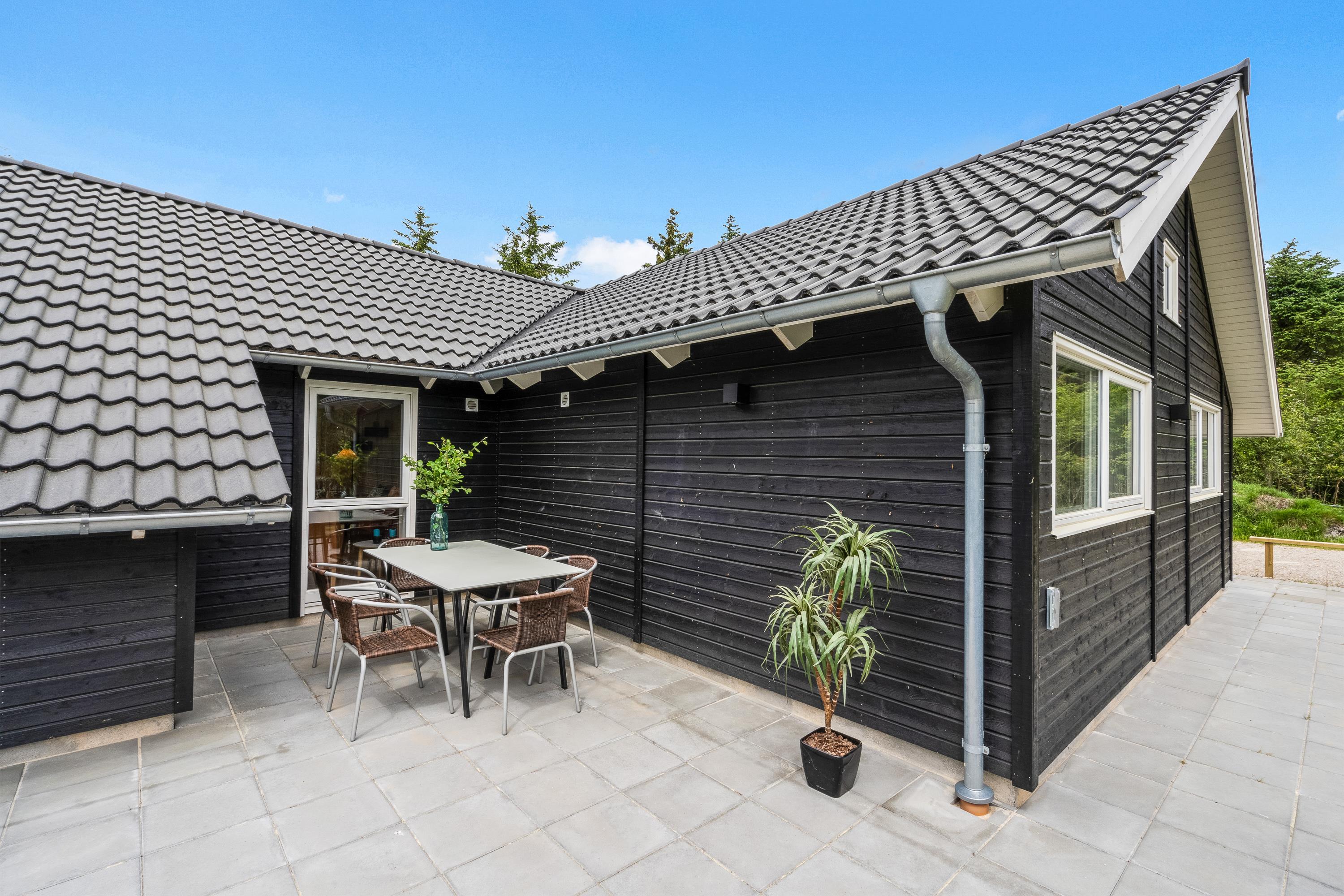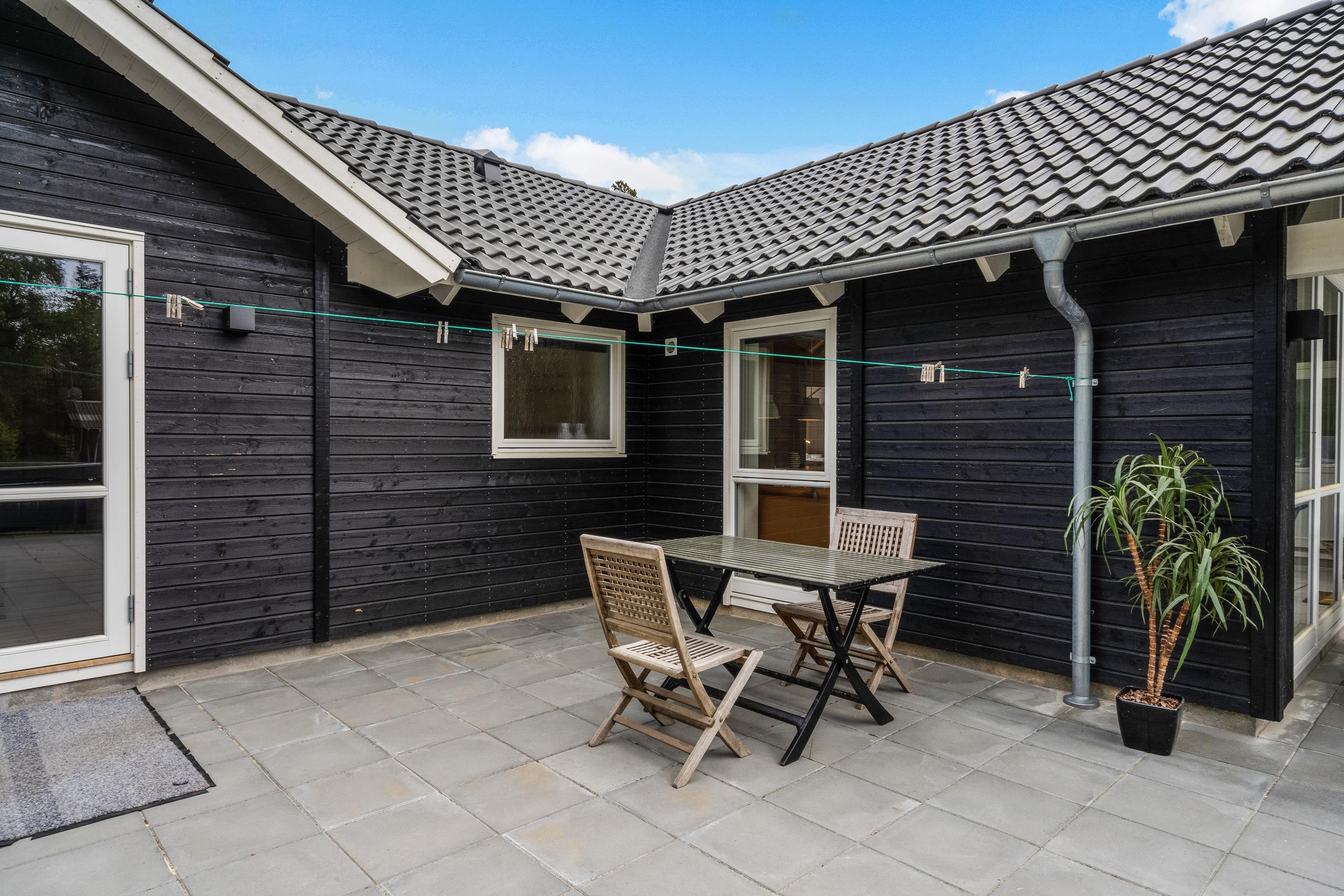 Sommerhuset har en lukket terrasse, der også er delvist overdækket. Terrassen er det perfekte sted at tilbringe feriens varme dage. Her kan I finde jer til rette i havemøbler og liggestole på en god plads i solen. I har også mulighed for at sidde i skyggen under terrassens overdækkede del.
