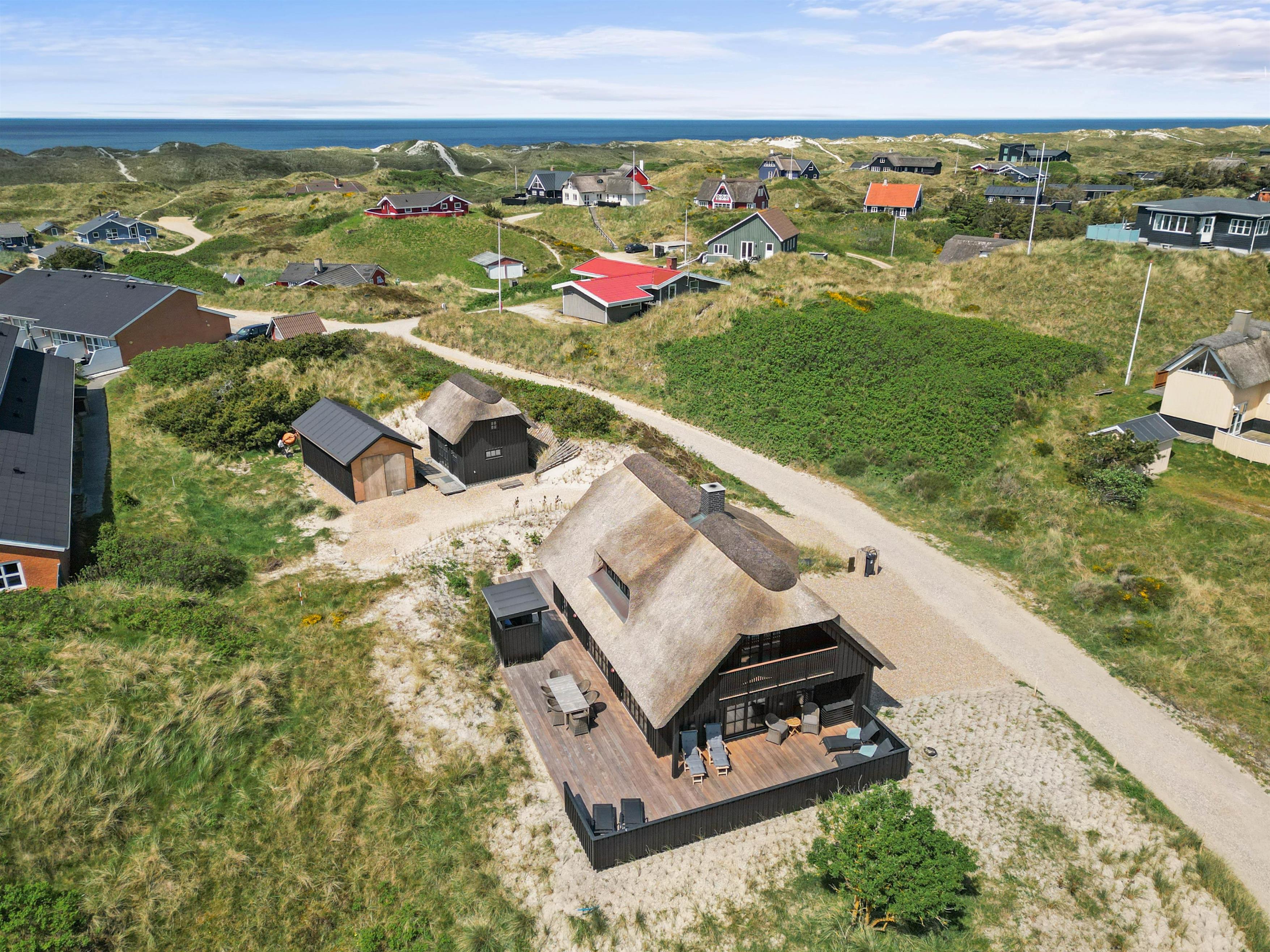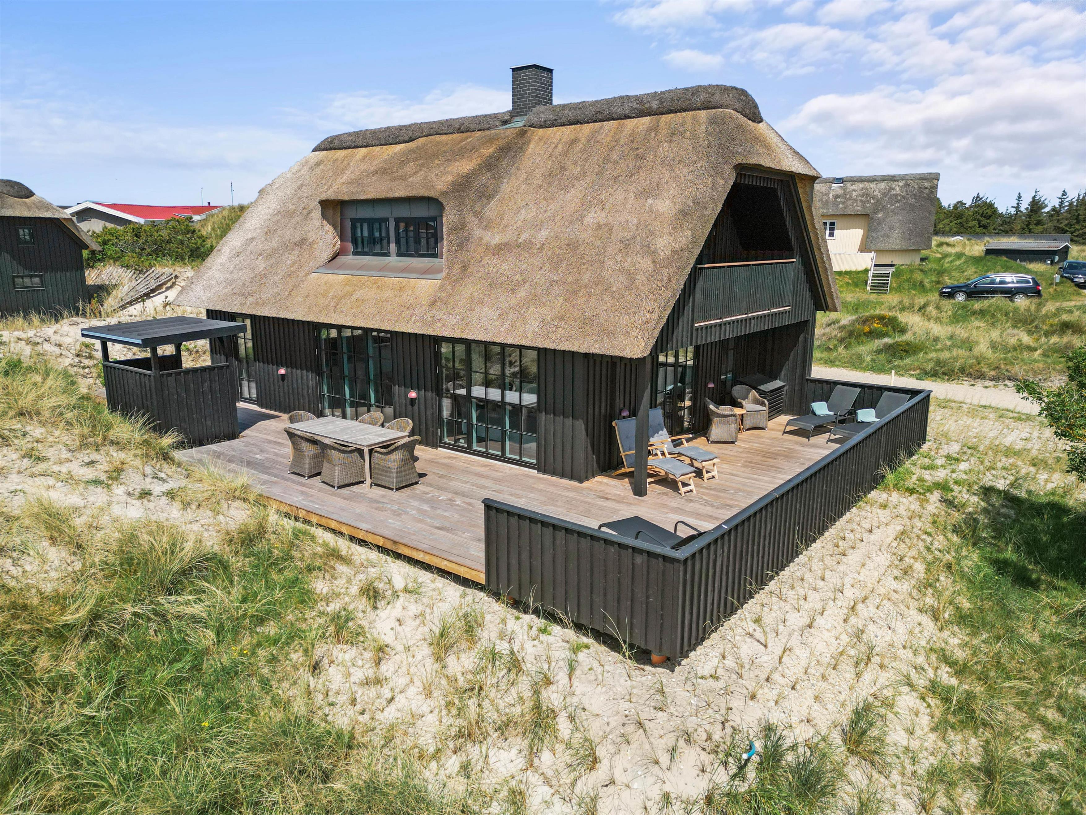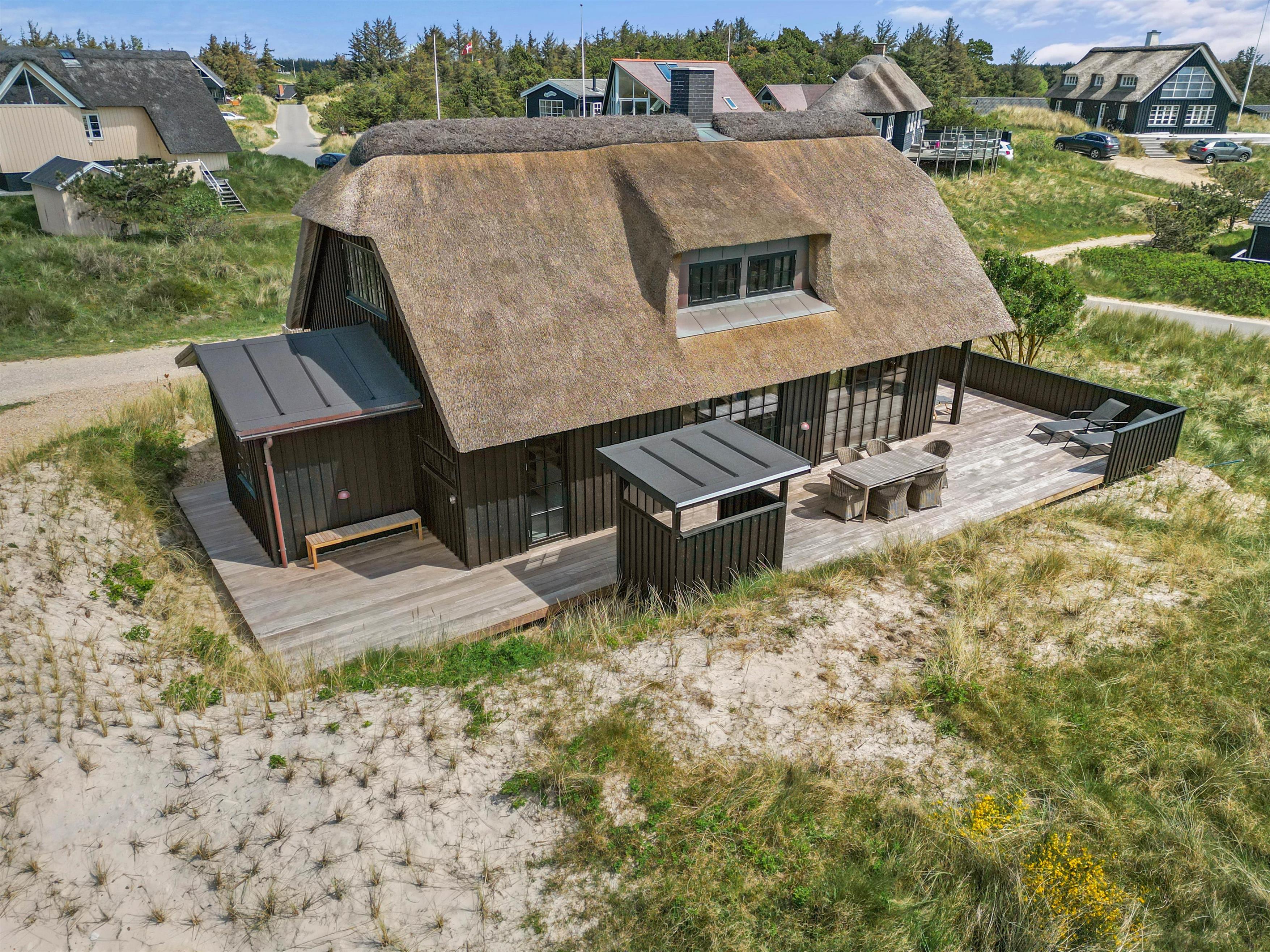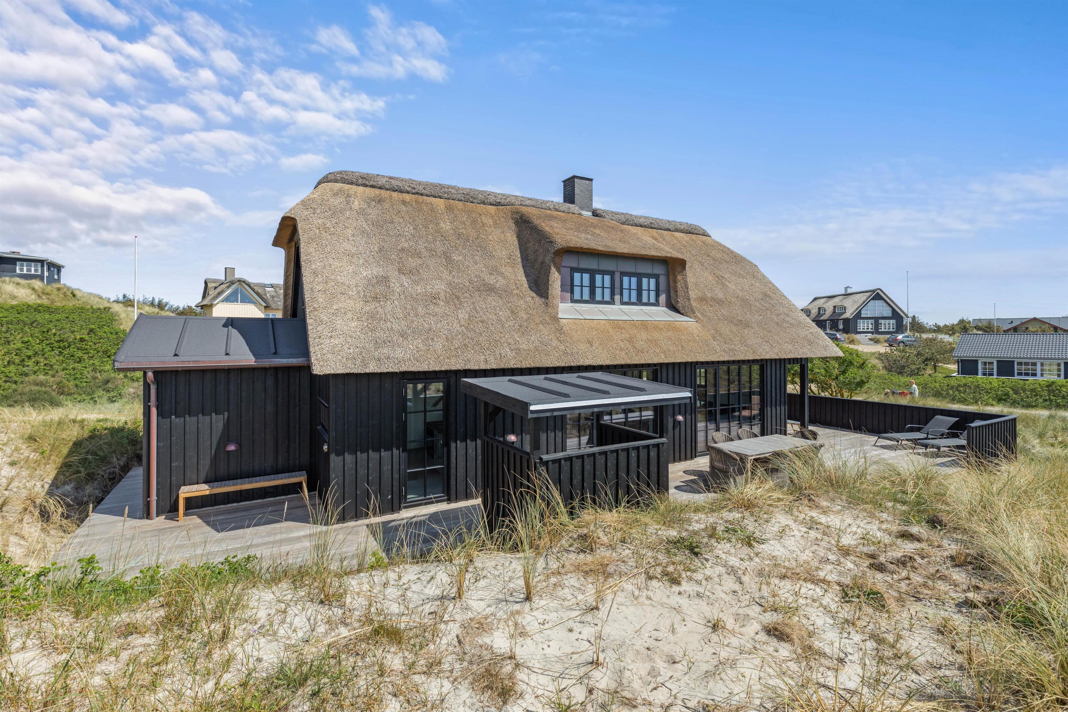 Kun 150 meter fra Vesterhavets brusende bølger og smukke sandstrande står dette femstjernede sommerhus klar til at byde jer inden for til jeres næste ferie. Her kan I holde en ferie for op til 8 personer, og dermed er dette nybyggede (2022) sommerhus på Nordvej 13 et oplagt valg, hvis I er en familie eller en vennegruppe.