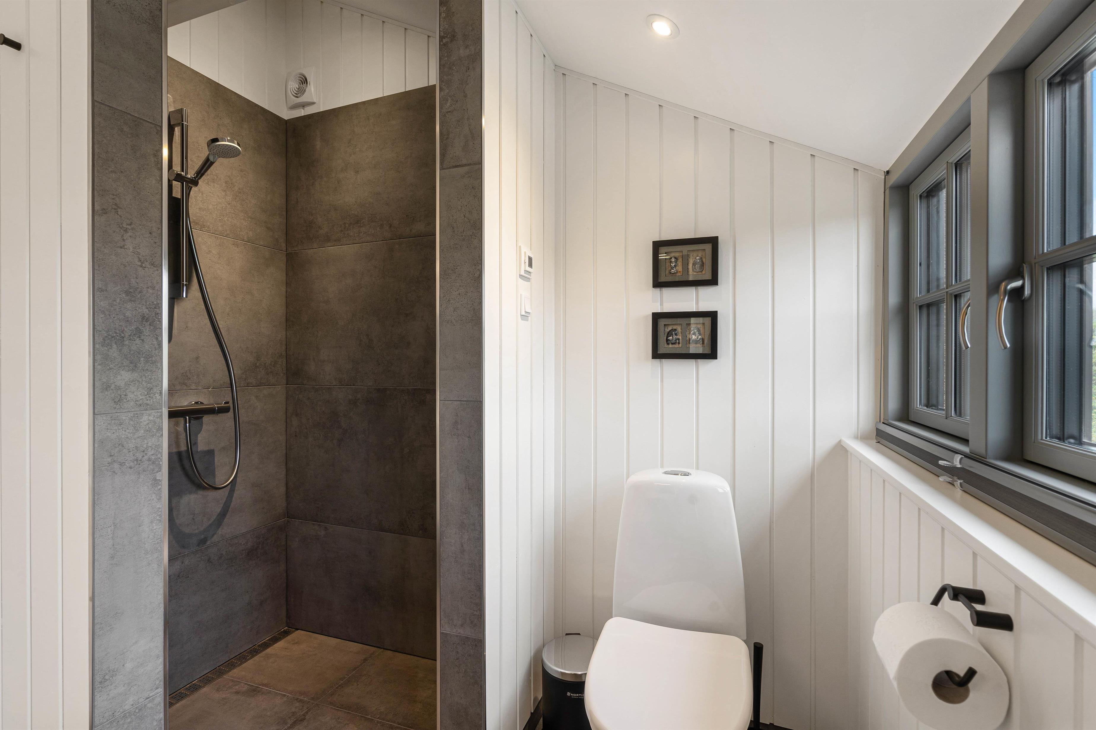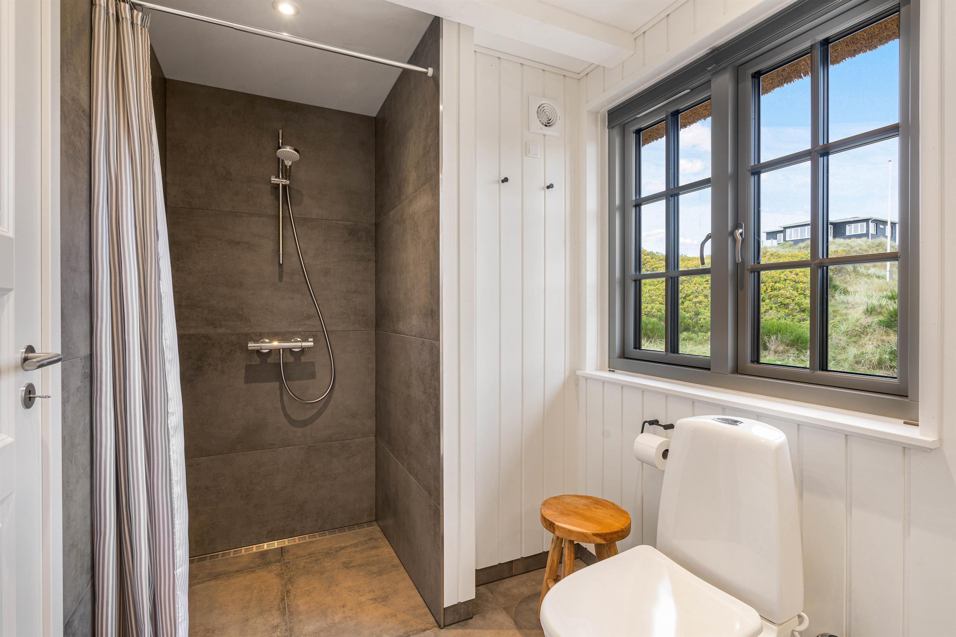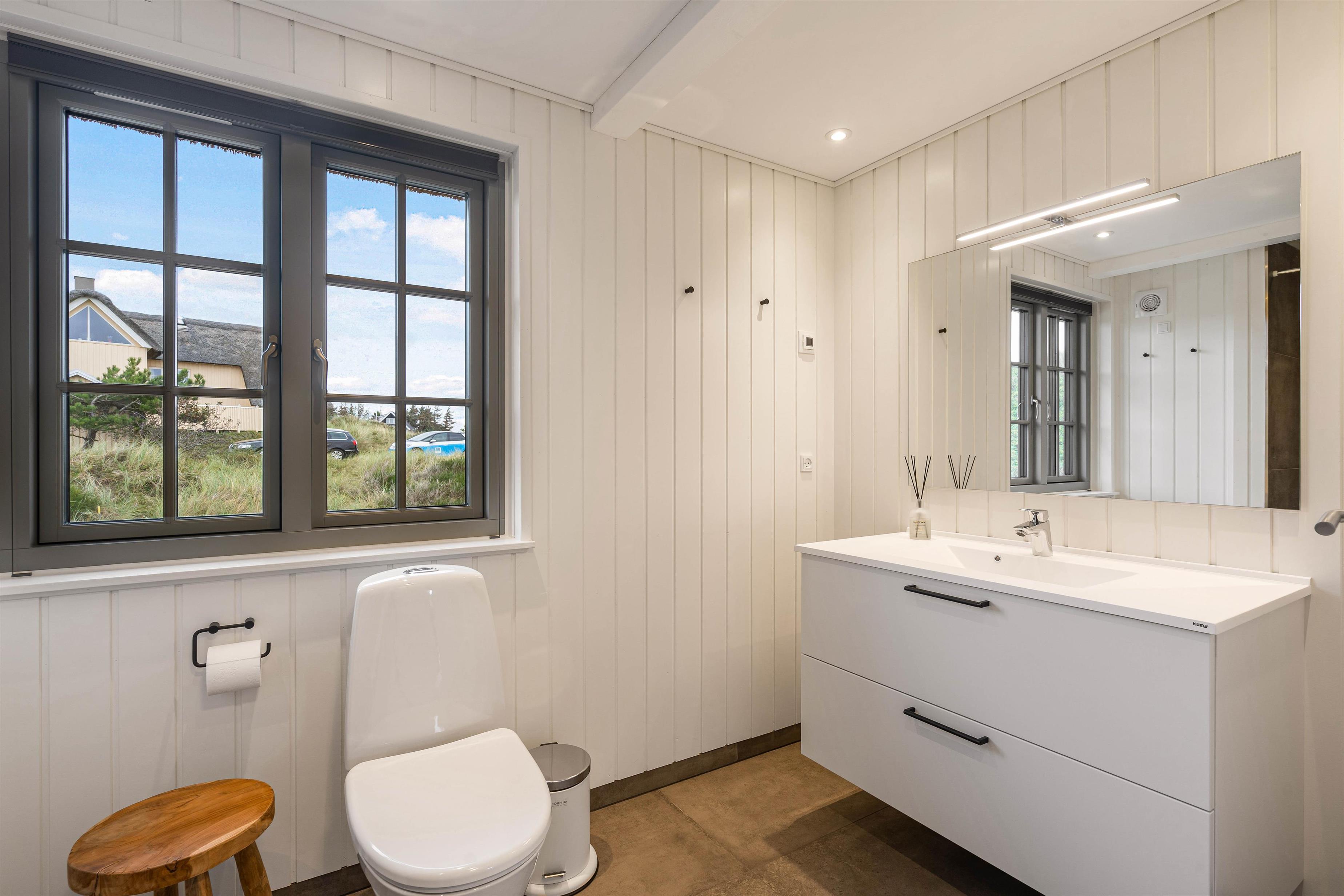 Sommerhuset har i alt 2 badeværelser, der begge er udstyret med gulvvarme. Derfor slipper I både for at skulle stå i kø og at fryse tæerne som det første, når I står op om morgenen.