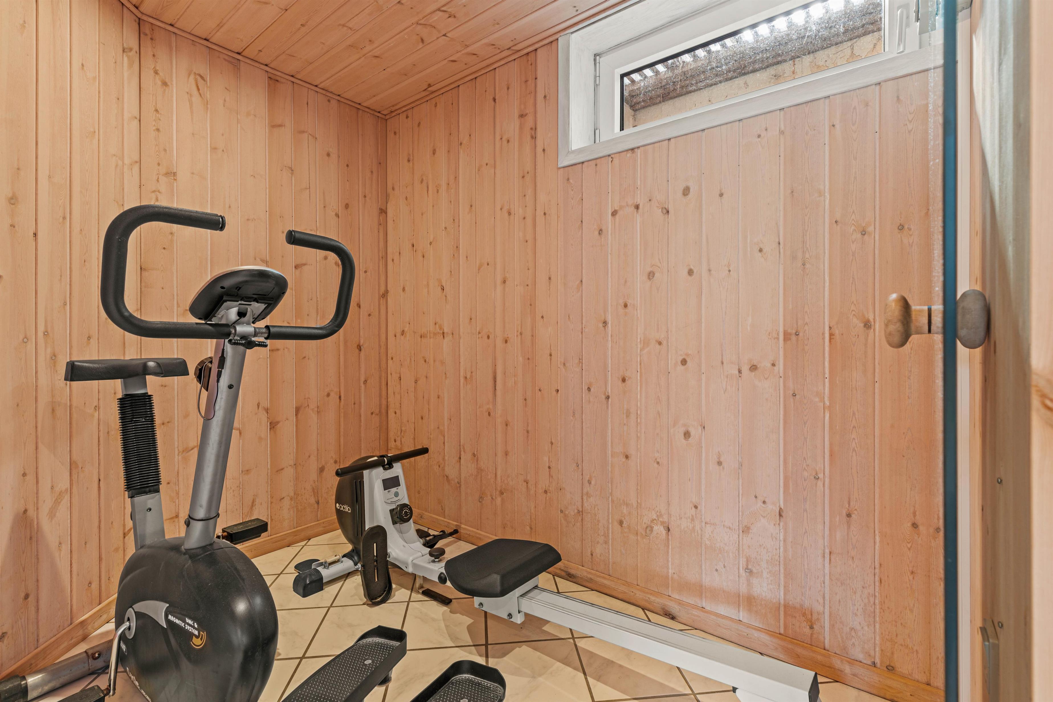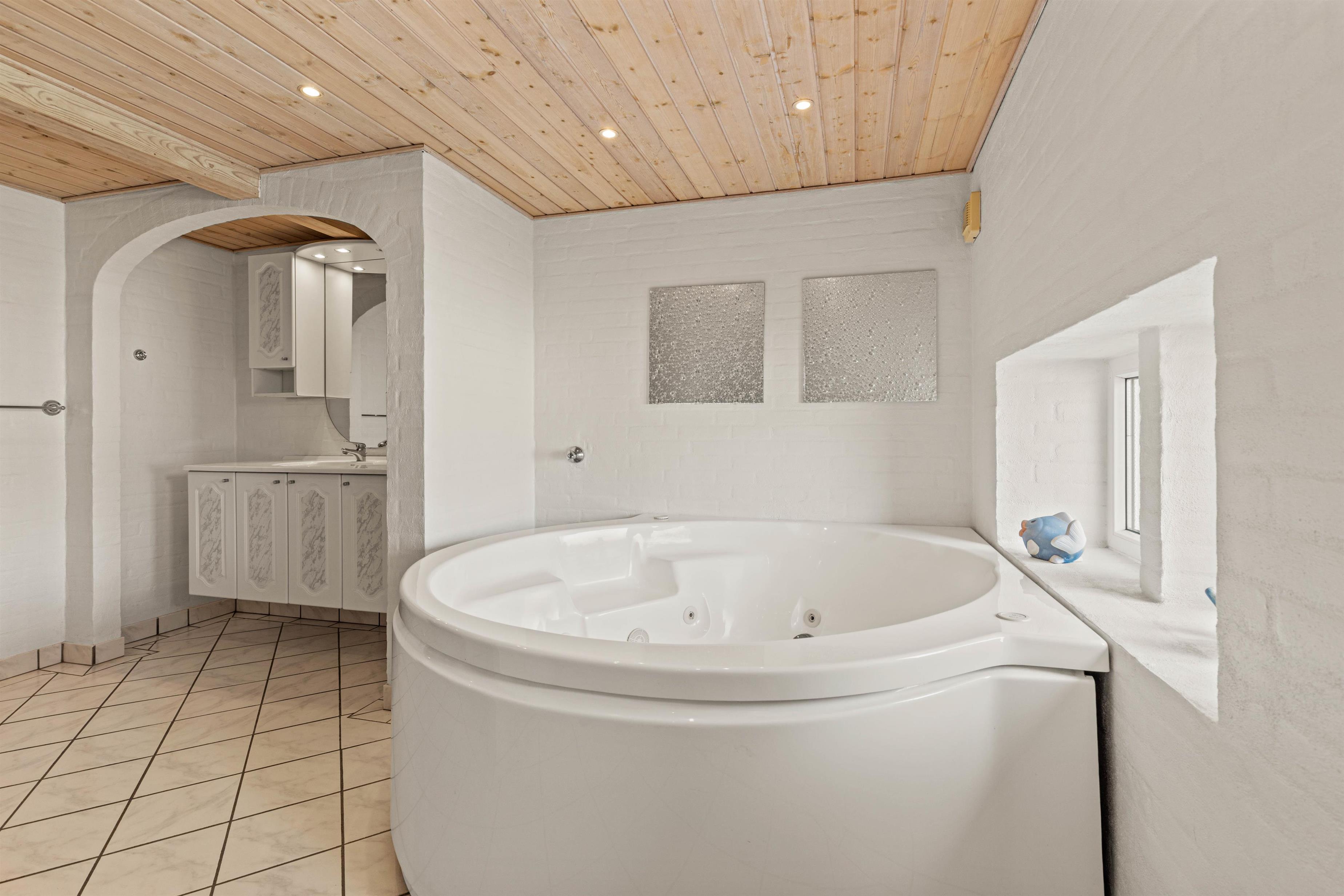 Med 125 m2 fordelt på 2 etager er her masser af plads til feriehygge med familien eller vennerne. De 3 soverum er dejligt store, 2 har dobbeltsenge og i det sidste er der 2 enkeltsenge. En dejlig luksus udgør de 2 badeværelser, som begge har gulvvarme – i det store badeværelse står der både sauna og spa.