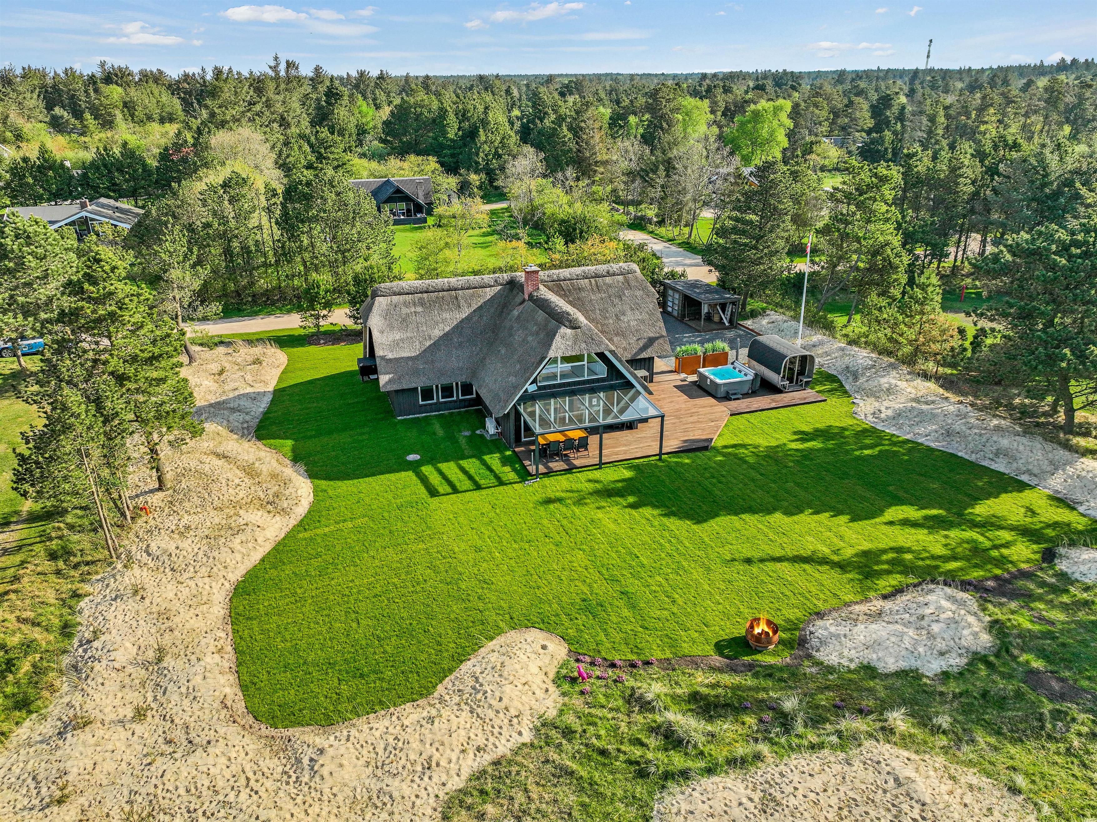 Velkommen på Aarrildsøvej 18 i Vejers Strand: Adressen, der garanterer dig en ferieoplevelse i særklasse. Det femstjernede sommerhus kombinerer topmoderne faciliteter som swimmingpool, udendørs spabad og saunatønde med en førsteklasses beliggenhed ud til et åbent engområde – med jævnligt visit fra områdets majestætiske krondyr.