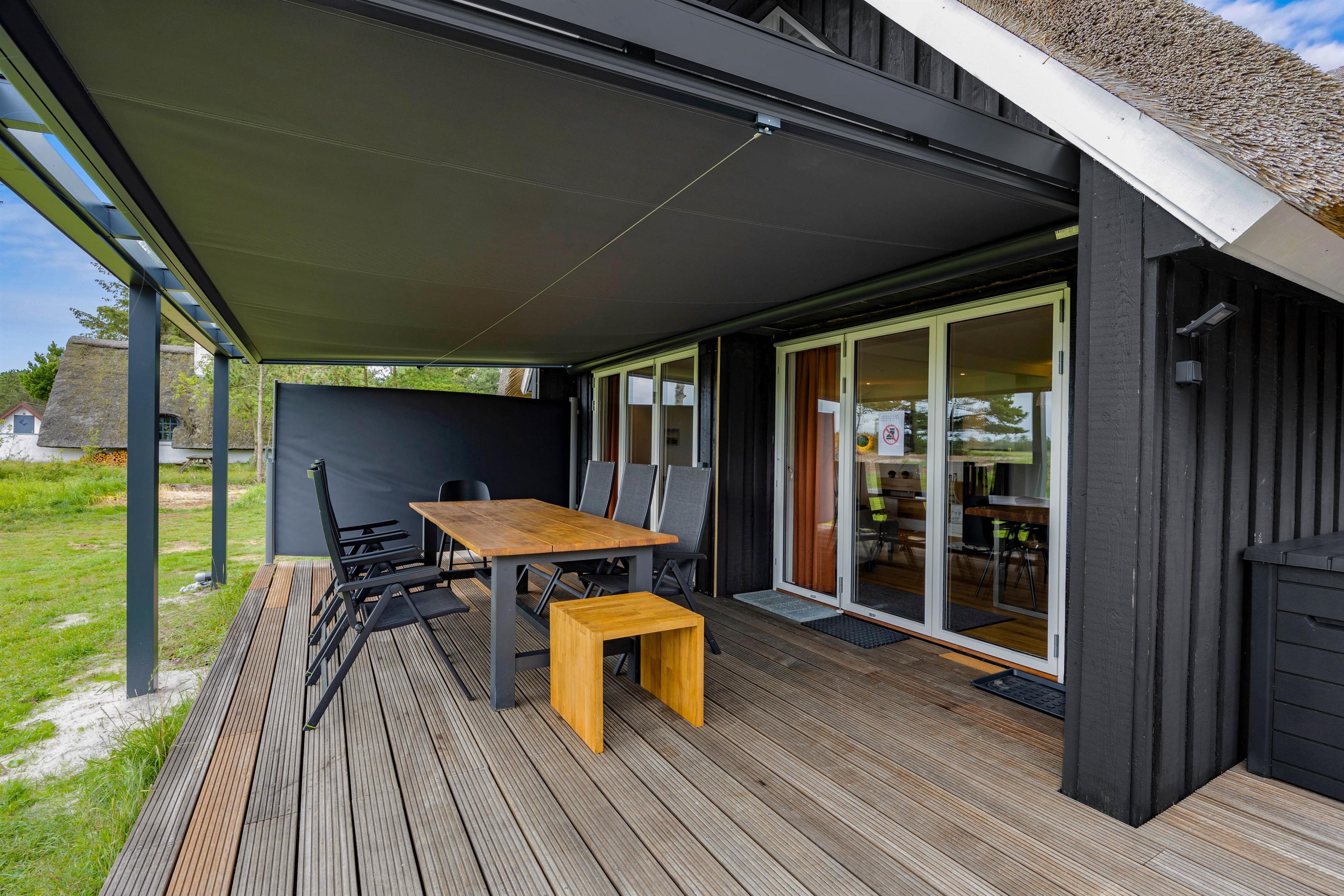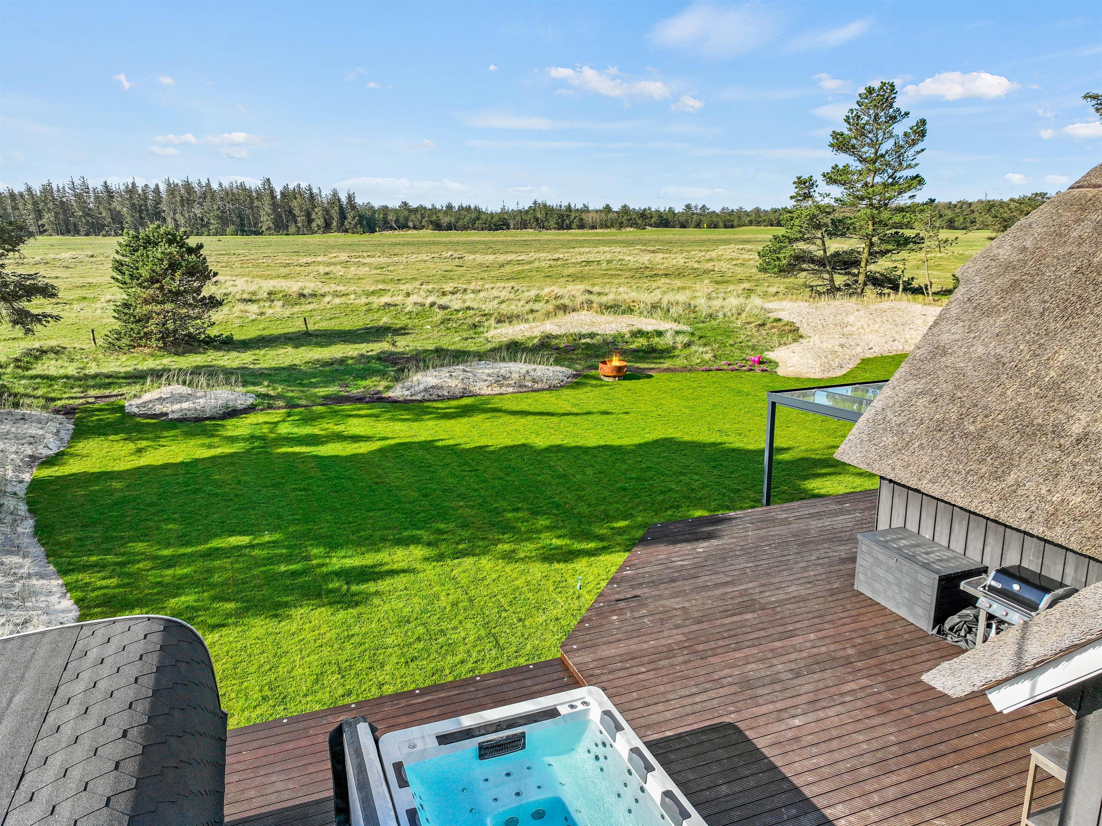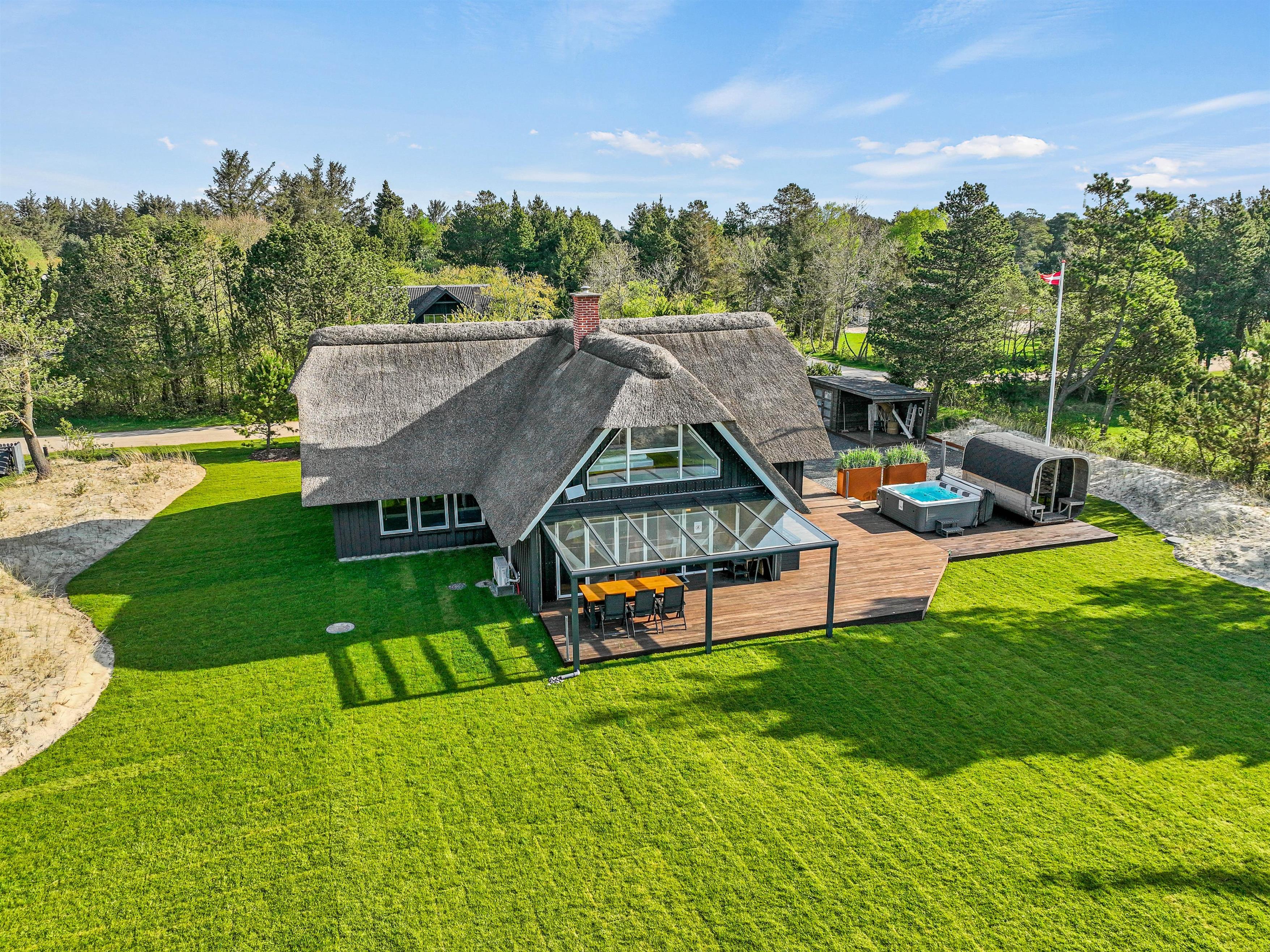 Det er ikke kun sommerhusets indre, der imponerer. Der er også fulgt op på den luksuriøse atmosfære i udearealet. Først og fremmest står et udendørs spabad – også med egen energieffektiv varmepumpe – og en saunatønde klar til at give jer uforglemmelige wellnessoplevelser med Vejers’ rolige naturomgivelser som kulisse.