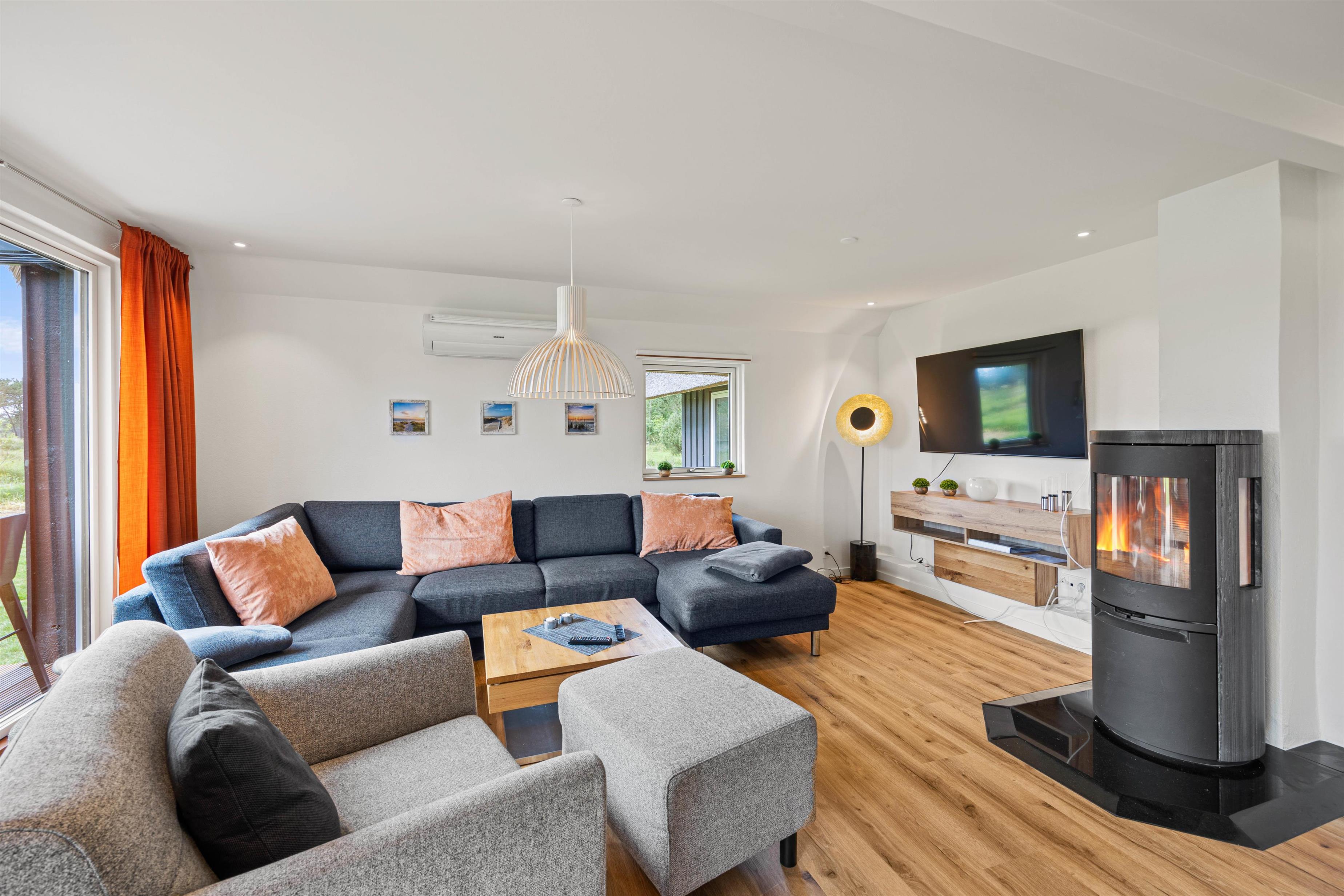 Det er ikke til at tage fejl af, når du træder ind ad døren på Aarrildsøvej: Her er tale om et nyrenoveret feriehus i tiptop-stand. Der er kræset for kvalitet såvel som detaljer i indretningen, og med plads til 6 personer (og op til 2 husdyr) er rammerne sat for en luksuriøs ferie i Vejers’ naturskønne omgivelser.