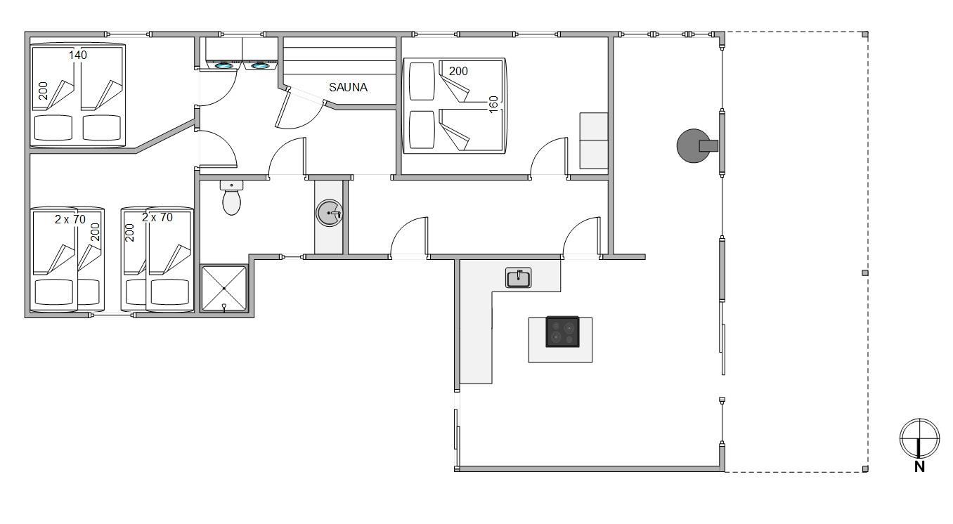 Desuden byder huset på en sauna og en udendørs bruser (til rådighed april til november) for ekstra komfort.