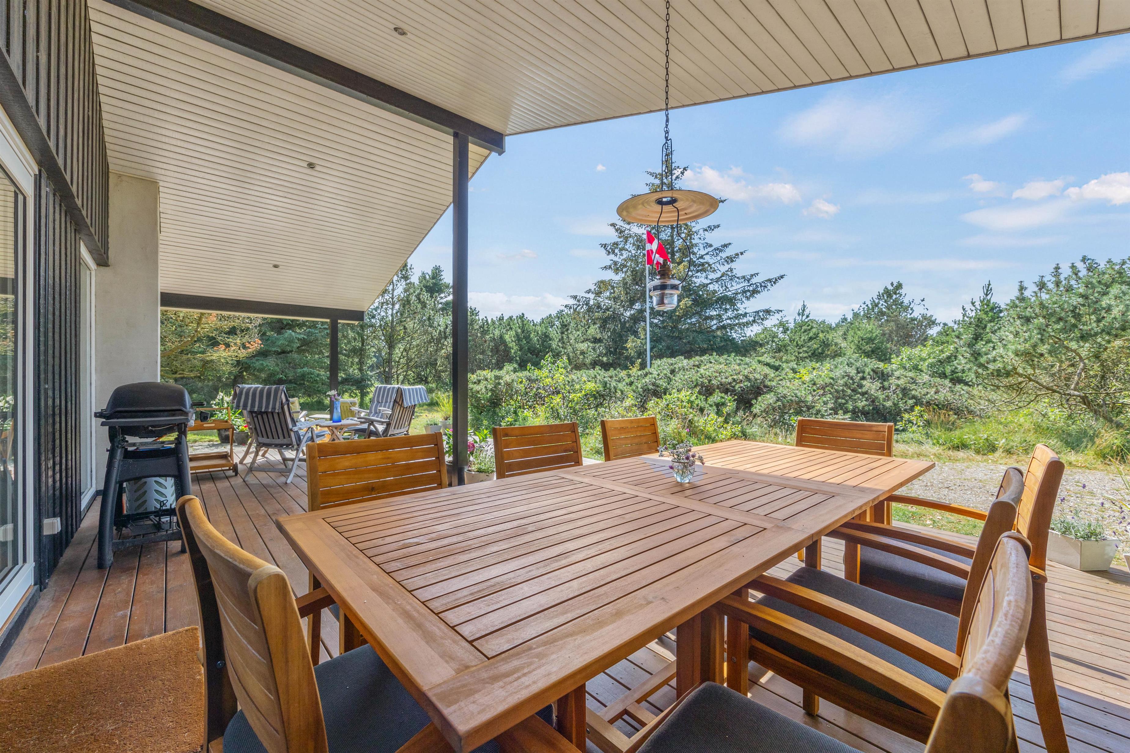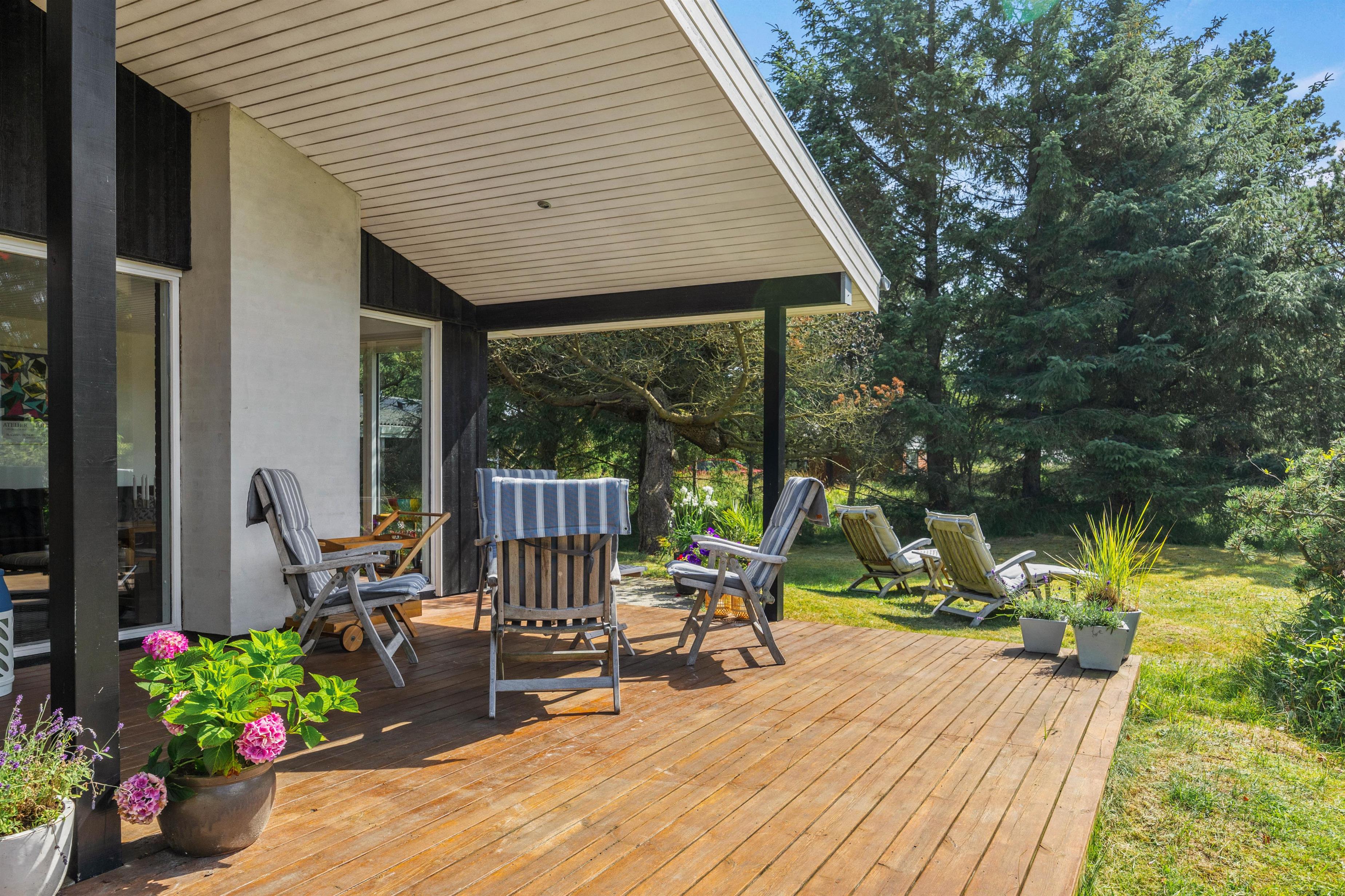 På den 1540 m² store grund er der masser af plads til afslapning og friluftsaktiviteter, og den afskærmede og overdækkede terrasse inviterer til afslappende timer under åben himmel. I kan benytte grillen og slappe af på havemøblerne i skønt selskab.