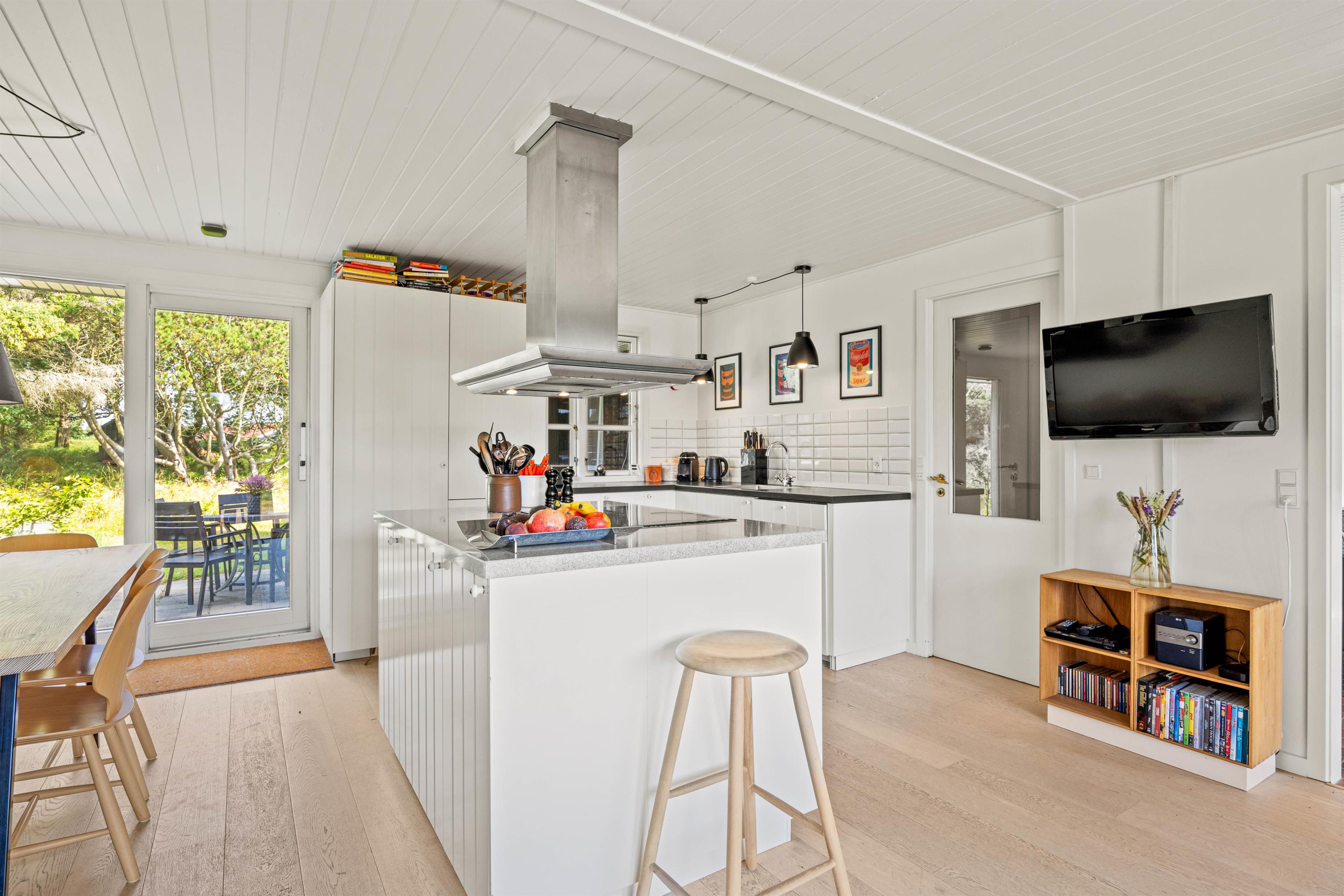 Det veludstyrede køkken har alt, hvad I har brug for, også en rummelig fryser på 60 L til jeres madvarer og en opvaskemaskine, så I slipper for opvasken.