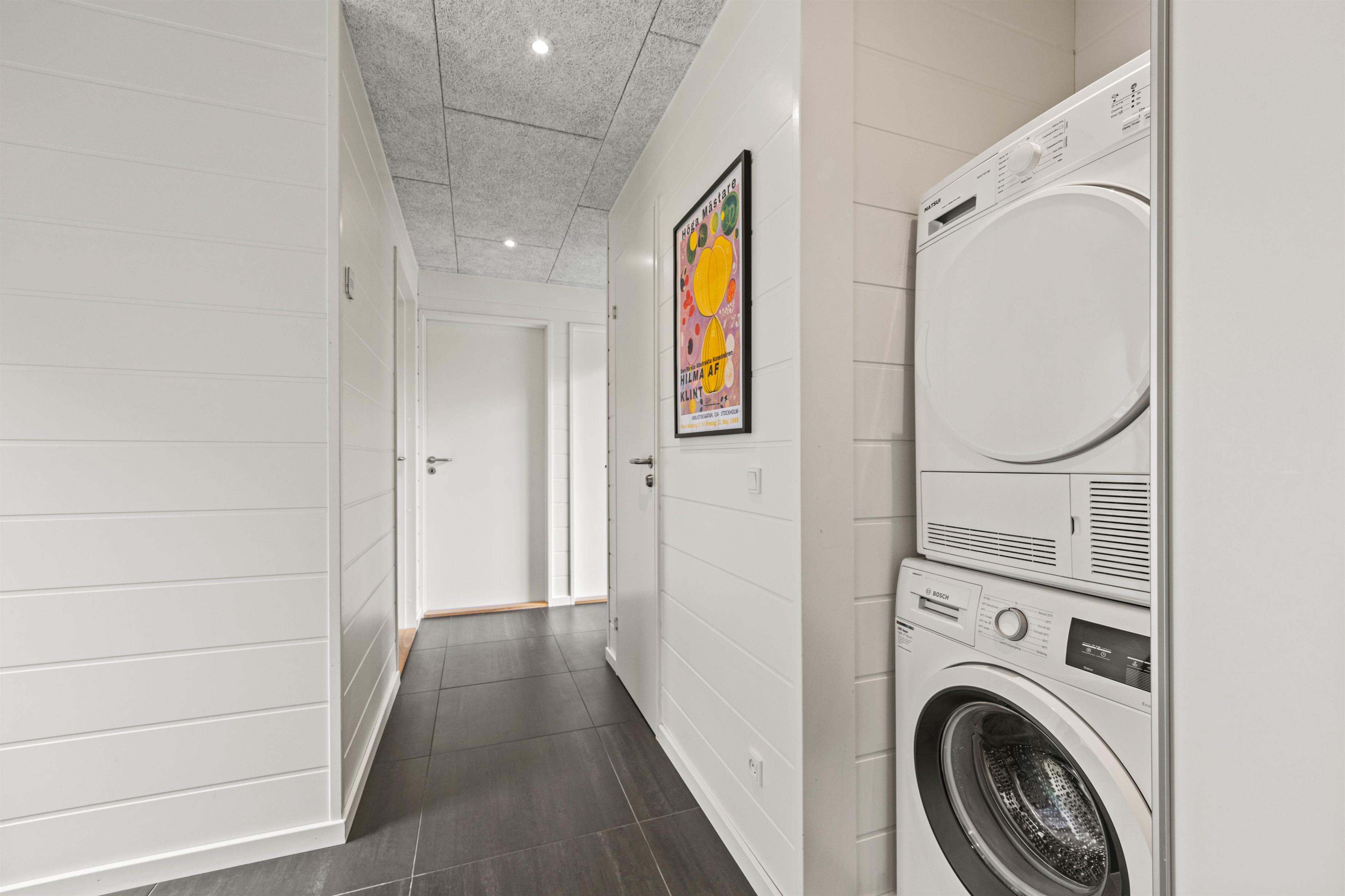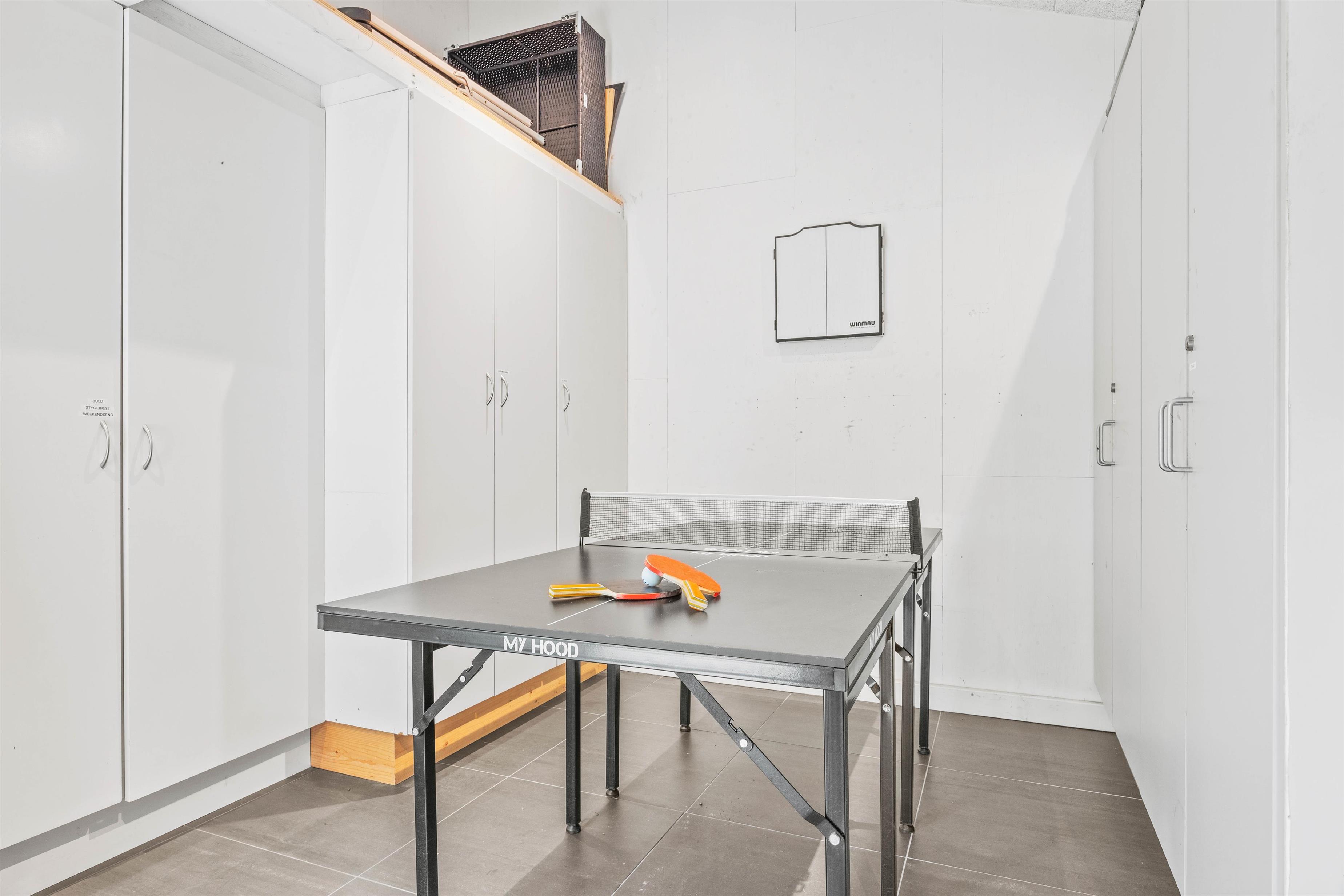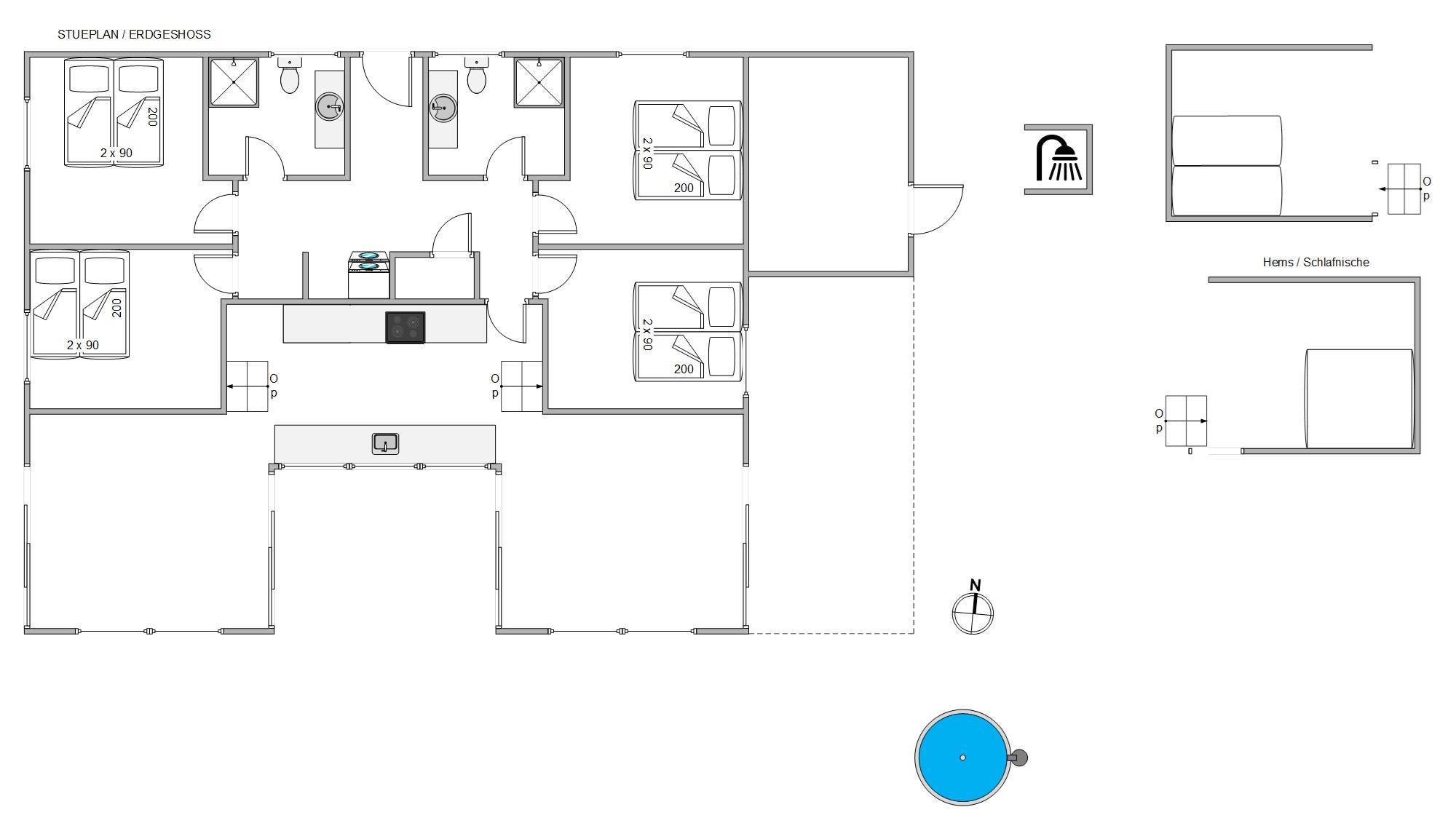 Hjerterummet er det åbne opholdsrum, hvor opholdsstuen, køkken og spisestuen smelter sammen. Et skønt rum med en stilren indretning, et fantastisk lysindfald og god plads til hele familien - uanset om der skal hygges i sofaen, holdes brætspilsaften eller noget tredje. Ligesom i resten af feriehuset er her også gulvvarme samt en varmepumpe. Fra køkkenet er der stiger op til hemsene, og bagerst i feriehuset findes et aktivitetsrum med bordtennisbord. Her kan I nyde mange sjove stunder og finde feriens bordtennismester.
