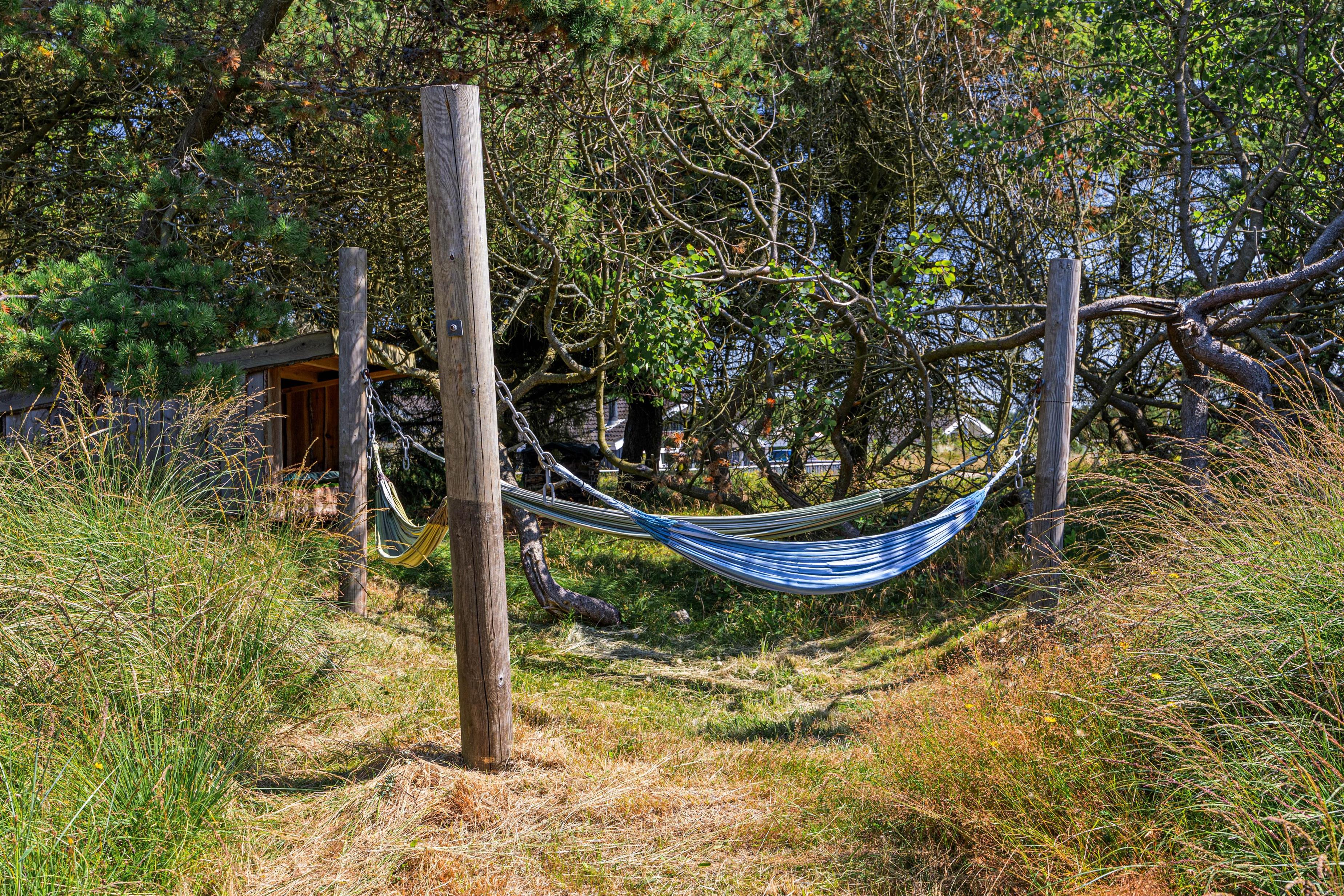Udenfor venter jer også et varmt vildmarksbad, der indbyder til afslapning efter en dejlig gåtur og brug gerne udebruseren til en frisk afkøling i sommerhalvåret (april til november). Tænd op og mærk det varme vand, mens stjernerne blinker på himlen. Ydermere er der et hyggelige område med hængekøjer.