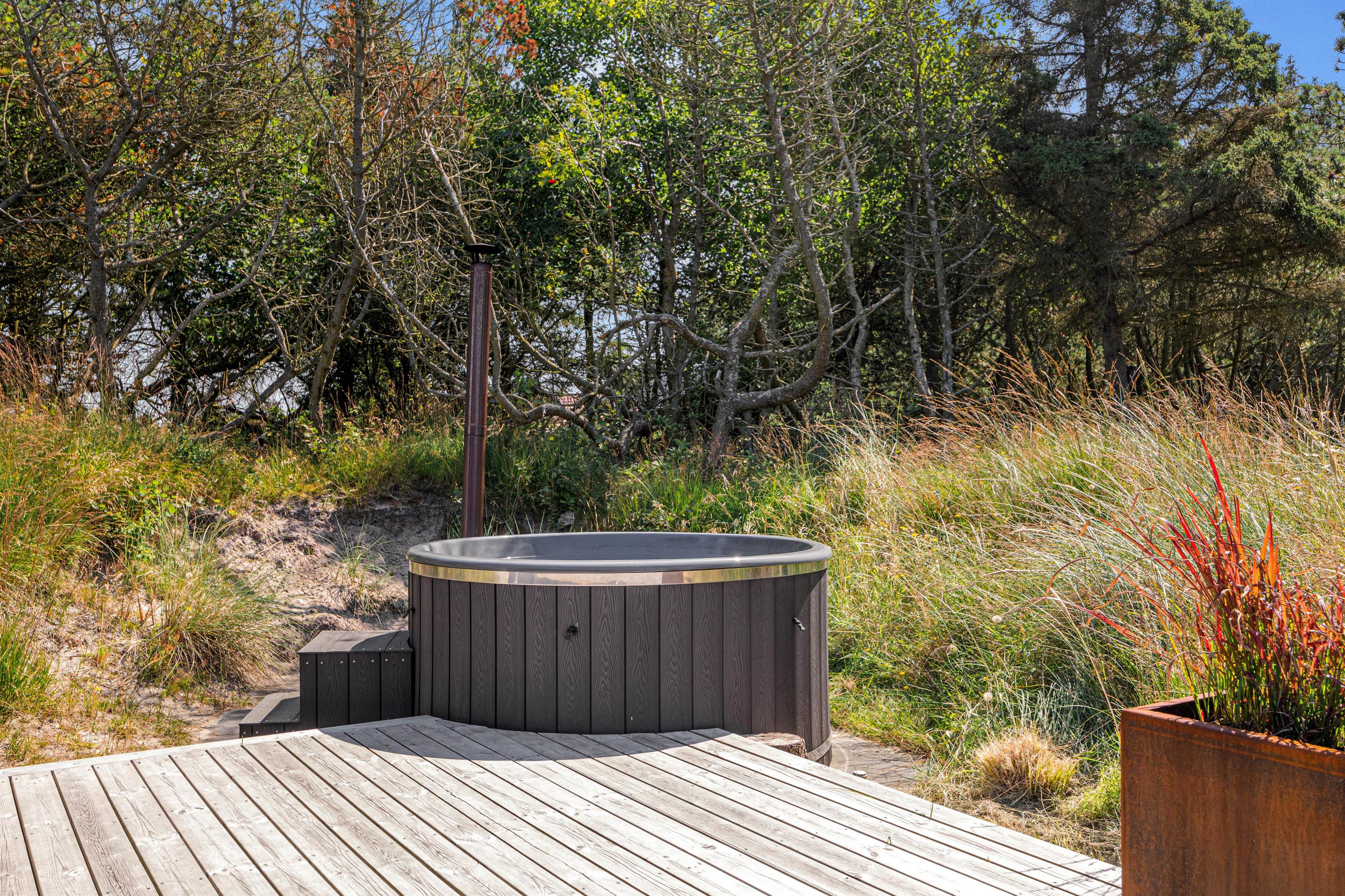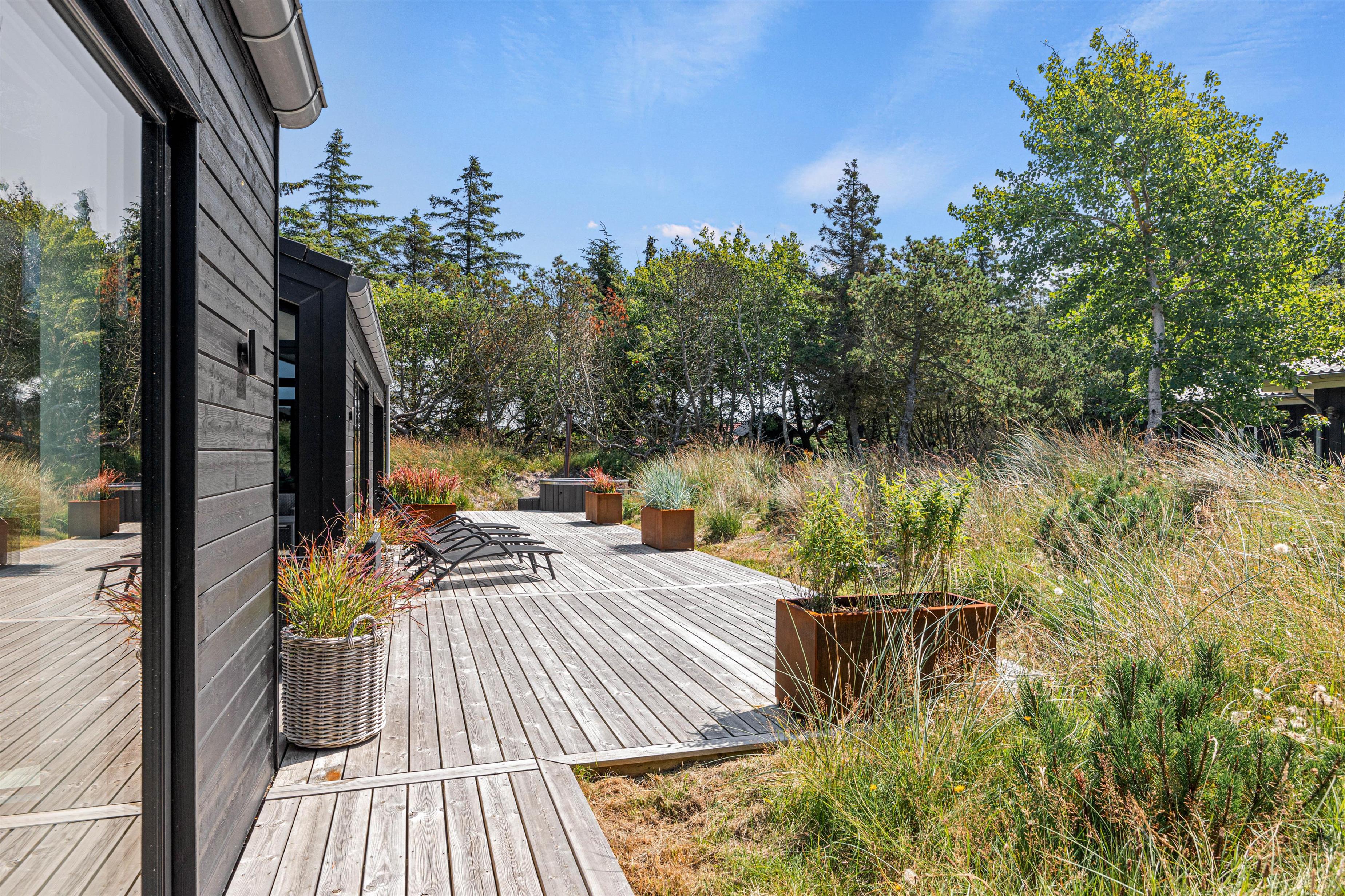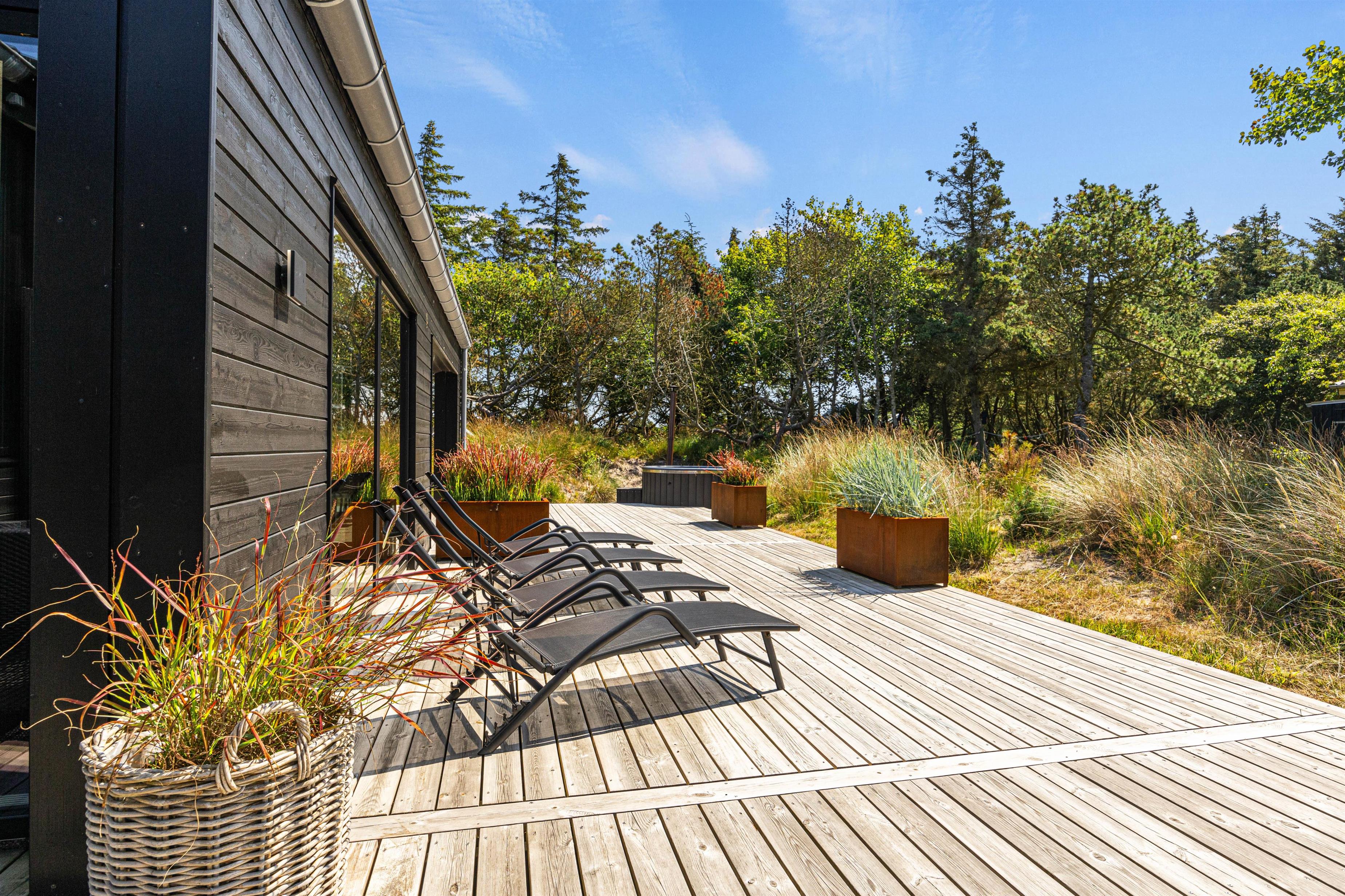 140 m2 træterrasse, vildmarksbad og overdækket loungeområde