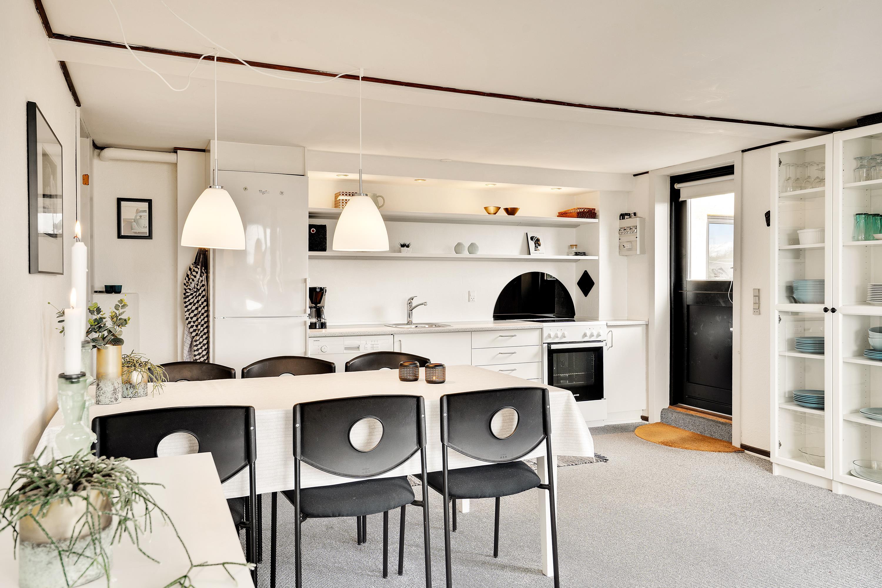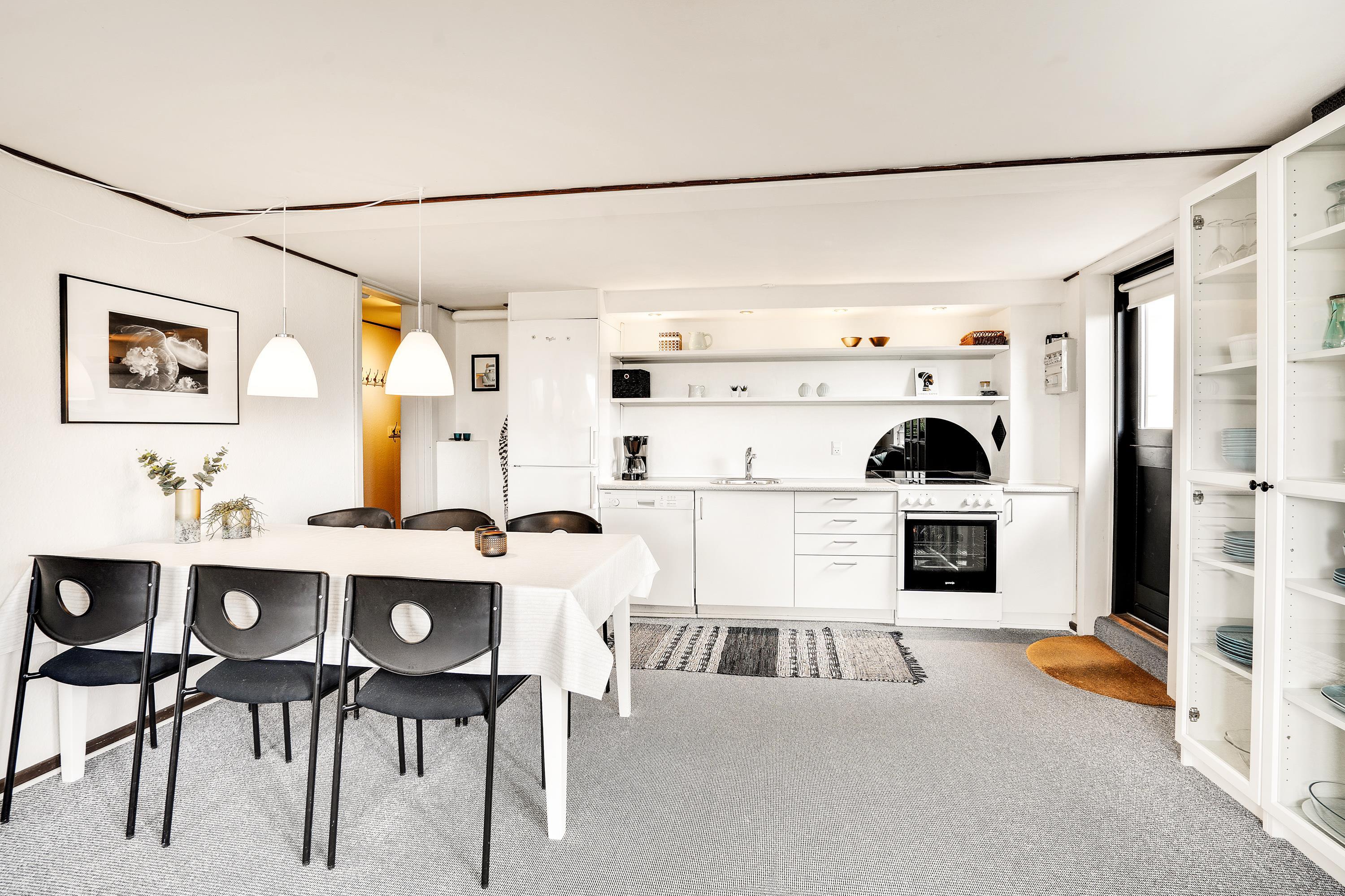 I ferielejligheden på Mågevej 8G, st – lejl. 4 i Vejers Strand er køkken, spiseplads og stue forenet i alrummet, og der er ingen tvivl om, at I kommer til at bruge mange skønne timer sammen her. I alrummet er der både mulighed for at lave mad, spille spil og se film. Efter madlavningen slipper I for at tage opvasken, da køkkenet er udstyret med en opvaskemaskine.