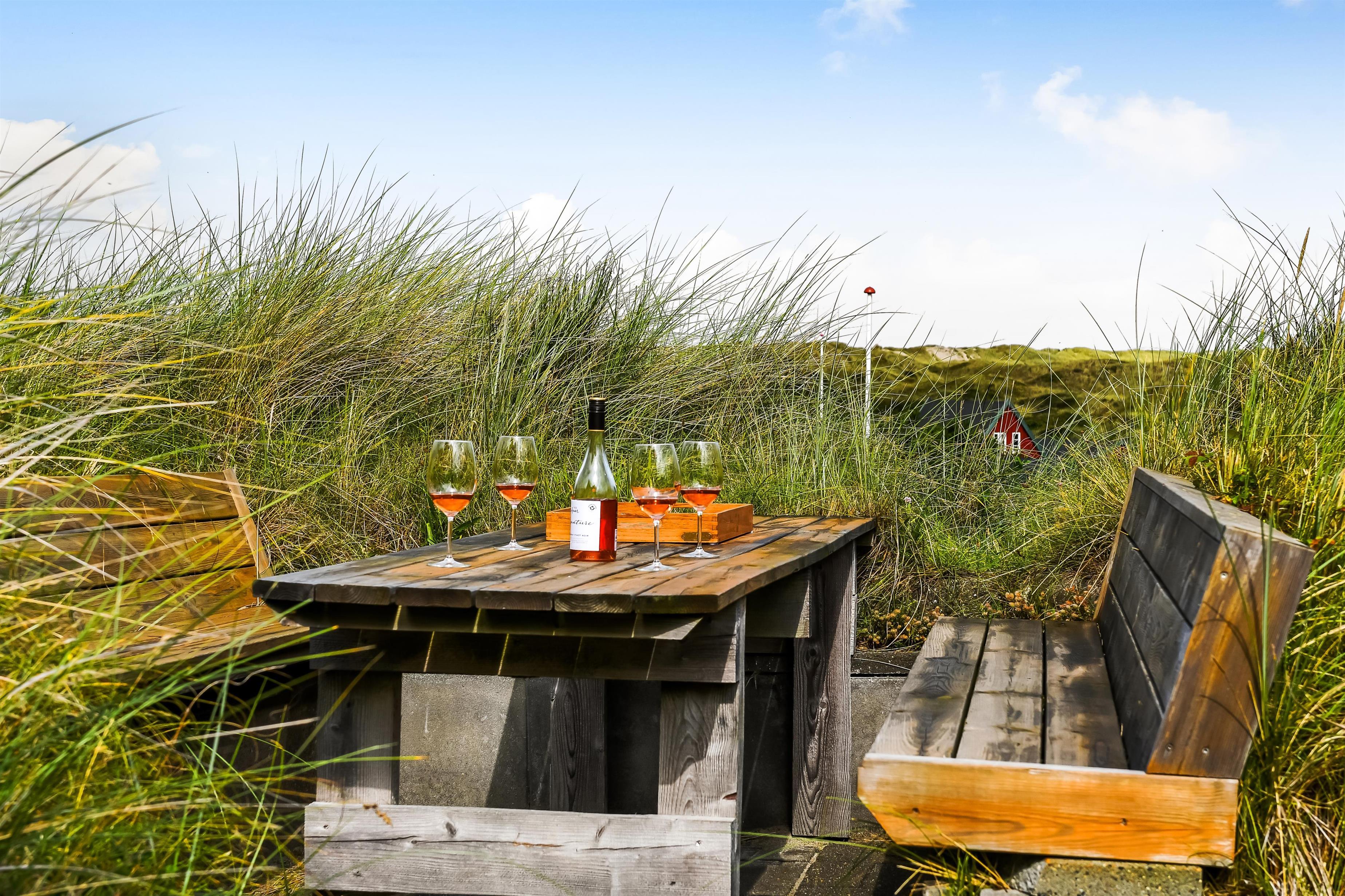 På de lune ferieaftener kan I tilberede jeres aftensmad på grillen på terrassen og nyde en lækker middag med et godt glas vin til i de komfortable havemøbler. Efterfølgende kan I gå en tur til stranden, der ligger kun 300 meter fra ferielejligheden, for at se solnedgangen.