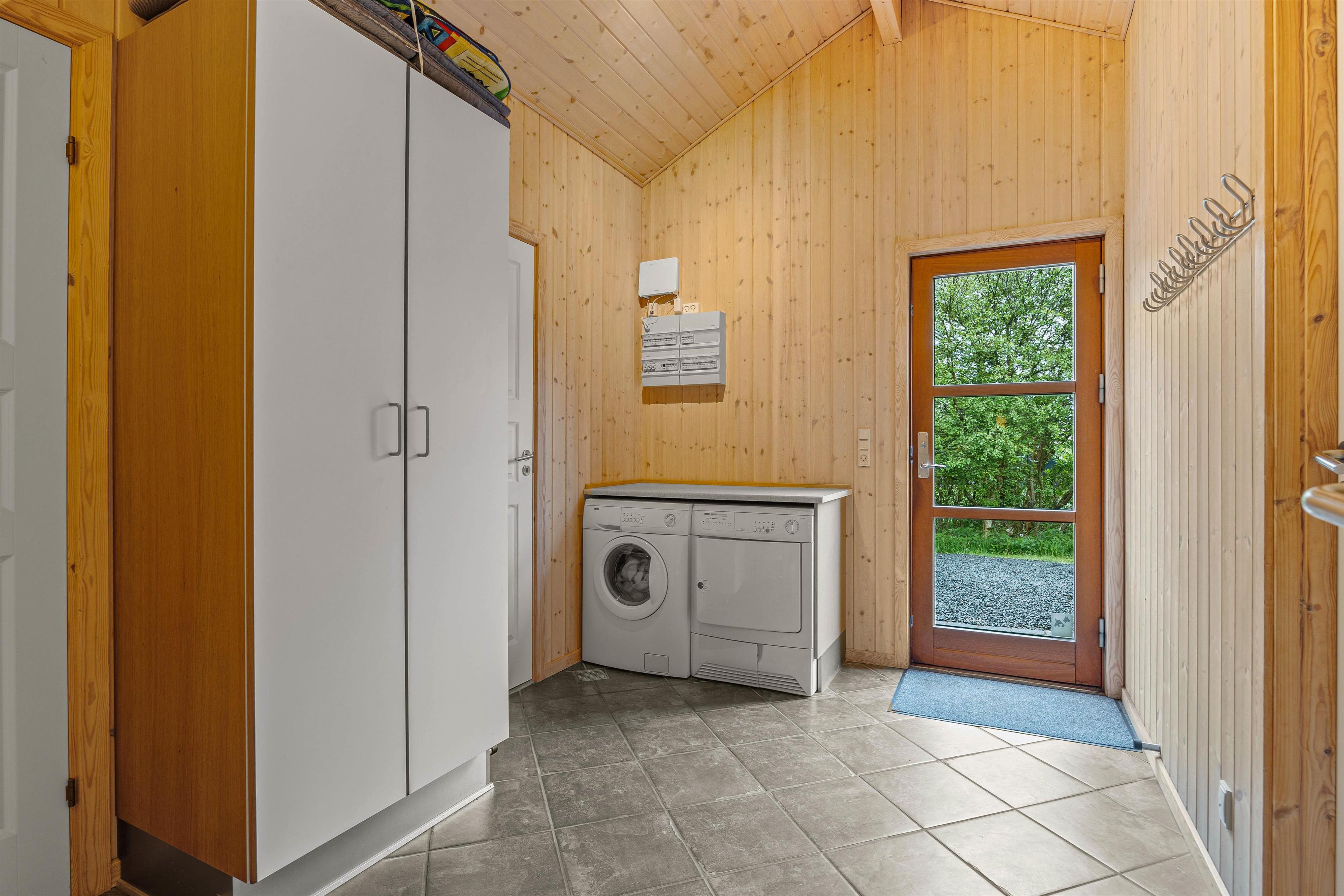 I sommerhusets entré finder I både vaskemaskine og tørretumbler, så der er mulighed for vask af lidt tøj eller håndklæder i løbet af ferien.