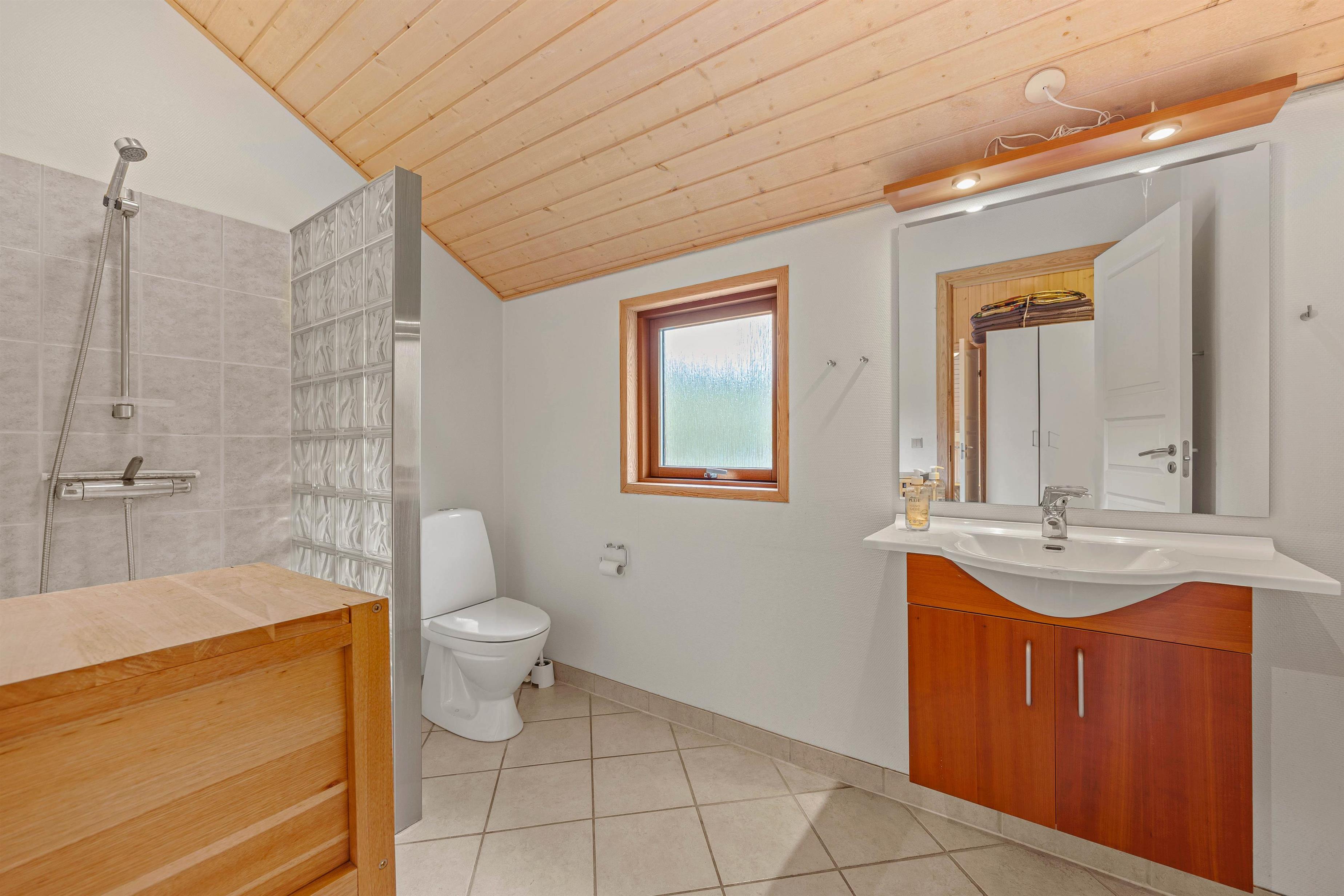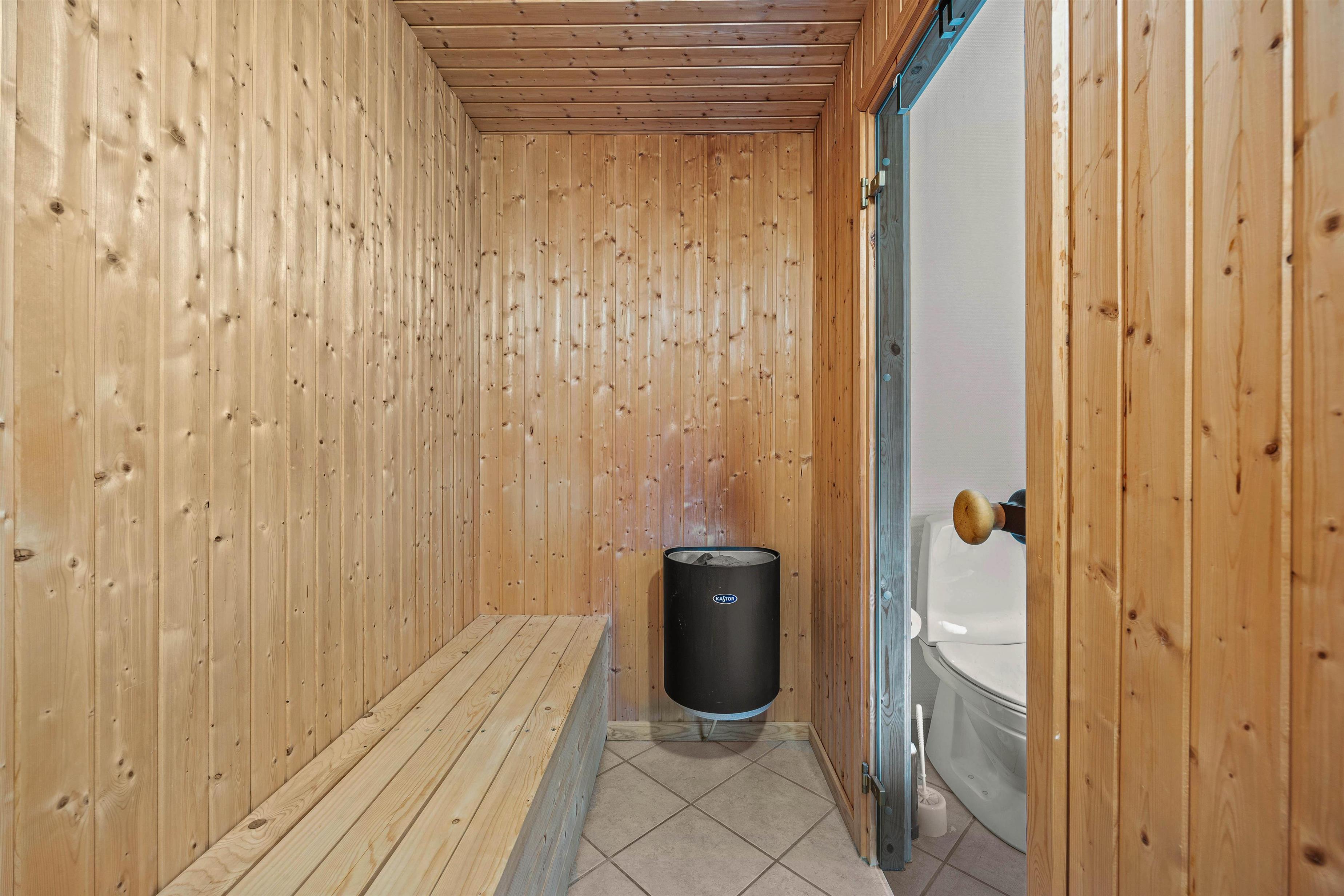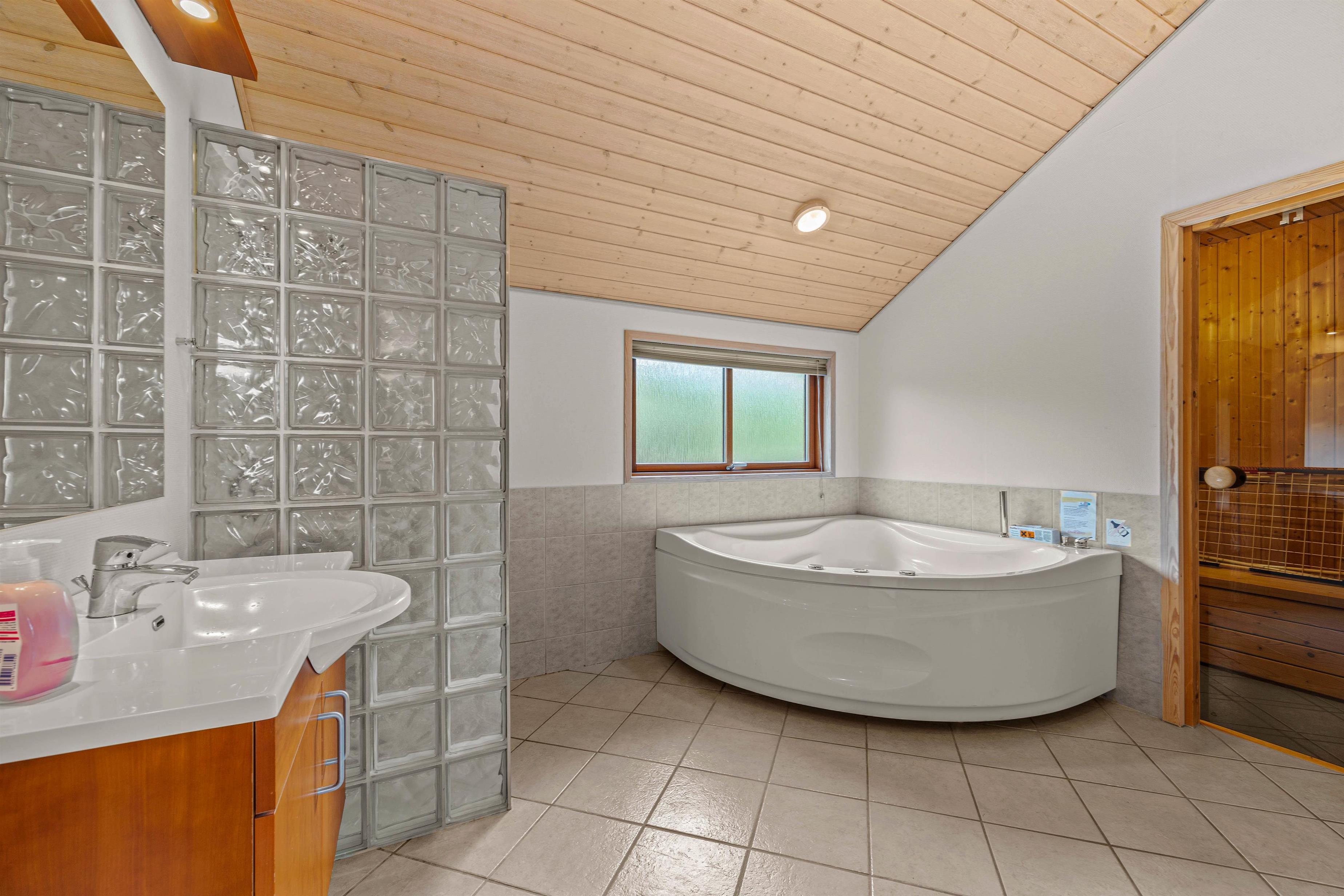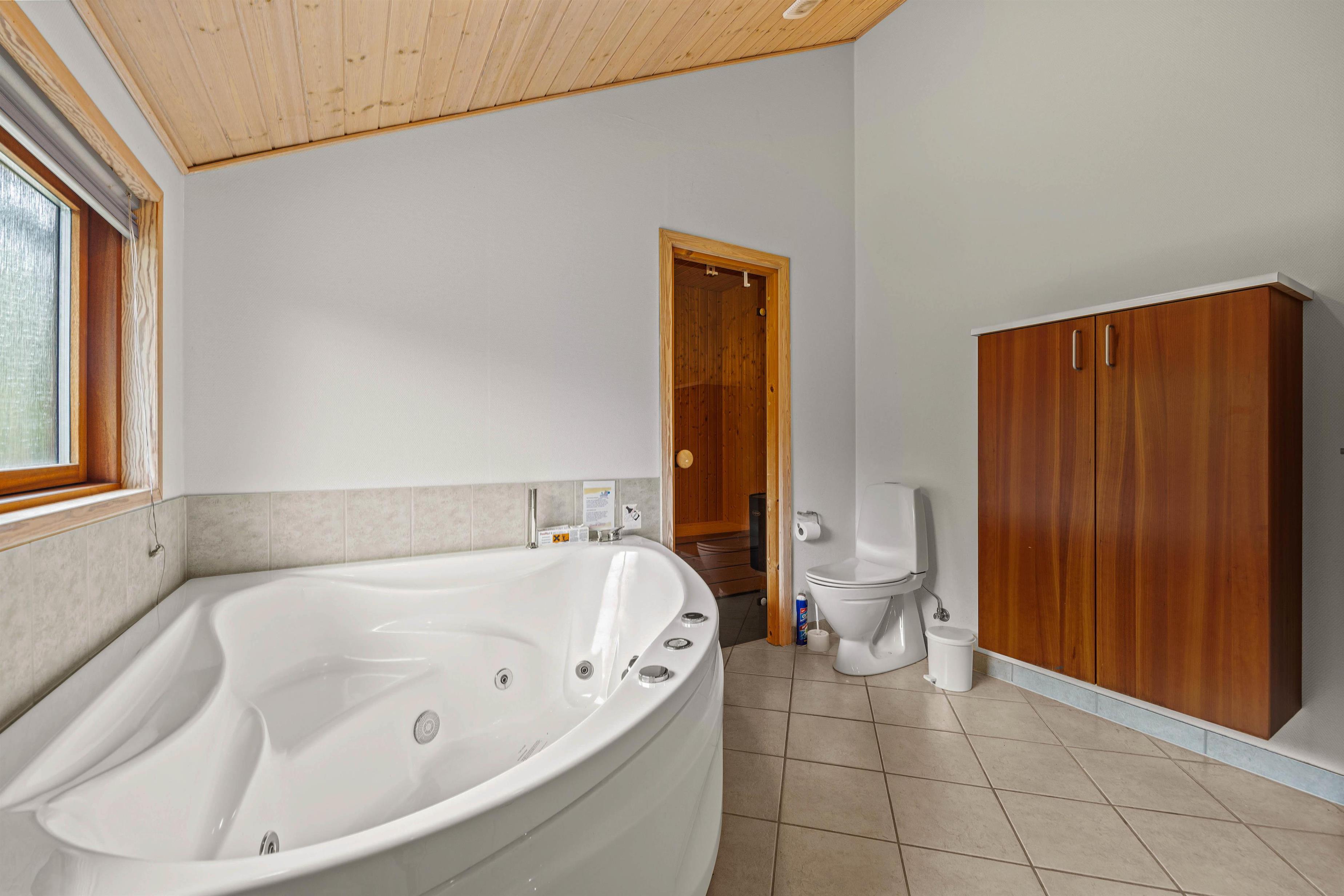 Sommerhuset har 2 badeværelser, der begge er med gulvvarme. Det ene er indrettet med spabad og sauna, så her er der virkelig lagt op til afslapning og velvære. Der findes intet bedre end en tur i det boblende, varme vand efter en frisk gåtur langs Vesterhavet.