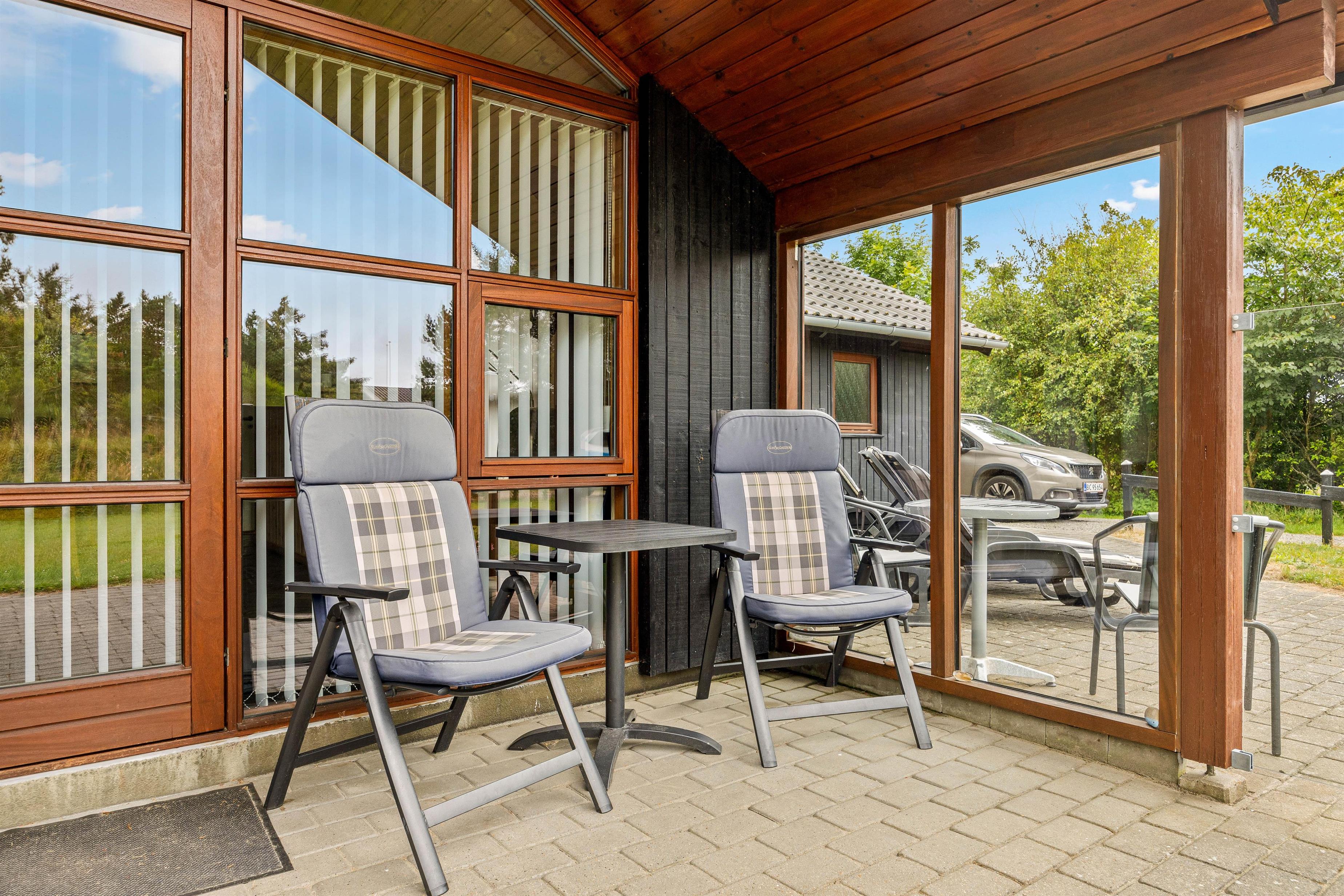 Sommerhusets terrasse er delvist overdækket og indbyder til mange gode stunder med hele familien på de varme sommerdage. På terrassen står havemøbler og liggestole klar til jer. Feriedagen kan afsluttes med en lækker middag tilberedt på sommerhusets grill, der nydes, mens morgendagens ferieaktiviteter planlægges.
