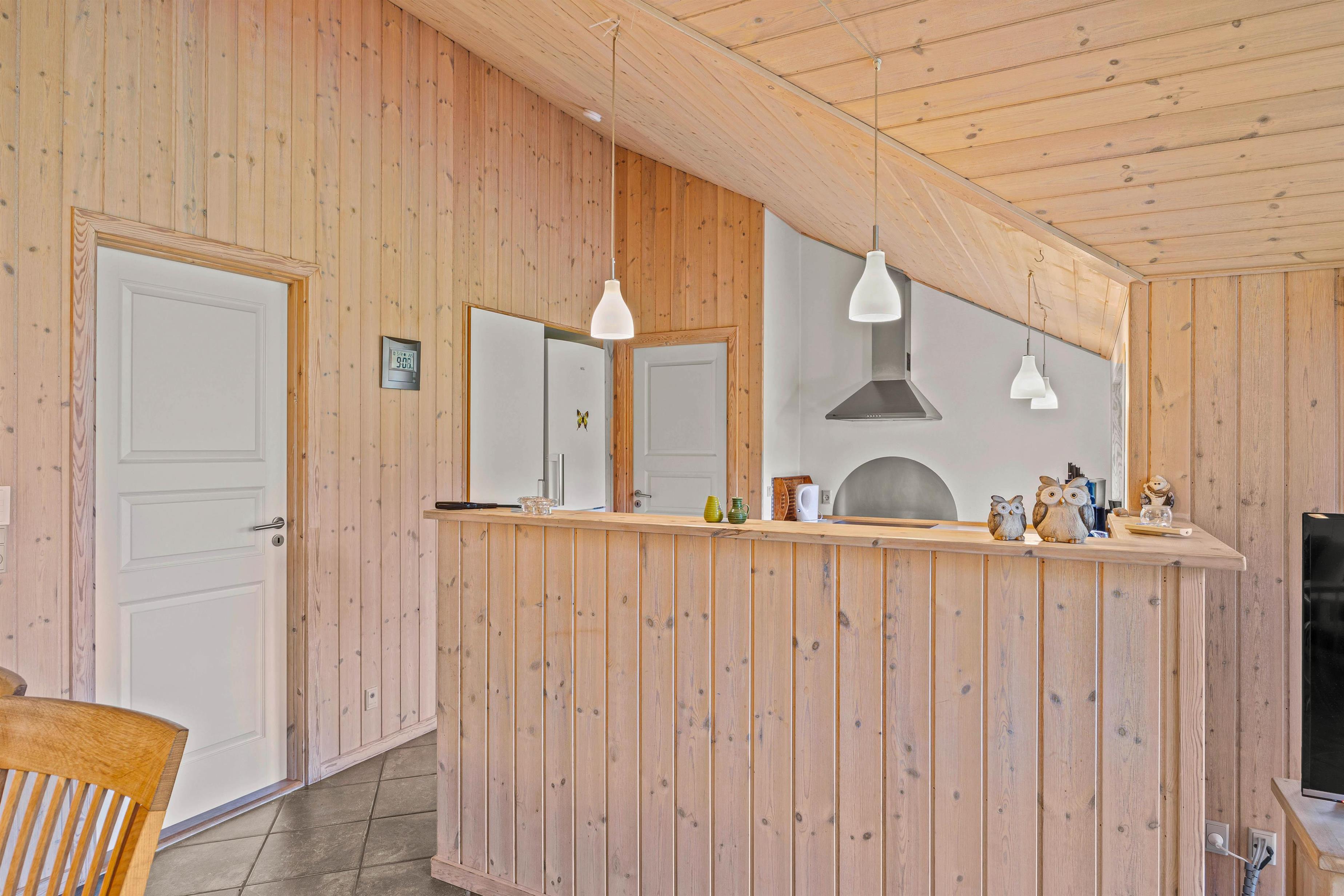 I sommerhuset vil I føle jer hjemme, med det samme I træder ind ad døren. Samlingsrummet er det rummelige alrum, der består af køkken, spiseplads og stue i ét. Her er loft til kip, og det store sydvendte vinduesparti skaber et godt lysindfald til rummet.