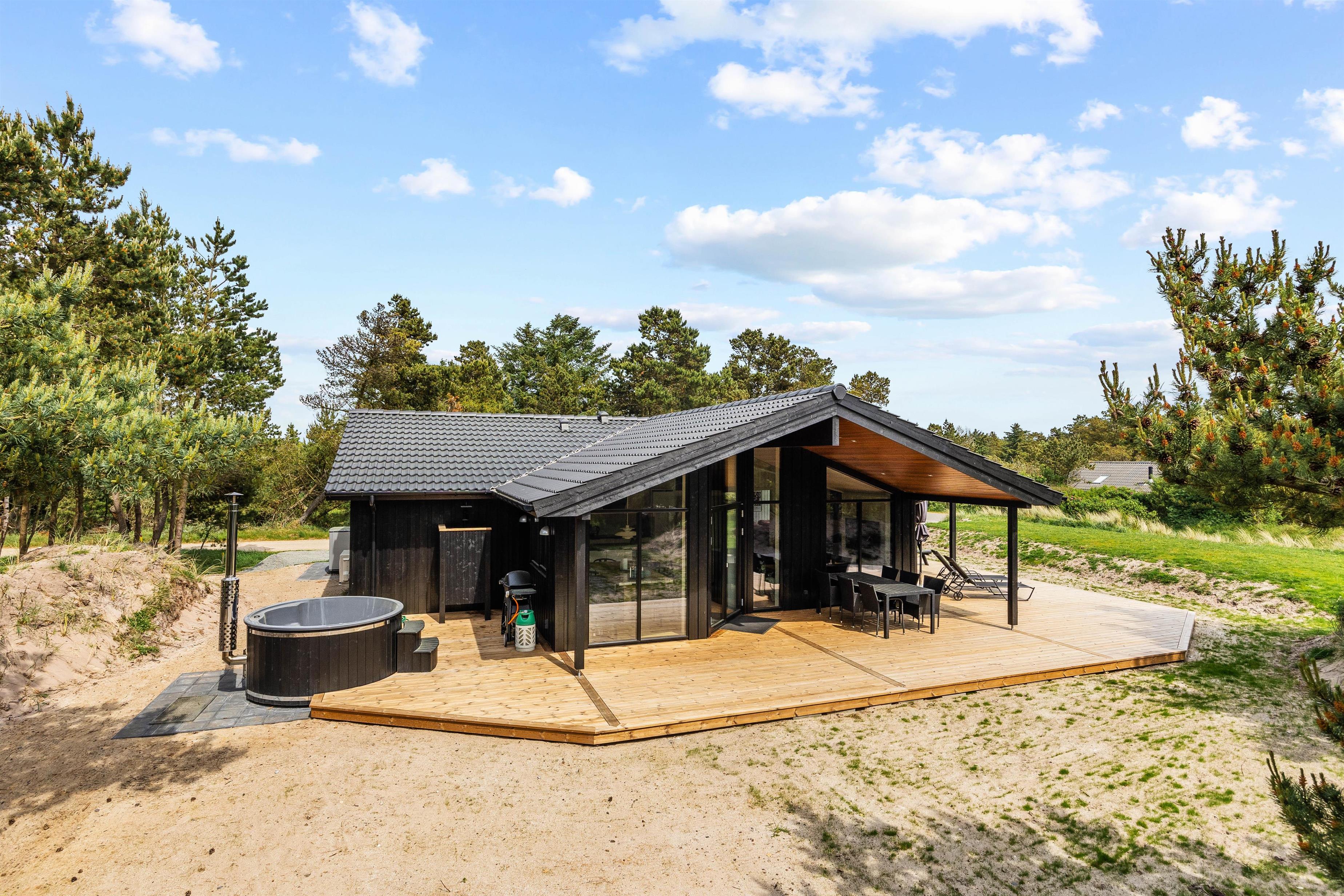 God komfort kombineret med en naturlig beliggenhed på Danmarks vestkyst venter dig i dette 5-stjernede sommerhus- velkommen til dette førsteklasses sommerhus i Vejers, som er bygget i 2025 med de mest moderne byggemetoder.
