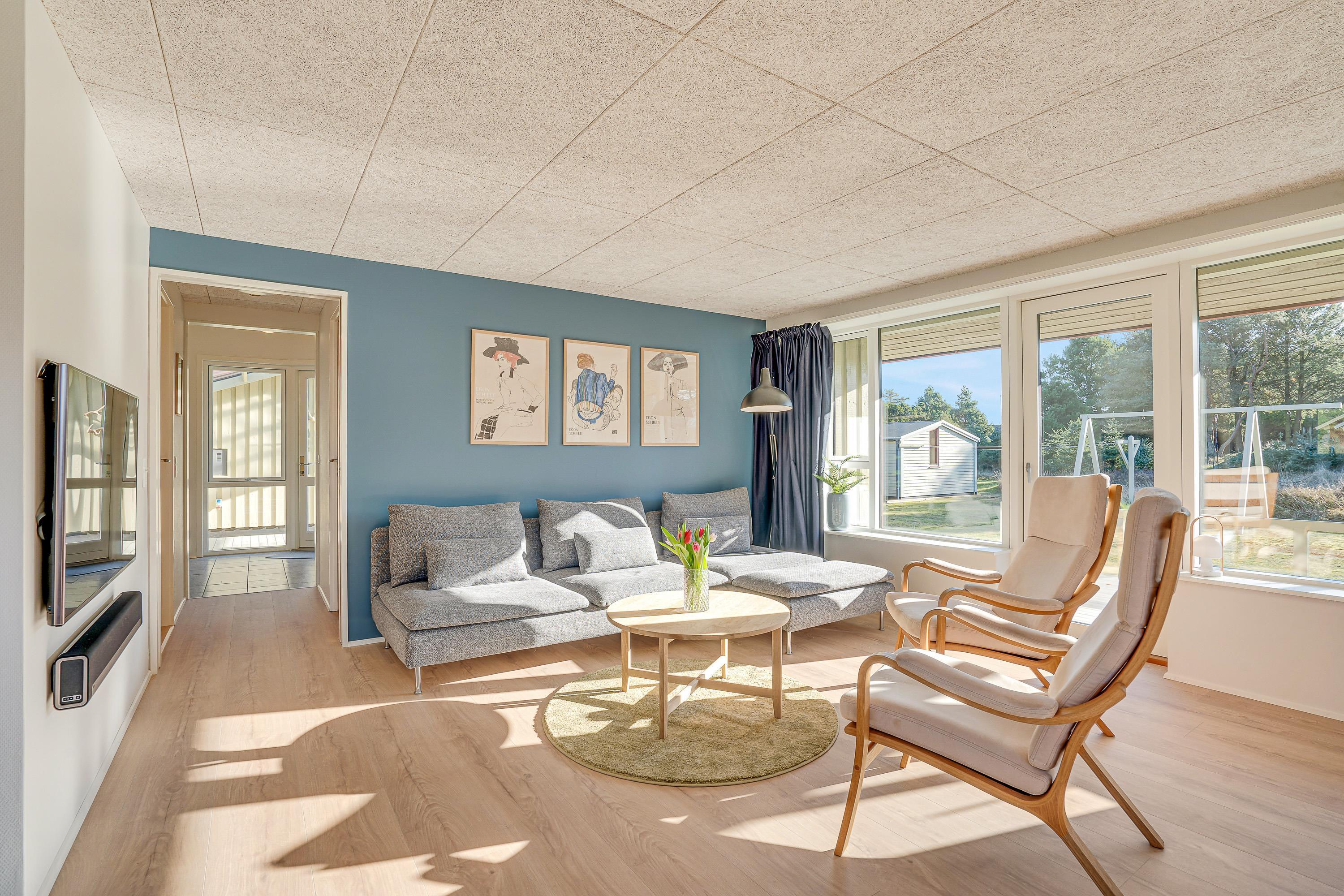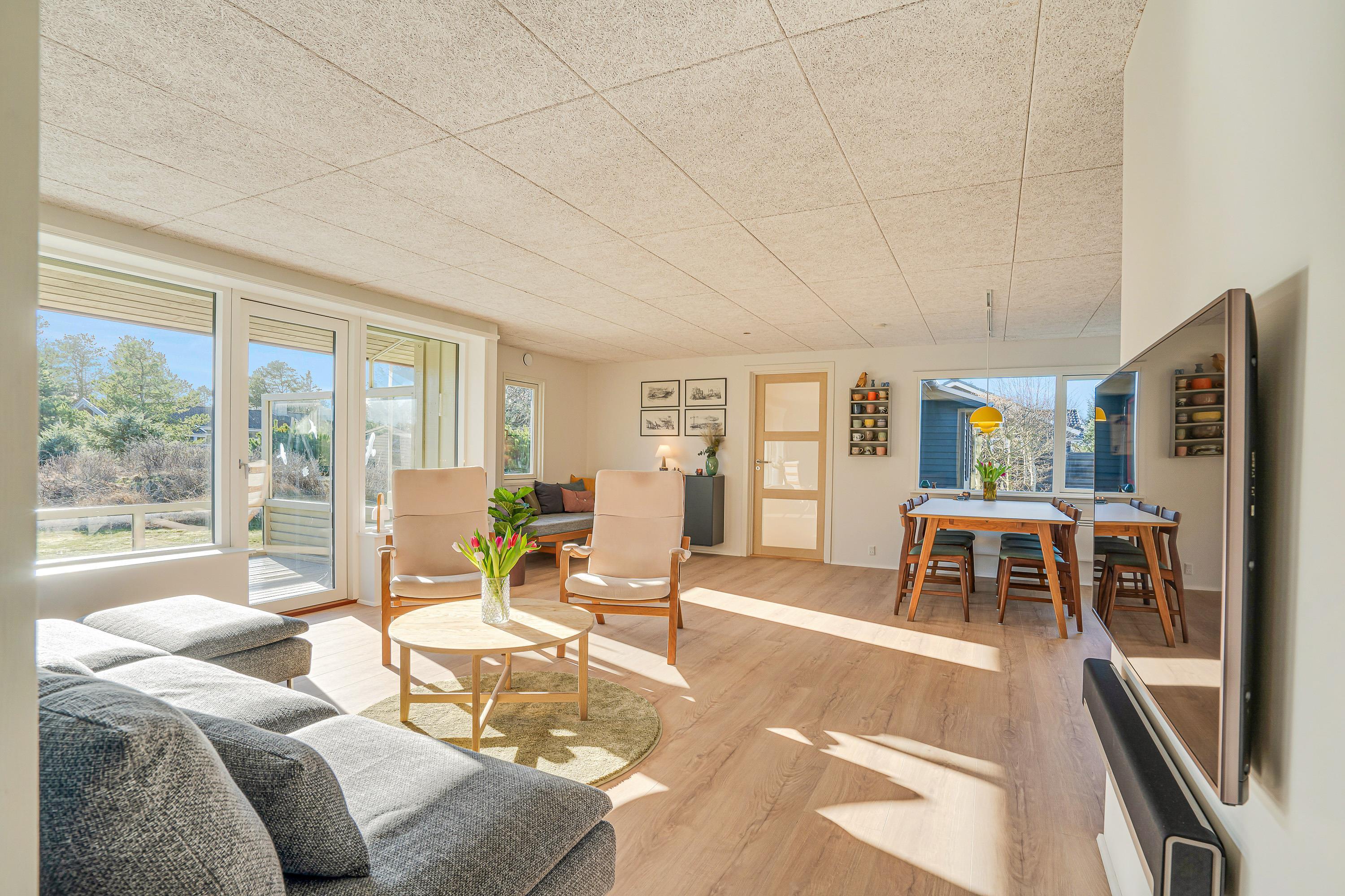 Når I træder ind i sommerhuset på Peders Vej 16 i Vejers, vil I straks blive mødt af den lyse og moderne indretning. Sommerhuset er renoveret i 2022, og her er der altså styr på alle detaljerne.